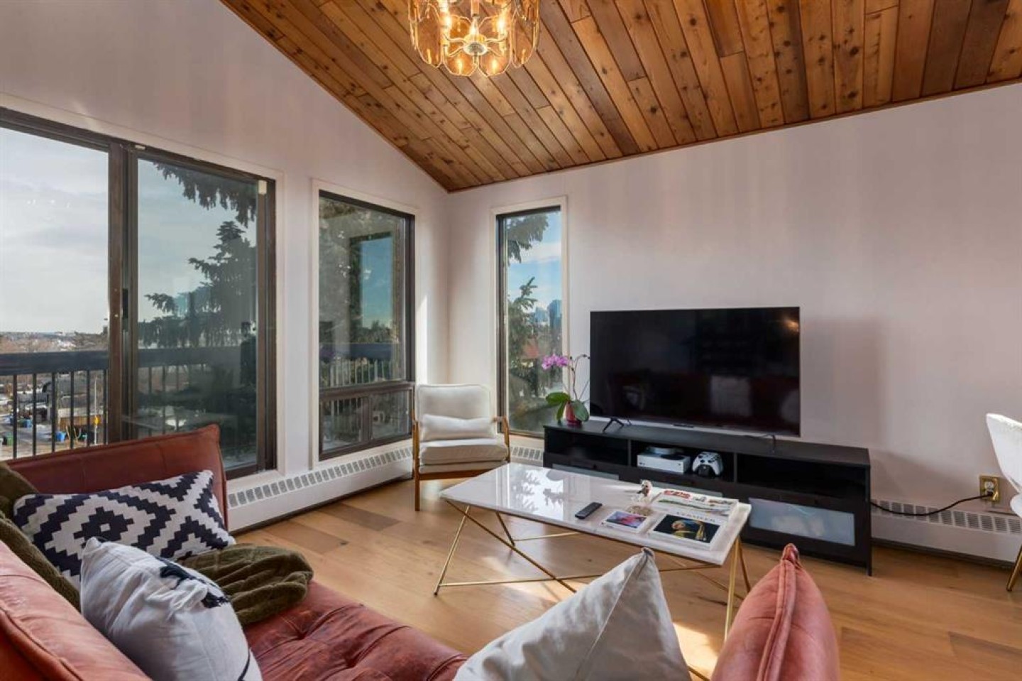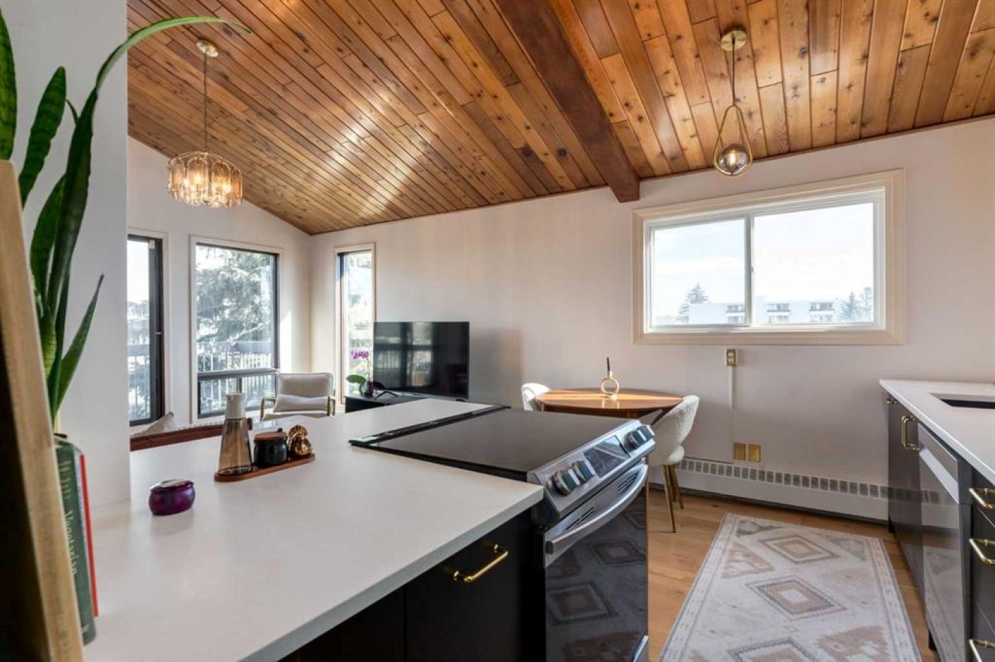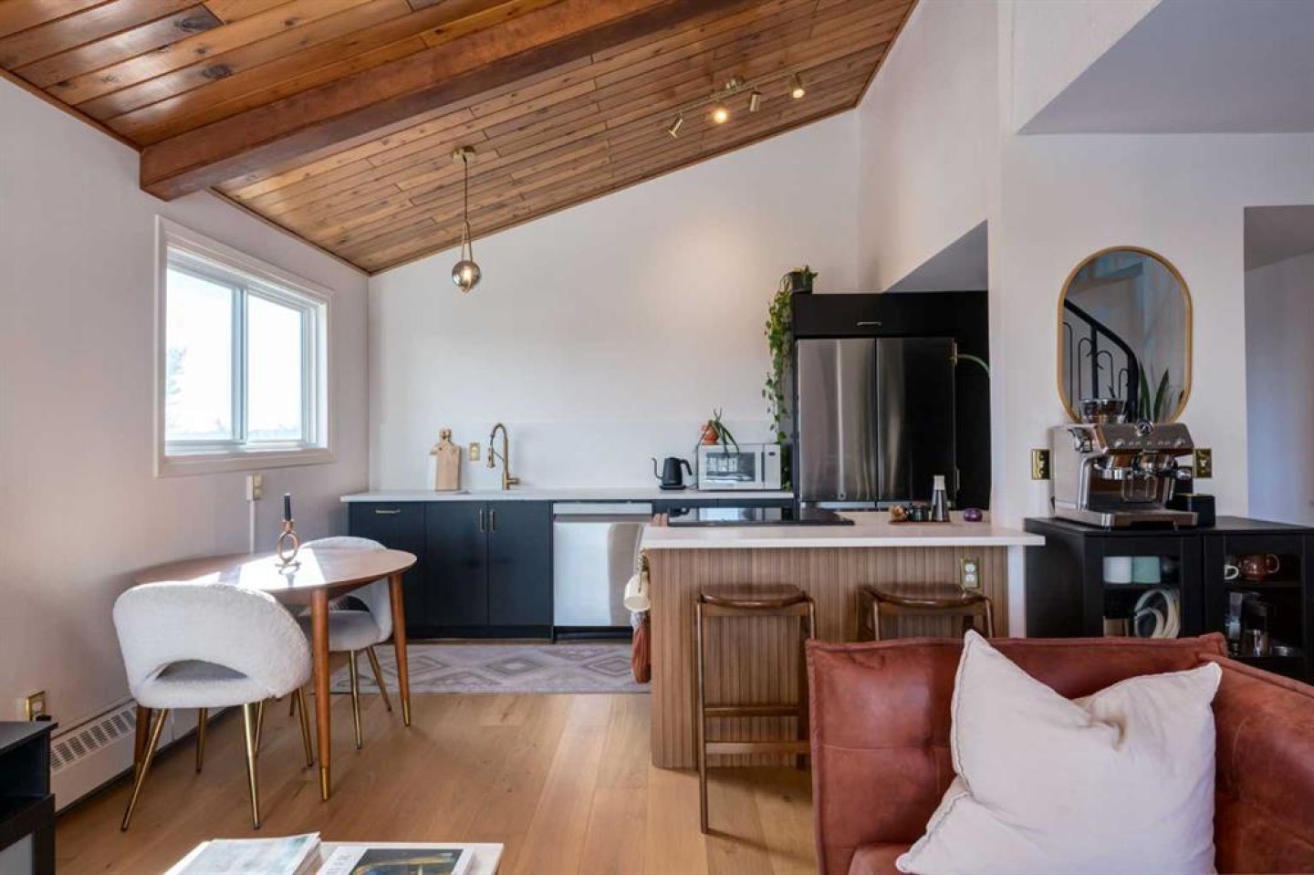Rare loft-style two-storey condo with incredible downtown skyline views in Knob Hill Estates. Located in the heart of Bankview, just two blocks from 17th Ave SW, this bright and unique home offers a true inner-city lifestyle. The main level features brand new engineered hardwood flooring, tall slanted ceilings, and a bright open layout. The fully renovated kitchen includes stainless steel Samsung appliances and opens to the spacious living and dining area and access to a private balcony with city views. Two bedrooms and a beautifully renovated bathroom with Italian marble complete the main floor. A dramatic spiral staircase leads to the upper loft,with a wood-burning fireplace—perfect as a family room, office, or studio—with access to a second balcony overlooking downtown. Includes 2 underground heated parking stalls, storage, in-suite laundry, and a pet-friendly building. Minutes to downtown, Marda Loop, parks, and transit.
