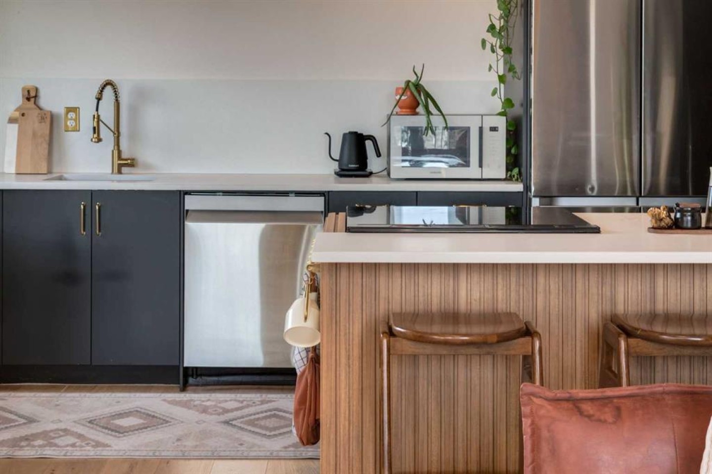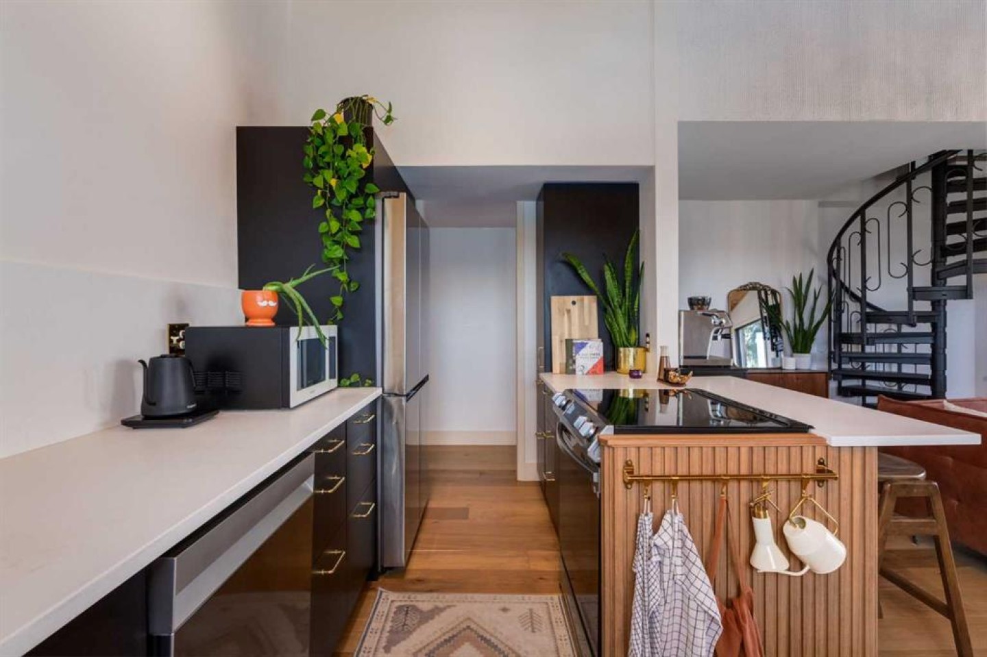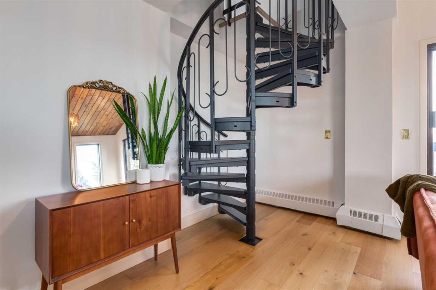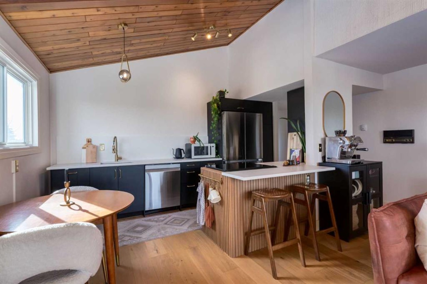 Rare loft-style two-storey condo with incredible downtown skyline views in Knob Hill Estates. Located in the heart of Bankview, just two blocks from 17th Ave SW, this bright and unique home offers a true inner-city lifestyle. The main level features brand new engineered hardwood flooring, tall slanted ceilings, and a bright open layout. The fully renovated kitchen includes stainless steel Samsung appliances and opens to the spacious living and dining area and access to a private balcony with city views. Two bedrooms and a beautifully renovated bathroom with Italian marble complete the main floor. A dramatic spiral staircase leads to the upper loft,with a wood-burning fireplace—perfect as a family room, office, or studio—with access to a second balcony overlooking downtown. Includes 2 underground heated parking stalls, storage, in-suite laundry, and a pet-friendly building. Minutes to downtown, Marda Loop, parks, and transit.