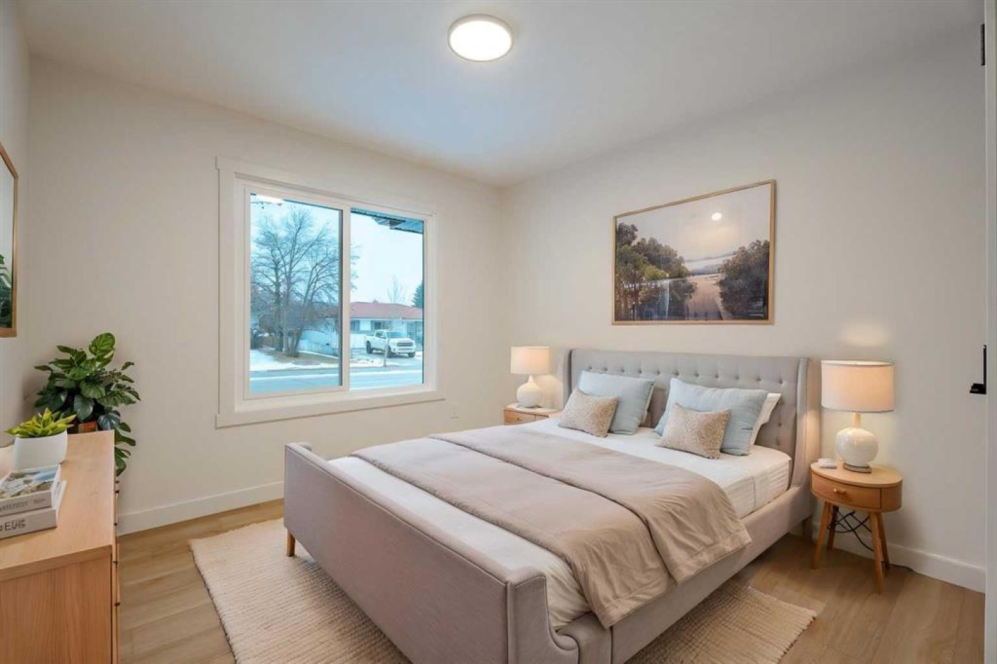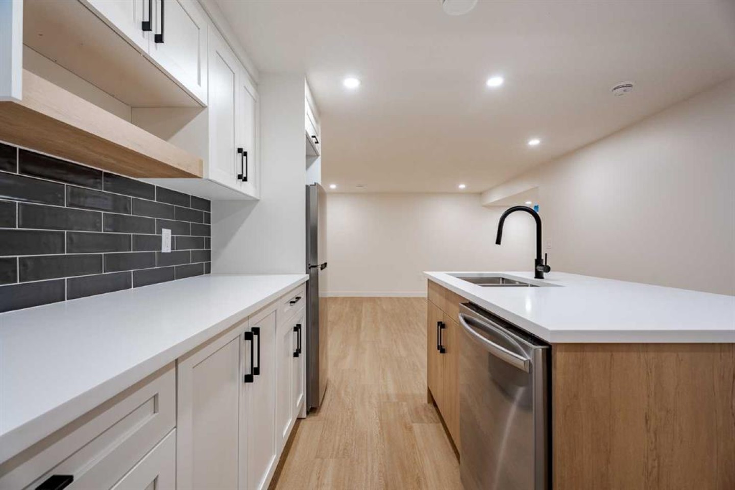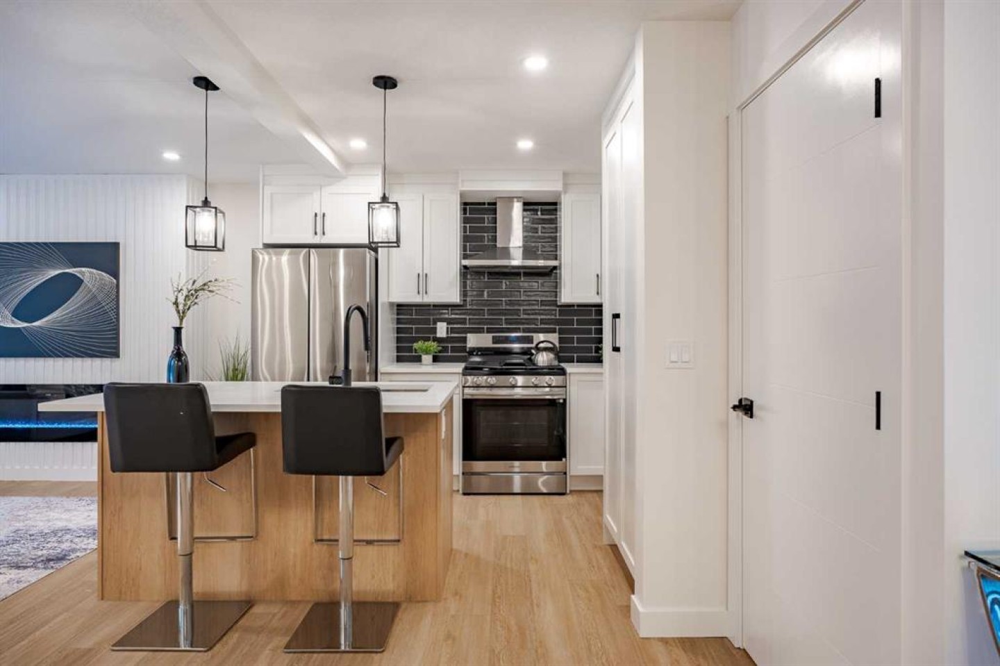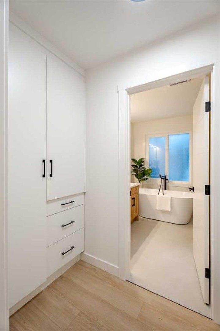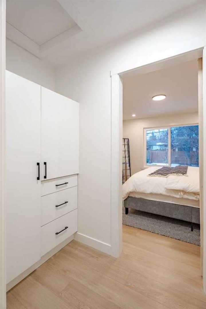 If a home could make a lasting impression, this one certainly does. Welcome to this extensively renovated, down-to-the-studs bungalow in the desirable community of Acadia, where every detail has been thoughtfully redesigned and nothing left untouched. From the new exterior, furnace, hot water tank, windows, doors, trims, flooring, and cabinetry, to the high-end finishes throughout—this home offers the perfect blend of modern style and everyday functionality. Ideally located just steps from schools, parks, and playgrounds, and only minutes from major shopping and amenities along Macleod Trail and Heritage Drive, the location is as convenient as it is desirable. From the moment you arrive, the home’s stunning curb appeal sets the tone. Board and batten siding, custom exterior lighting, and large windows create a timeless modern aesthetic. Inside, a spacious entryway welcomes you into the open-concept main floor, where warm luxury vinyl plank flooring flows seamlessly throughout. The inviting living room features a custom fluted fireplace and a large picture window that fills the space with natural light. At the heart of the home is the beautifully designed kitchen, showcasing ample shaker cabinetry, a textured island with quartz countertops, a built-in pantry, and stainless steel appliances. The dining area is highlighted by a large light fixture and a sliding patio door that leads directly to the backyard. Down the hall, a stylish 3-piece bathroom with custom tile-work adds a touch of everyday luxury. The primary retreat offers space for a king-sized bed, a custom walk-through closet with built-in cabinetry, and a private spa-inspired 5-piece ensuite featuring a dual vanity, freestanding tub, and glass shower. An additional bedroom with a large window and closet completes the main level. The fully finished basement is equally impressive, offering a spacious recreation area perfect for relaxing or entertaining. A sleek kitchenette with new stainless steel appliances, a modern 4-piece bathroom, and two large bedrooms provide incredible flexibility for extended family, guests, or additional living space. A private laundry and utility room complete the lower level. Step outside to enjoy the generously sized yard, complete with a concrete patio and gas line for summer BBQs. The oversized double garage with an extra-large overhead door is perfect for car enthusiasts or additional storage. Stylish, functional, and completely move-in ready, this one-of-a-kind property truly has it all. Book your private showing today and experience it for yourself.