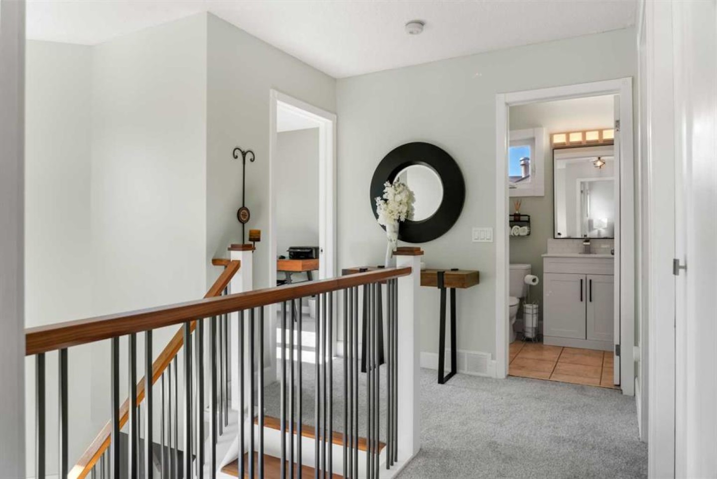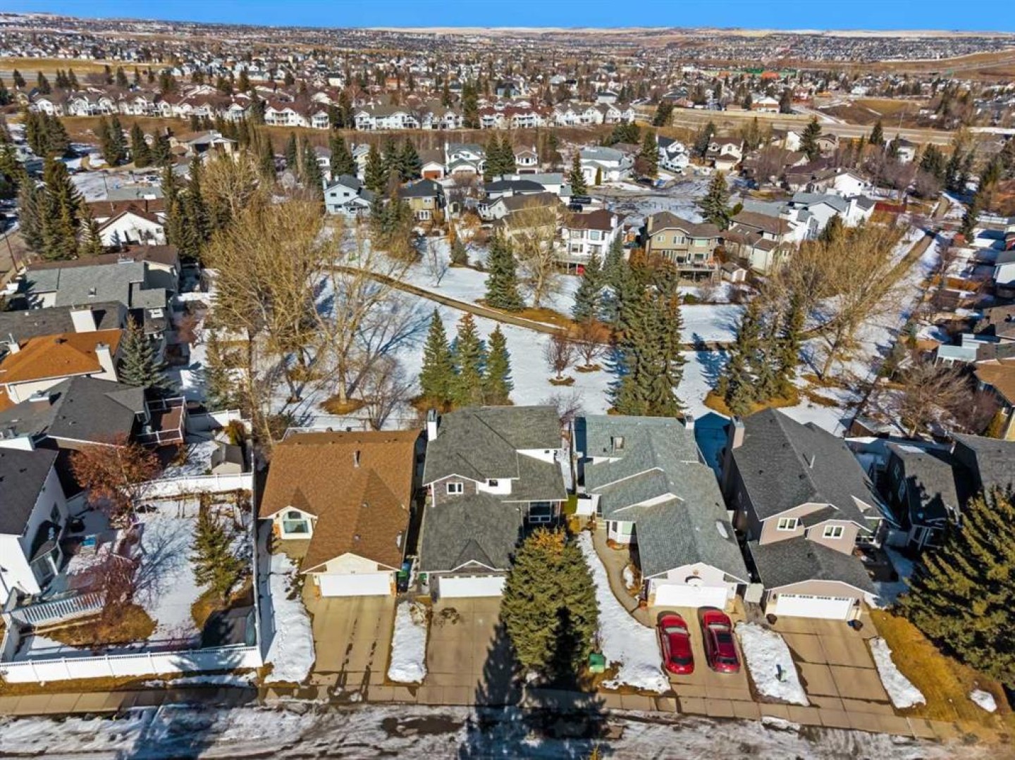 Welcome to this beautifully updated walkout home , offering 2660 square feet of developed living space, perfectly positioned with a coveted west-facing backyard that opens directly onto a serene park with pathways and a children’s playground. Tucked into a quiet, private enclave with no through traffic, this is an ideal setting for families seeking both tranquility and convenience. Inside, the home has been thoughtfully upgraded over the years to blend comfort, style, and functionality. New modern, contemporary kitchen(2021) with quartz and sleek stainless steel appliances , main floor knock down ceiling with plenty of pot lighting ,upper-floor carpets (Feb 2026) add a fresh, modern feel, while the 2023 windows and doors enhance energy efficiency and natural light. The striking staircase completed in 2020—features walnut accents and elegant iron spindles, setting the tone for the quality found throughout. The main floor showcases tile and hardwood flooring, recently updated bathrooms(2026), and the convenience of main-floor laundry. Zebra blinds on remote control upstairs and roller shades on the main level offer both privacy and sophistication. A charming wood-burning fireplace with a stone surround creates a cozy focal point for family gatherings. Outdoor living is equally impressive. The back deck was upgraded in 2024 with composite boards and sleek glass panels, providing a low-maintenance space to enjoy the mature trees and peaceful park views. The exterior front features timeless rundlestone, and Gemstone lighting (installed 2023) adds year-round curb appeal. A pony panel is already in place for future hot tub installation. Additional major features include the roof (2012) and furnace (2020). This exceptional location places you within walking distance of two elementary schools—both public and separate—and just minutes from Nose Hill Park and a full range of amenities. A rare combination of privacy, upgrades, and family-friendly convenience—this walkout home is truly a must-see.