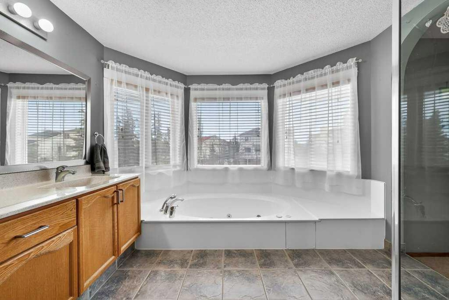 This is a rare opportunity to own a beautiful and solid family home, perfectly nestled on a quiet and safe cul-de-sac and backing onto a serene green belt in the highly desirable community of Hawkwood. With only six homes on the street, this property offers exceptional privacy and a wonderful sense of community. Its charming curb appeal, mature landscaping, and expansive triple-attached garage create a welcoming first impression and offer the lifestyle of comfort. Inside, the home features a bright living room, filled with natural light from large soaring windows, flows effortlessly into the formal dining area—perfect for hosting family dinners and special occasions. Just steps away, the cozy family room with a wood-burning fireplace connects beautifully to the well-appointed kitchen, where abundant cabinetry, a pantry, vaulted ceilings, and a large skylight create an inviting and open space for everyday living. A convenient powder room and warm hardwood flooring throughout the main level add both comfort and elegance. The second floor is designed with rest and privacy in mind. The spacious primary retreat, accessed through elegant French doors, easily accommodates a king-sized bed and features a generous walk-in closet along with a bright 4-piece ensuite complete with in-floor heating. Two additional well-proportioned bedrooms provide excellent space for family members of all ages and can comfortably accommodate queen-sized beds. The unspoiled basement is clean, open, and ready for your personal vision—whether that be additional living space, a home gym, a recreation room, or a customized entertainment area. Recent upgrades provide added peace of mind and value, including new carpet on the entire upper level and staircase (2025), fresh interior paint (2025), driveway lift and crack repairs (2025), new sump pump (2025), a new roof (2024), greenhouse (2024), and a furnace engine replaced in 2016. The home is also equipped with central air conditioning rough-in and includes the original 2007 A/C unit, which is being sold in as-is condition. Set on an impressive 7,168 sq. ft. lot, the backyard is truly a private retreat. A large patio finished with waterproof Duradek overlooks the peaceful green space lined with apple trees and leads toward a nearby playground. The generous yard offers endless possibilities—perfect for bonfire evenings, BBQ gatherings, or growing your own produce in the greenhouse. In springtime, when the apple trees bloom, the backyard view becomes truly breathtaking. The location is exceptional. St. Maria Goretti School in a 10-min walk and Hawkwood School 15 min away. Shopping and amenities at Superstore, Beacon Hill Shopping Centre, and Crowfoot Shopping Centre are a short drive away, along with the Crowfoot Library, YMCA, restaurants, and everyday conveniences. Quick access to Stoney Trail makes commuting across the city easy and provides a fast escape to the mountains. Opportunities like this do not come often.
