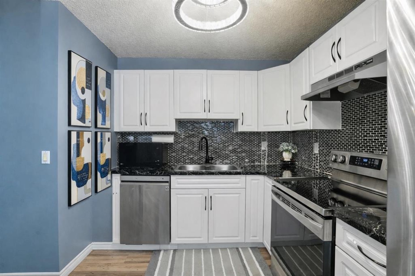 Dishwasher, Dryer, Electric Stove, Microwave, Range Hood, Refrigerator, Washer, Window Coverings