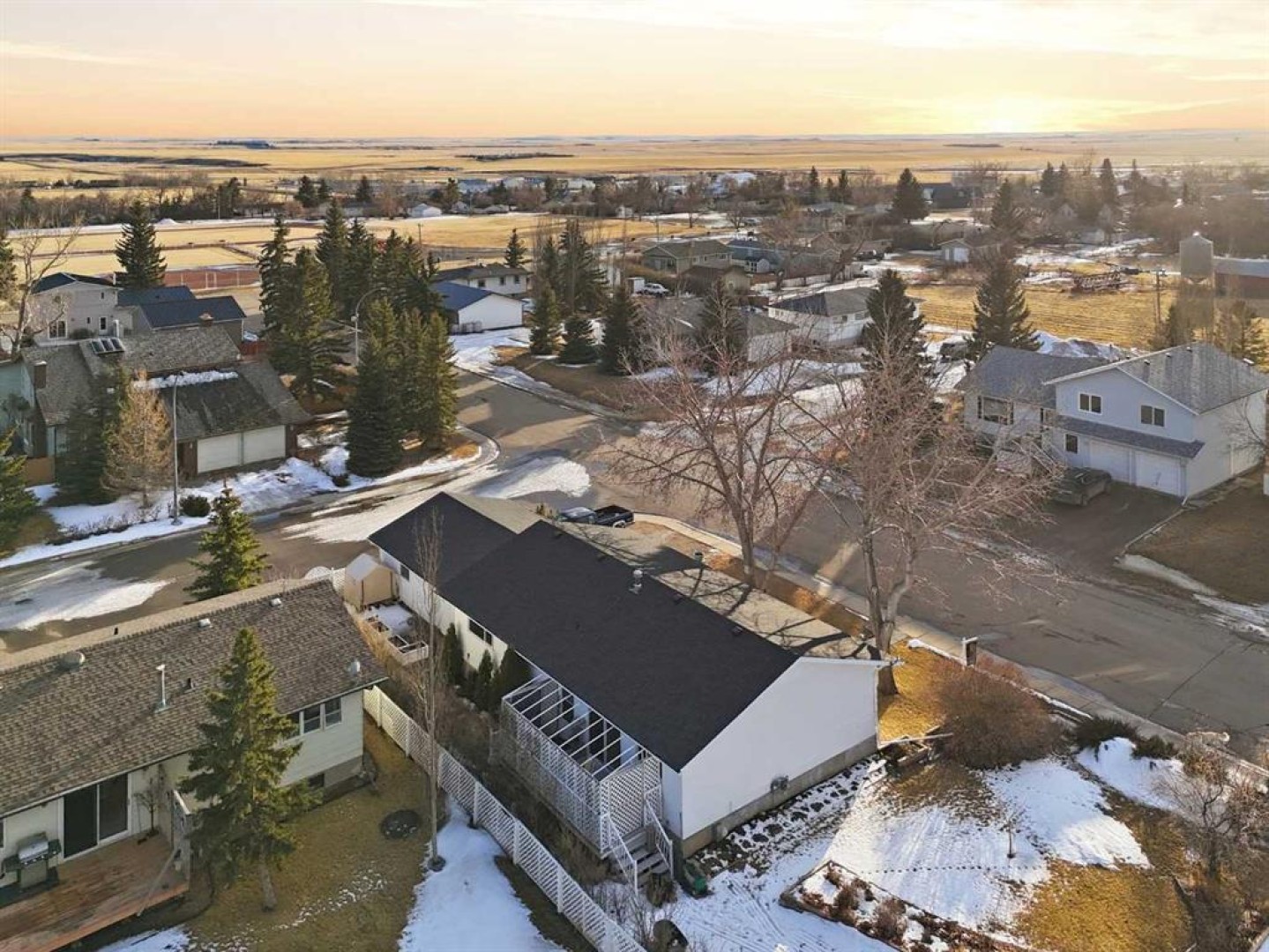 AMAZING FULLY DEVELOPED 5 BEDROOM + 2 BATH FAMILY HOME on an OVERSIZED LOT – tucked on a whisper quiet street in the Village of Standard, where Western hospitality and gorgeous sunrises & stunning sunsets are part of everyday! A spacious foyer provides ample space for guests as you enter. Natural light creates a bright welcoming atmosphere through a FULL BANK OF OVERSIZED WINDOWS in the generous sized living room with space to entertain larger family get togethers. A country sized kitchen features an open-ended dining area that leads to the outdoor deck and yard for summer barbecues. Upper and lower cabinets flank the rear of the kitchen and wrap around to overlook the rear yard. You will be delighted with the full span of counters for your meal and baking preparation. The CENTRAL ISLAND offers additional prep and storage space. A primary bedroom and two other bedrooms are thoughtfully presented down the corridor away from the hustle and bustle of everyday activities – delivering a restful place for little ones at nap time. A REFRESHED FOUR PIECE BATH sits adjacent to the bedrooms and offers privacy and convenience for family and guests. A FULLY DEVELOPED LOWER LEVEL offers a super sized family room plus two more bedrooms (with legal egress) complemented with a three-piece bath. A bonus hobby room and utility room complete the lower level. Some NEWER WINDOWS + NEWER ROOF ON HOUSE & OVERSIZED DOUBLE INSULATED GARAGE (25’x 23’) have been done. Unwind each day in the private treed yard. This MOVE IN READY home still offers an opportunity to personalize and create your own dream. Formerly complemented as an AIRBNB to the ROSEBUD ARTS AND DINNER THEATER the current residents are enjoying this spacious bi-level as a full-time residence. Check with us on details about the Airbnb. The Village of Standard is located approximately 20 minutes to Strathmore and less than one hour to Calgary or Drumheller. Amenities include the Wheatland Crossing School- K-12, (also boasts a community fitness facility for a nominal fee), community centre and sports plex (HOCKEY) with curling rink & restaurants and day care facilities. Standard offers multiple opportunities for life enrichment for all ages. Call your favorite realtor today for your personal tour of the community and this fabulous home.