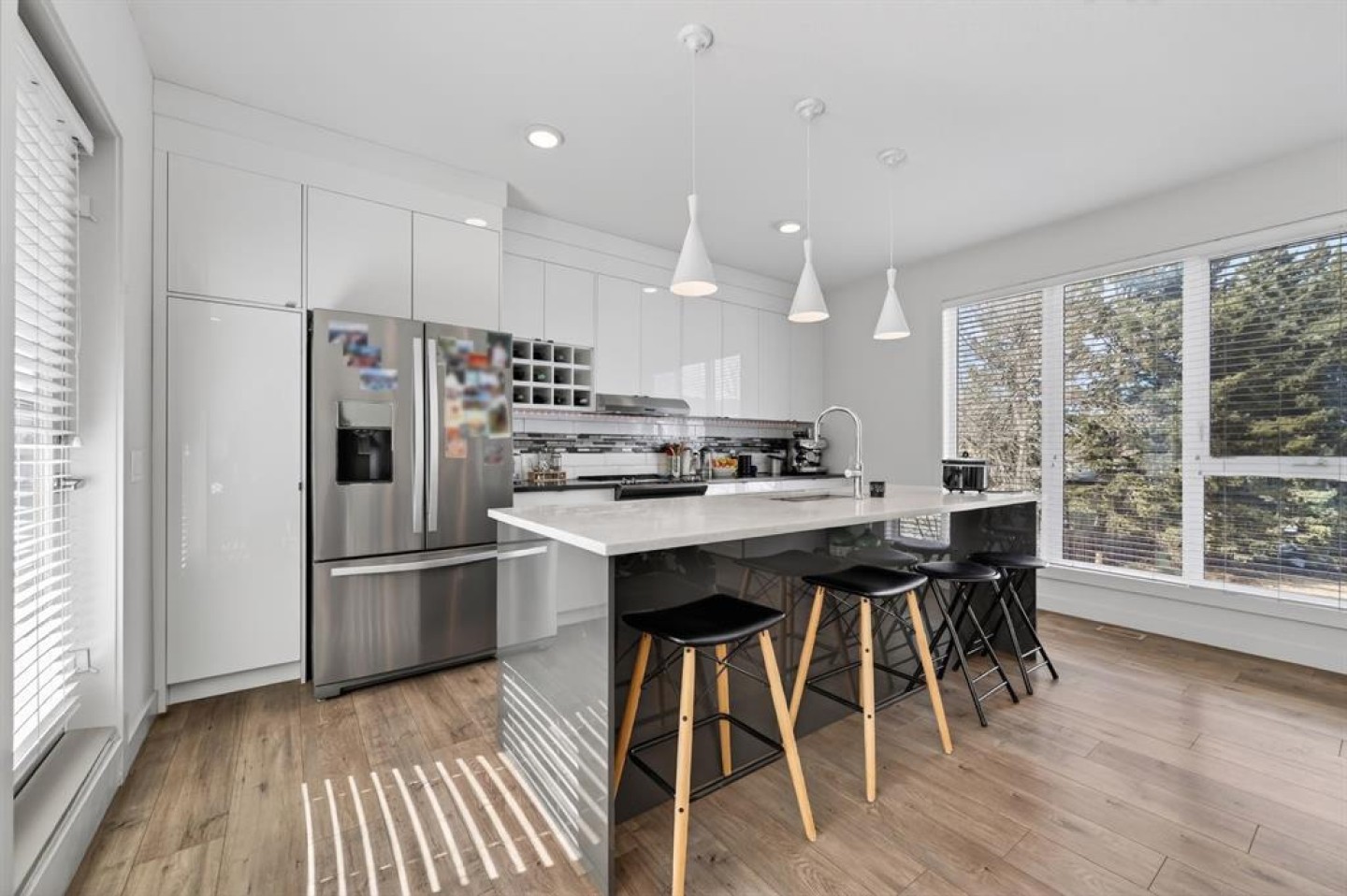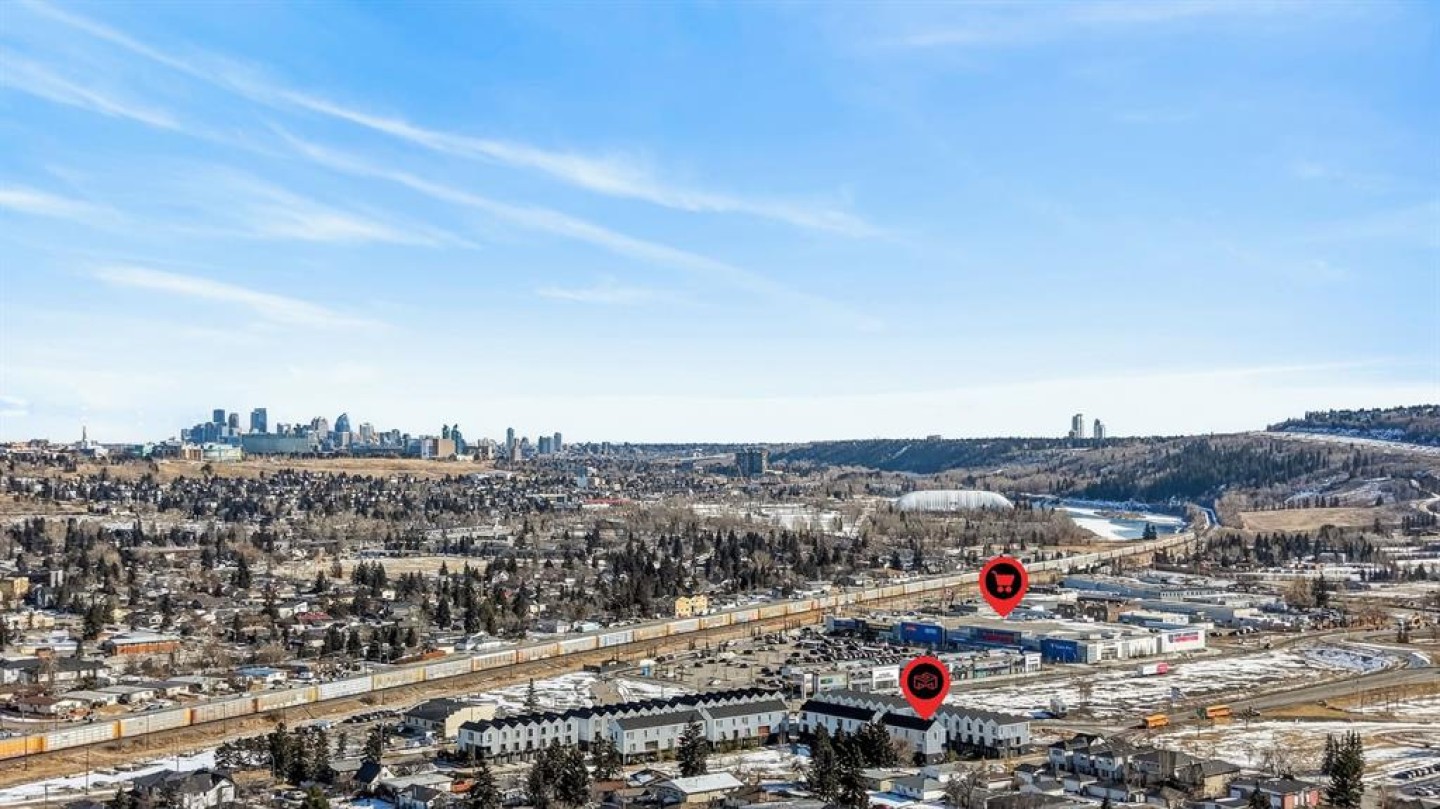 Welcome to this exceptional end-unit townhouse in the established and historic community of Bowness. Offering the rare combination of an end unit location and an attached double garage, this home provides both added privacy and convenience. The spacious lower level welcomes you with a bright foyer and a convenient 2-piece bathroom, creating a functional entry space for guests and daily living. Upstairs, the main living area is flooded with natural light thanks to the end-unit positioning. The open-concept layout features a beautiful living room, a generous dining area, and a well-appointed kitchen complete with an island, stone countertops, and stainless steel appliances. The upper level offers a spacious primary bedroom with a walk-in closet and private ensuite. Two additional well-sized bedrooms, a full bathroom, and a dedicated laundry room complete the upper floor, providing excellent functionality for families or professionals alike. Enjoy outdoor living with a balcony off the main floor and a patio off the lower level that opens directly onto a playground, an ideal setting for young families. Perfectly situated, this home is just minutes from multiple retail plazas offering grocery stores, cafes, and dining options. You are also a short drive to Bowness Park, one of Calgary’s most beloved parks, with access to the scenic Bow River Pathway. This is a fantastic opportunity for young families or professionals looking for comfort, convenience, and an outstanding location.