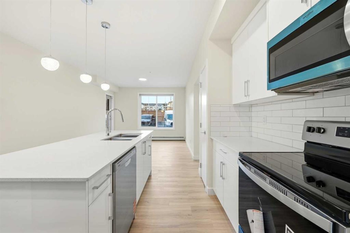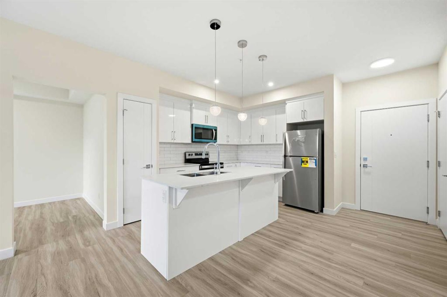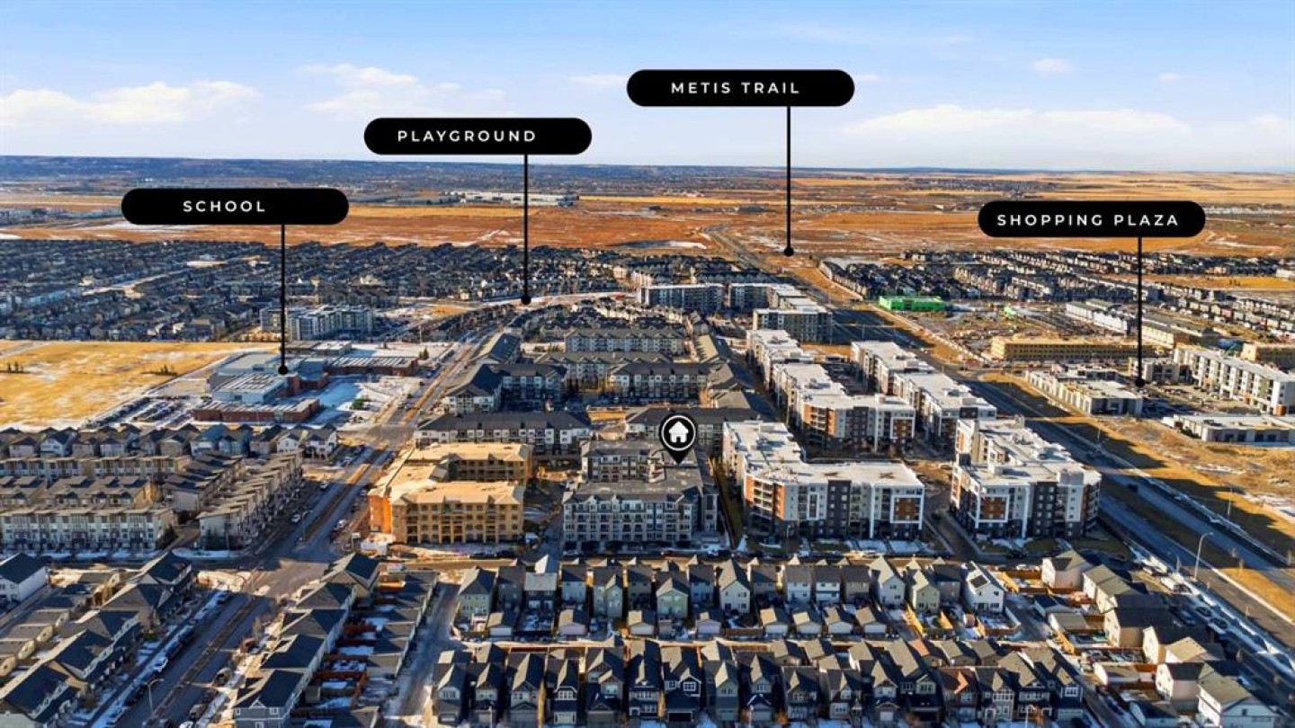 Welcome To This Brand-New, Move-In-Ready 1 + Den, 1-Bathroom Condo In The Vibrant And Fast-Growing Skyview Community Of NE Calgary. Thoughtfully Designed For Modern Living, This Bright And Airy Home Features 9-Foot Ceilings And Expansive Windows That Flood The Open-Concept Layout With Natural Light. Please Note That Huge Den With Large Window Can Be Converted Into A 2nd Bedroom By Adding A Door. Wide-Plank Luxury Vinyl Flooring And Quartz Countertops Throughout Create A Sleek, Contemporary Finish. The Fully Upgraded Kitchen Is Both Stylish And Highly Functional, Showcasing Stainless Steel Appliances, An Over-The-Range Microwave, Soft-Close Cabinetry, A Pantry, Quartz Countertops, And A Convenient Breakfast Bar—Perfect For Casual Dining, Working From Home, Or Entertaining. The Kitchen Flows Seamlessly Into The Living And Dining Areas, Offering A Warm And Inviting Space To Relax Or Host Guests. This Unit Features Generously Sized Rooms And A Modern 4-Piece Bathroom With Quartz Countertops And Refined Finishes. Additional Highlights Include In-Suite Laundry, Upgraded Designer Window Treatments, And A Large Private Balcony With A BBQ Gas Line, Ideal For Summer Entertaining Or Enjoying Fresh Air And Open Views. The Home Is Complete With Titled Underground Parking, A Titled Storage Locker, Secure Bike Racks Underground, Providing Exceptional Convenience And Value. Located In A Newly Constructed Building, Residents Enjoy Low-Maintenance Living With Easy Access To Shopping, Schools, Public Transit, Major Amenities, Calgary International Airport, And Quick Connections To Stoney Trail For Effortless Commuting Throughout The City. Perfect For First-Time Buyers, Professionals, Or Investors, This Turnkey Condo Offers An Affordable Opportunity To Own In One Of Calgary’s Most Desirable And Rapidly Growing Communities. Why Rent When You Can Own Your Own Home And Start Building Equity? Move In, Make It Yours, And Enjoy The Pride Of Ownership—This Is A Must-See Opportunity. Please Note: Property Taxes Have Not Yet Been Assessed. Additional Units Are Available—Contact Listing Agent For Details.