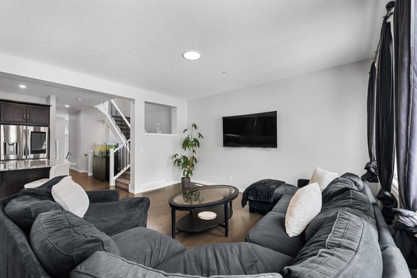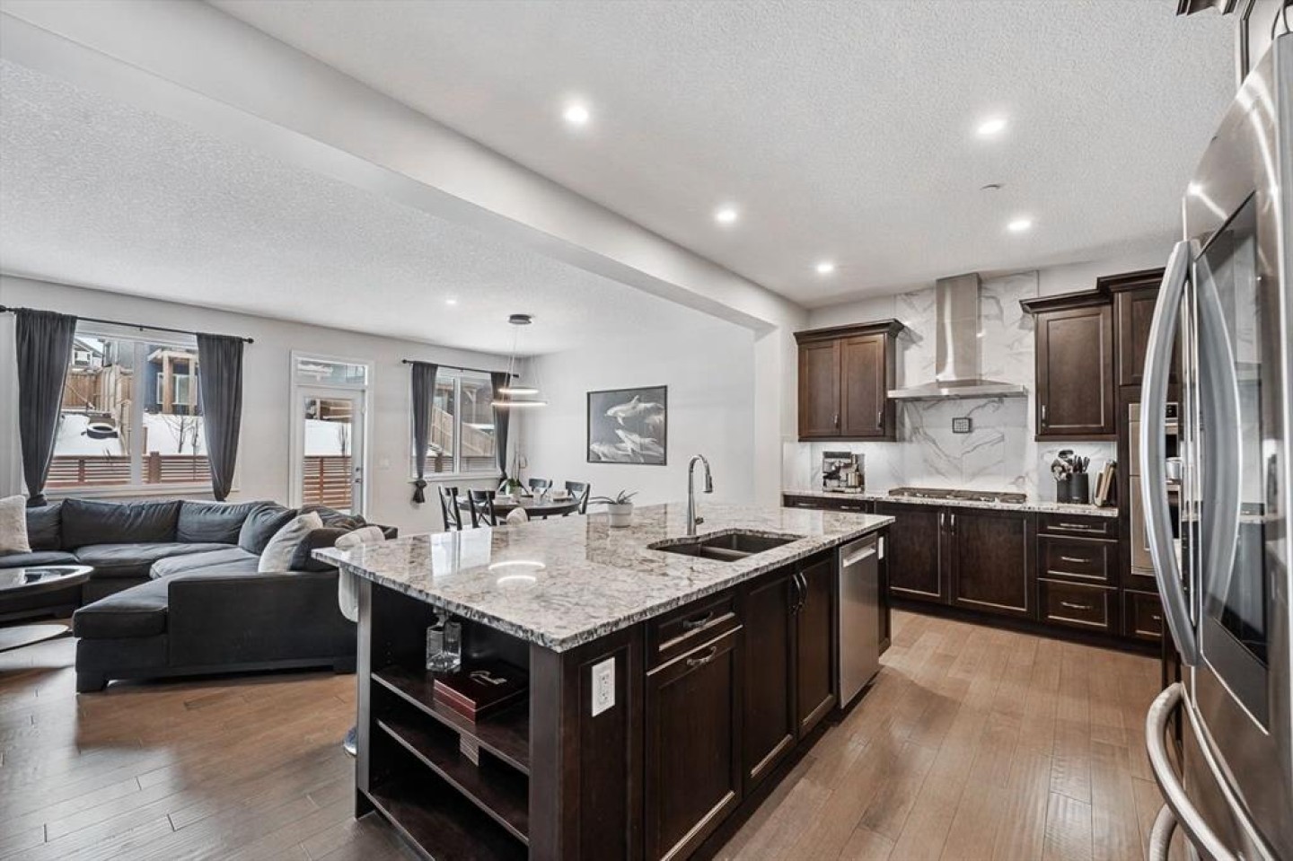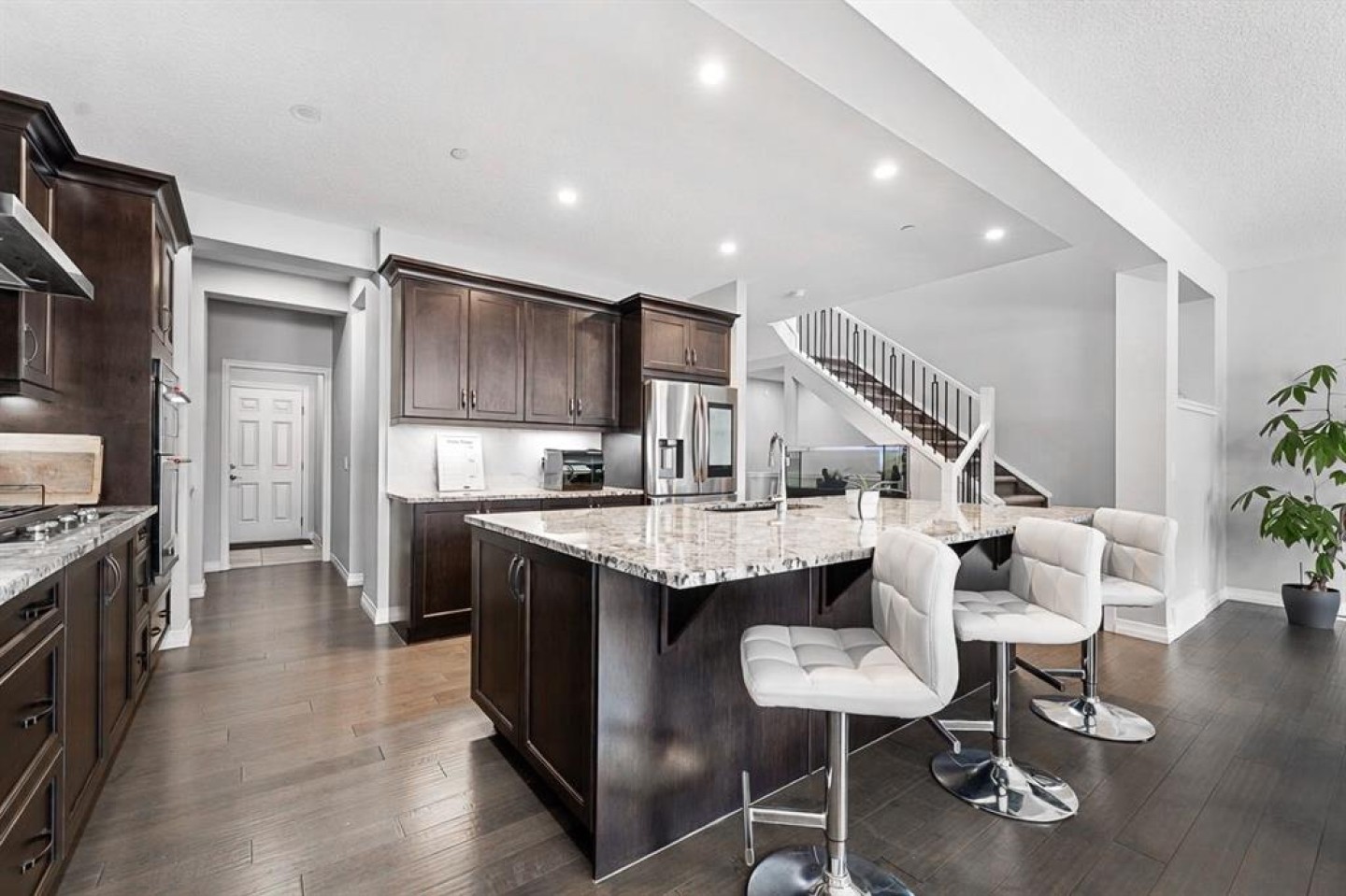 Welcome to 308 Lucas Way NW, a beautifully upgraded detached home offering over 2,600 sq ft of living space, in the vibrant community of Livingston. With modern finishes, energy efficient upgrades, and a thoughtfully designed layout, this home offers the perfect balance of comfort, style, and functionality. The open concept main floor features rich hardwood flooring and a stunning chef inspired kitchen complete with granite countertops, a large central island, built-in gas cooktop, built-in oven, stainless steel appliances, and a modern smart screen refrigerator. The space flows seamlessly into the dining and living areas, making it ideal for everyday living and entertaining. A dedicated main floor office provides the perfect setup for working from home. Upstairs you’ll find a spacious bonus room, a relaxing primary suite featuring a spa inspired ensuite and walk-in closet, along with two additional bedrooms, a full bathroom, and convenient upstairs laundry. The unfinished basement offers incredible potential for future development, giving you the opportunity to design the space to suit your lifestyle, whether it’s a recreation room, home gym, or extra living space. Additional highlights include SOLAR PANELS for improved energy efficiency, CENTRAL AIR conditioning for Calgary’s warm summer days, and an attached double garage. Located just steps from walking paths and parks, this home also offers quick access to Stoney Trail and is less than 15 minutes from Calgary International Airport. Restaurants, grocery stores, and many other everyday amenities are also just minutes away. This is a fantastic opportunity to own a spacious, upgraded home in one of Calgary’s fastest growing and most amenity rich communities.