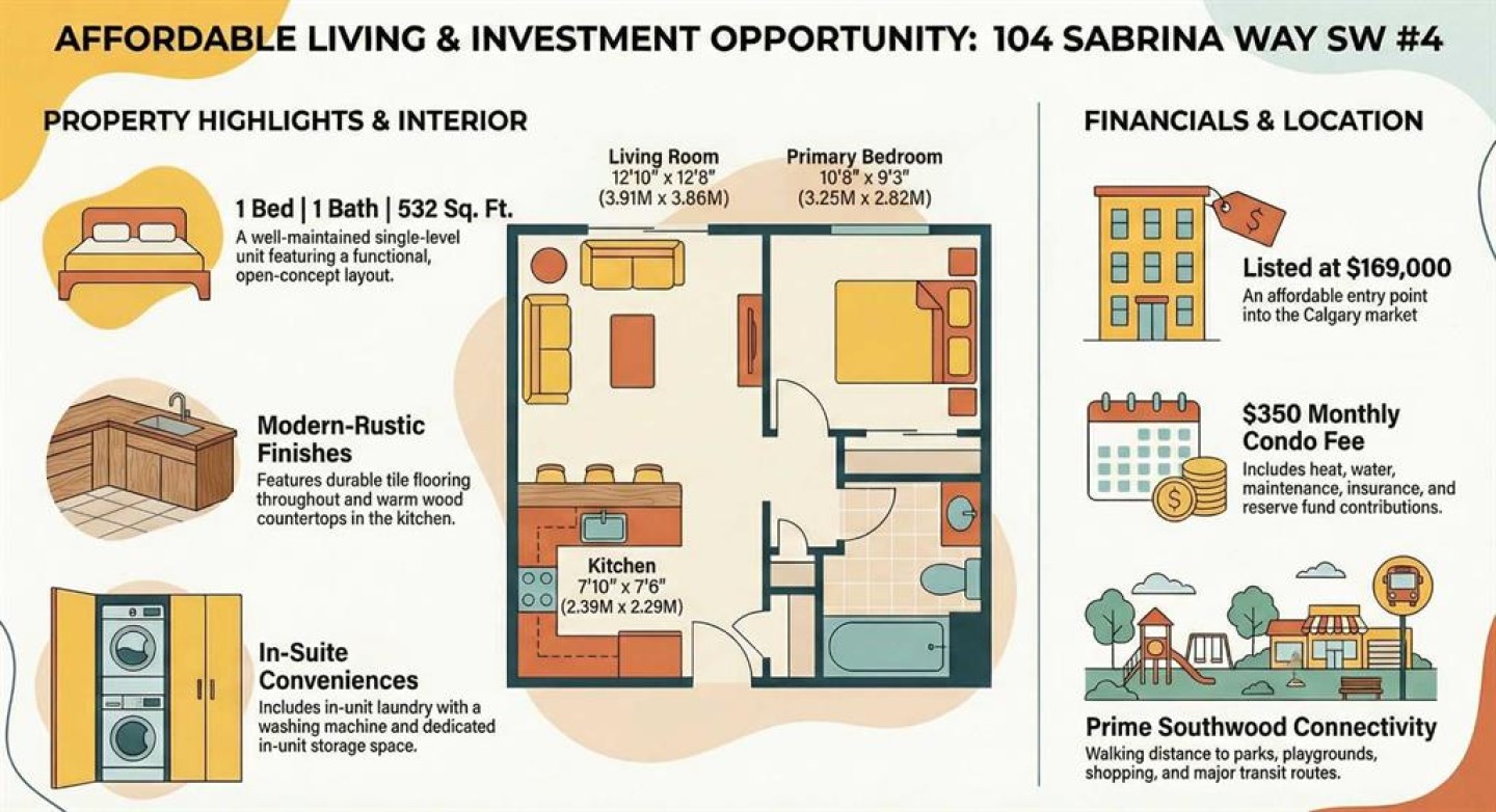 Quiet Southwood Location *** Tree-Lined Community *** Boutique 8-UNIT BUILDING *** NON-SMOKING Building *** NO PETS Building *** WALKING DISTANCE TO ANDERSON C-TRAIN STATION *** Quick Commute To Downtown Calgary *** Excellent Access To Major Routes *** Close To Shopping, Parks & Everyday Amenities *** Near 3 SCHOOLS: Ethel M. Johnson, Harold Panabaker, & Dr. E.P. Scarlett High School *** Durable TILE FLOORING Throughout *** BRIGHT Bedroom With Large Window *** IN-SUITE LAUNDRY *** Convenient In-Unit STORAGE *** ASIGNED PARKING Stall *** LOW CONDO FEES (UILITIES INCLUDED Except Electricity) *** Well-Maintained Building *** Established Southwood Neighborhood *** Comfortable, Affordable & Low-Maintenance Living In A Highly Accessible Location ***