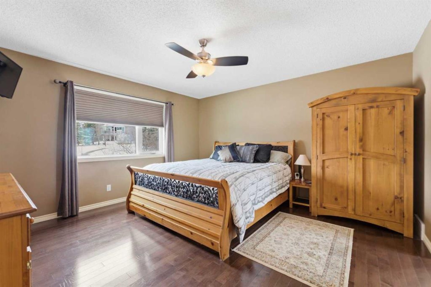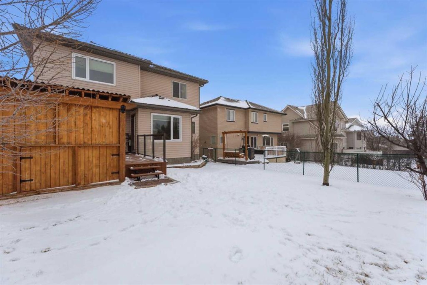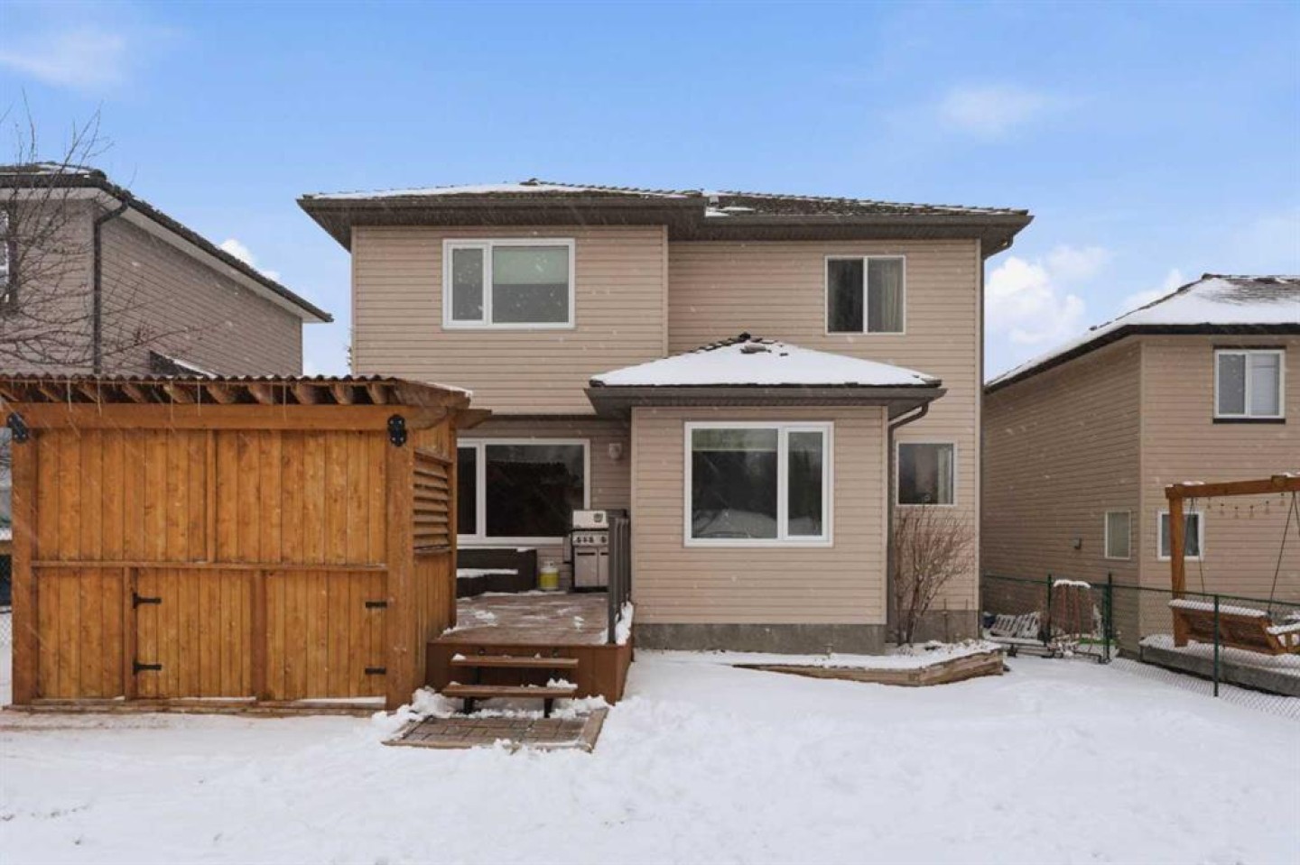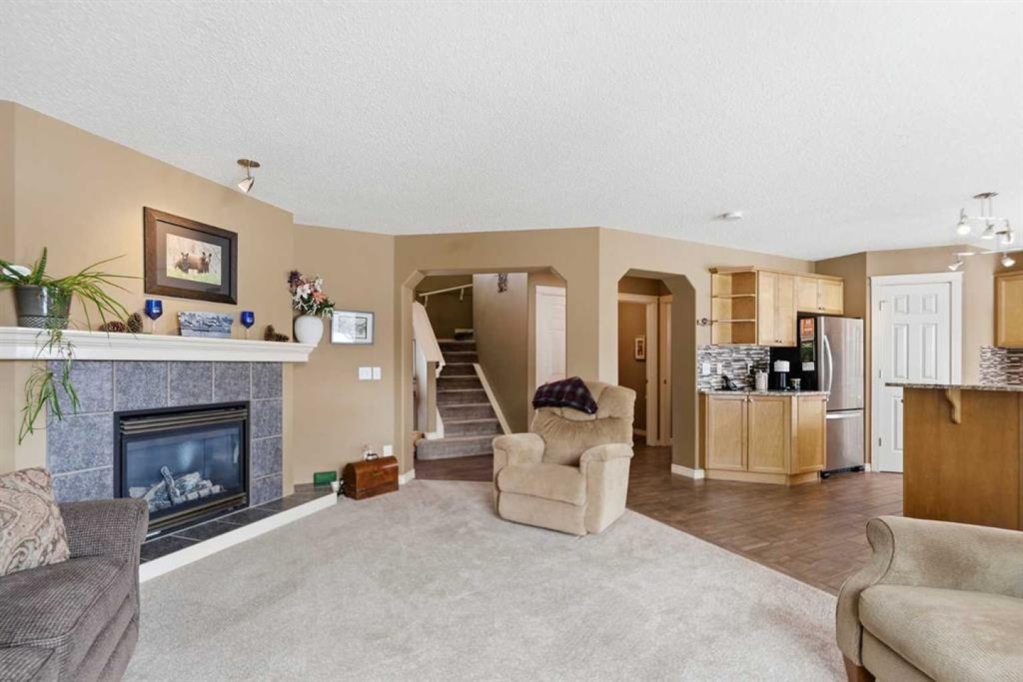 Backing onto a green space, this well cared-for 2-storey home is offered by the original owners. This 3-bdrm residence features an open-concept layout with warm earthy tones, hardwood and tile flooring, and a kitchen adorned with maple cabinetry, granite counters, an island, and a walk-in-pantry. The large bonus room boasts 9' ceilings, a stone feature wall with fireplace, and stunning sunrise valley views. The primary suite comes complete with a WIC, a 5-pc ensuite, and a mountain vista sunset! Enjoy peace of mind with LUX triple-pane windows (transferable warranty), new doors (front & back), a high-efficiency furnace, and central AC (2023). The professionally finished basement includes a family room, a 4th bedroom which can easily become a home office, and a furnace/storage area. Two egress windows and a 4-pc bath finish this space. Outside, the cedar deck with privacy glass leads to a 2-man hot tub inside the pergola, garden, and mature trees. The heated/insulated double garage includes a workbench and overhead storage. There’s a specific kind of quiet you only find in Gleneagles. This home has been meticulously kept, allowing you to skip the renovations and head straight to the trails. With the Glenbow Ranch Provincial Park as your neighbour, you have instant access to river views and kilometers of paved paths. It’s rare to find a spot that feels this secluded while staying so well-connected to the heart of Cochrane. Truly a pristine home in a prime location! Call your favourite Realtor® to book your private showing today!