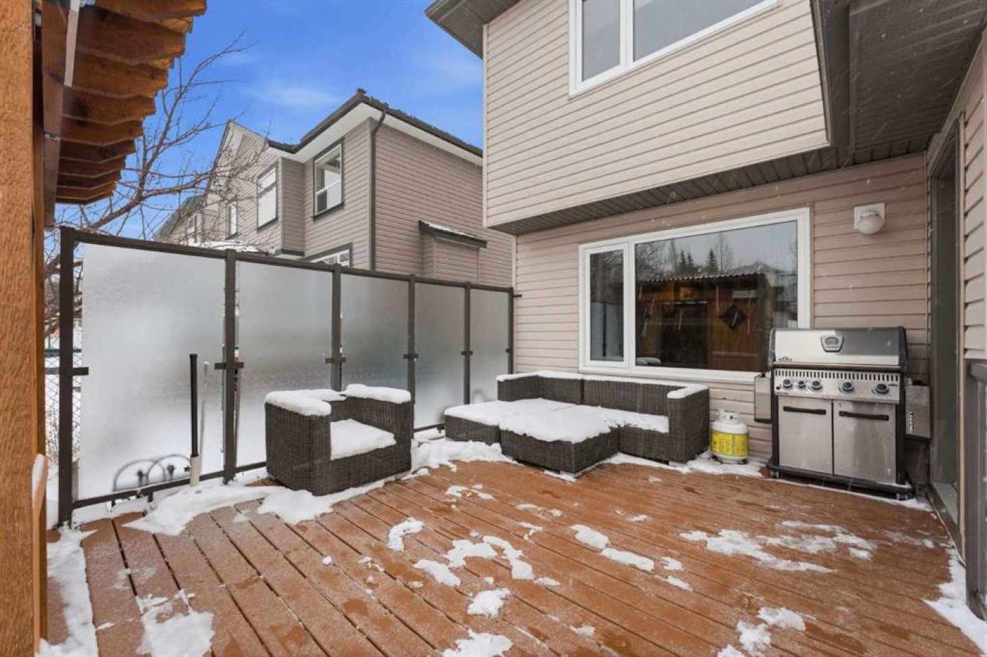 2-person hot-tub, pergola, small shed, TV wall bracket(s) in primary bedroom and basement rec room, wooden workbench and overhead shelving in garage. Note: Owners are willing to leave curtains in main living room and large brown (barely used) chair in basement.