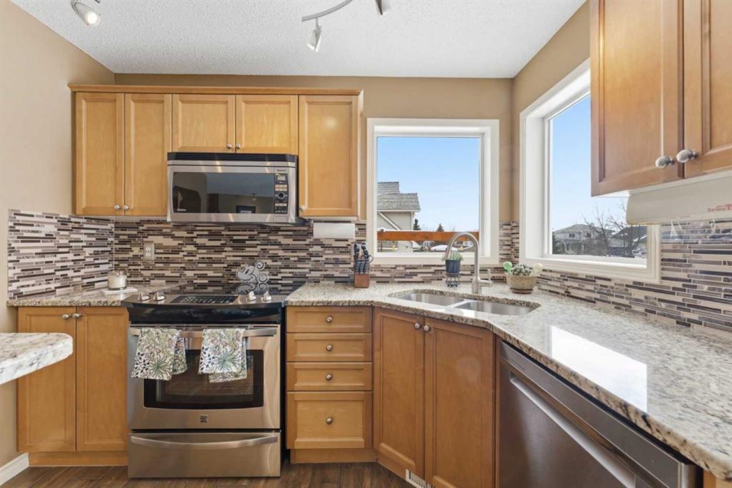Central Air Conditioner, Dishwasher, Dryer, Electric Stove, Garage Control(s), Gas Water Heater, Microwave Hood Fan, Refrigerator, Washer, Window Coverings