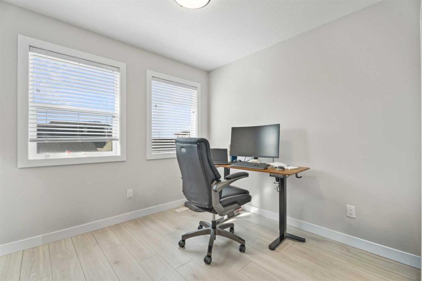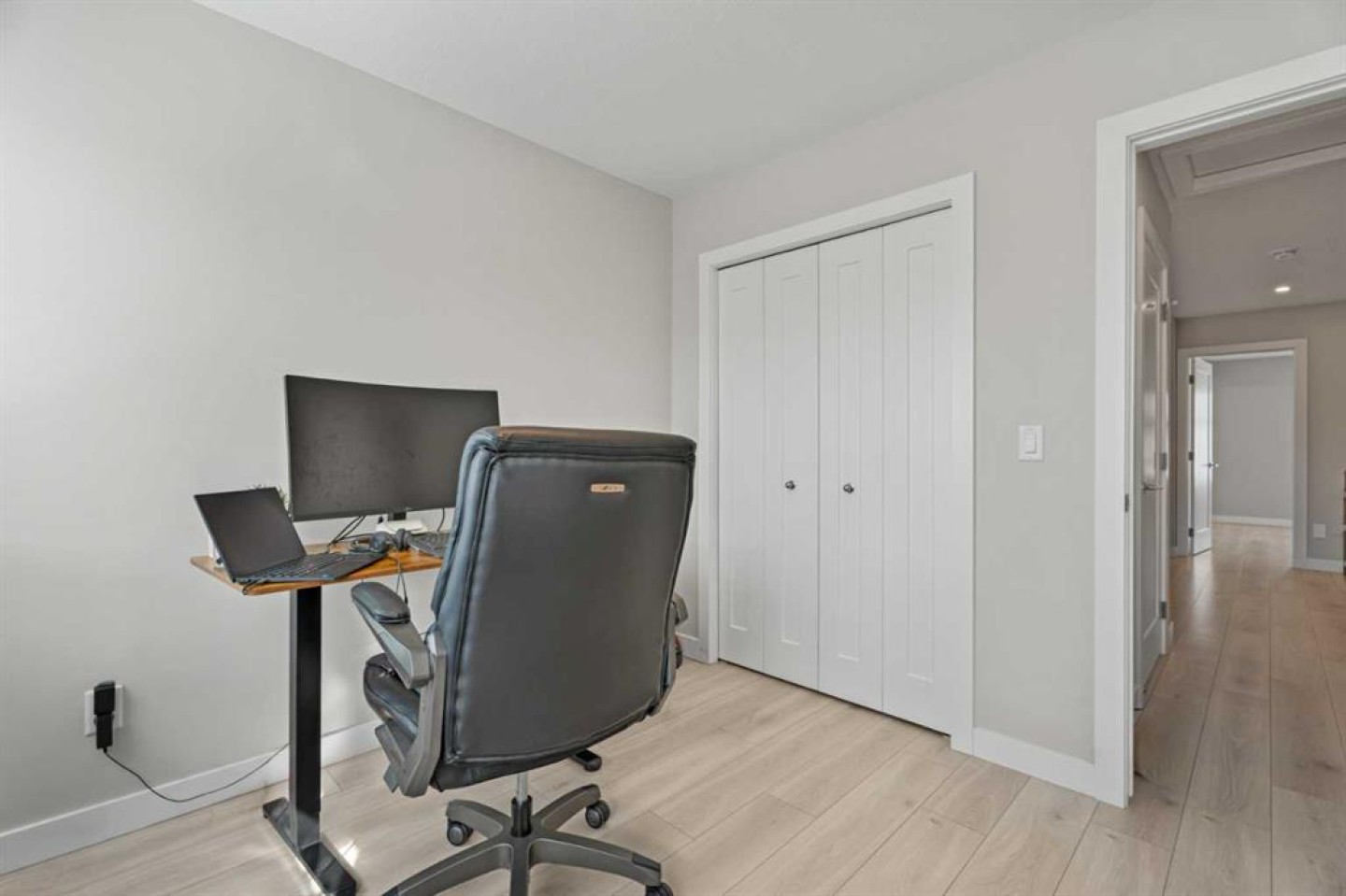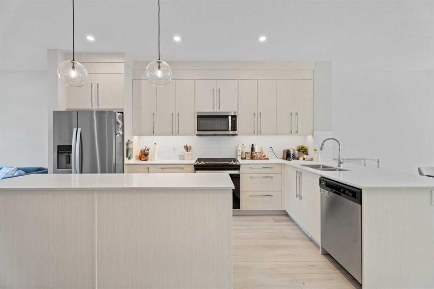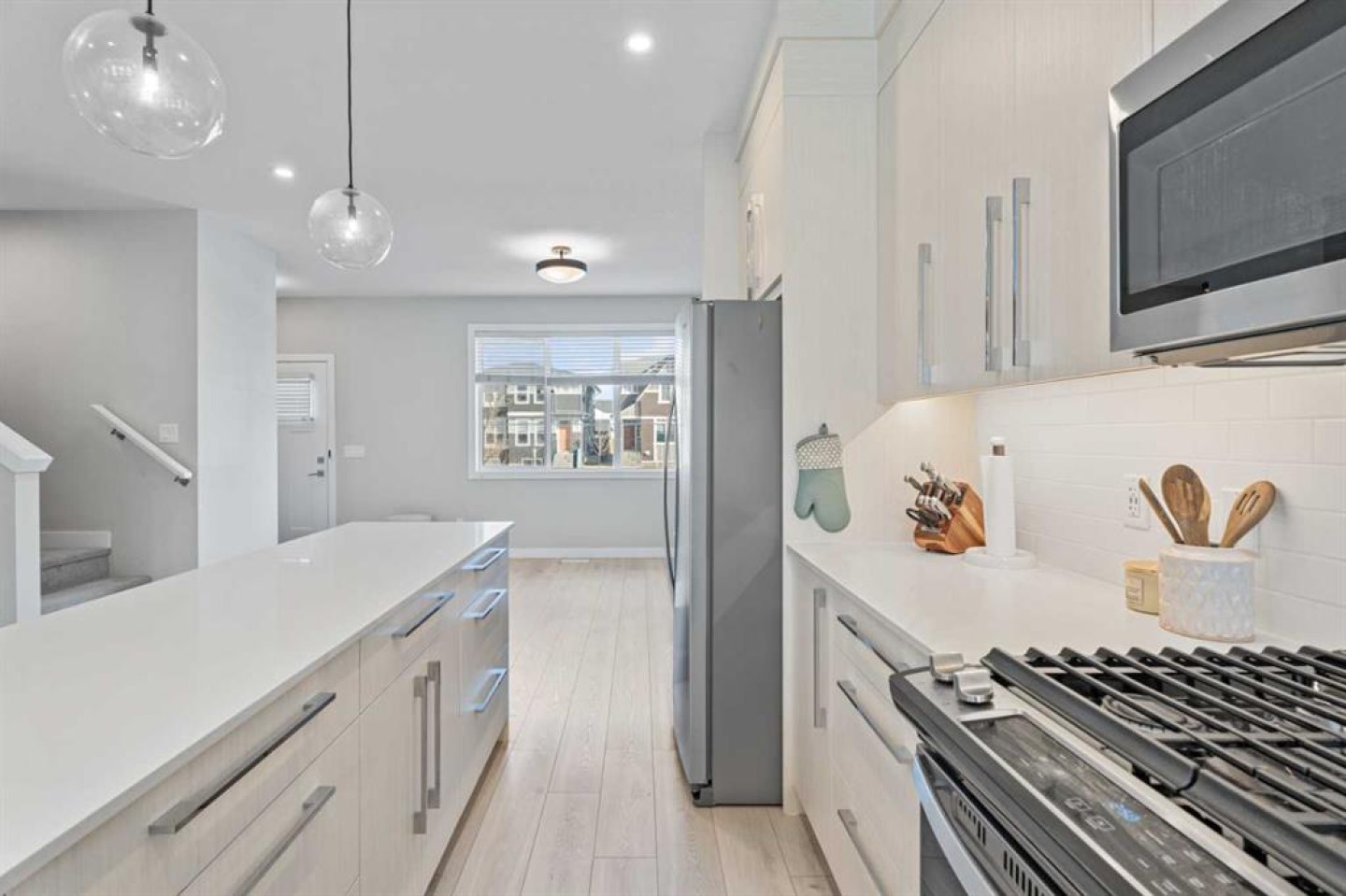 Spacious, bright, and beautifully finished—this half duplex with a legal basement suite in Creekstone is a fantastic turnkey investment opportunity. Fully leased and ready for its next investor. The main floor offers an open and functional layout with 9’ ceilings. The kitchen features full-height cabinetry, soft-close doors and drawers, quartz countertops, and a stainless steel appliance package including a gas stove. Durable Luxury Vinyl Plank flooring runs throughout the main level. Upstairs, the primary bedroom features a tray ceiling, walk-in closet, and a spacious 5-piece ensuite. A central bonus room with tray ceiling separates the primary suite from the two additional bedrooms, creating privacy and flexible living space. The upper level also includes convenient laundry with washer and dryer and a 4-piece bathroom. The fully legal 1-bedroom basement suite includes a separate side entrance, high ceilings, kitchen with stainless steel appliances, comfortable living area, and in-suite laundry. Located in the growing community of Creekstone, residents enjoy easy access to parks, walking paths, and natural green spaces, perfect for outdoor living. Shopping, amenities, and daily conveniences are just minutes away, while the location also offers a quick escape to the mountains for weekend adventures. The property is complete with a detached double garage in a paved alley, plenty of street parking and transit access.