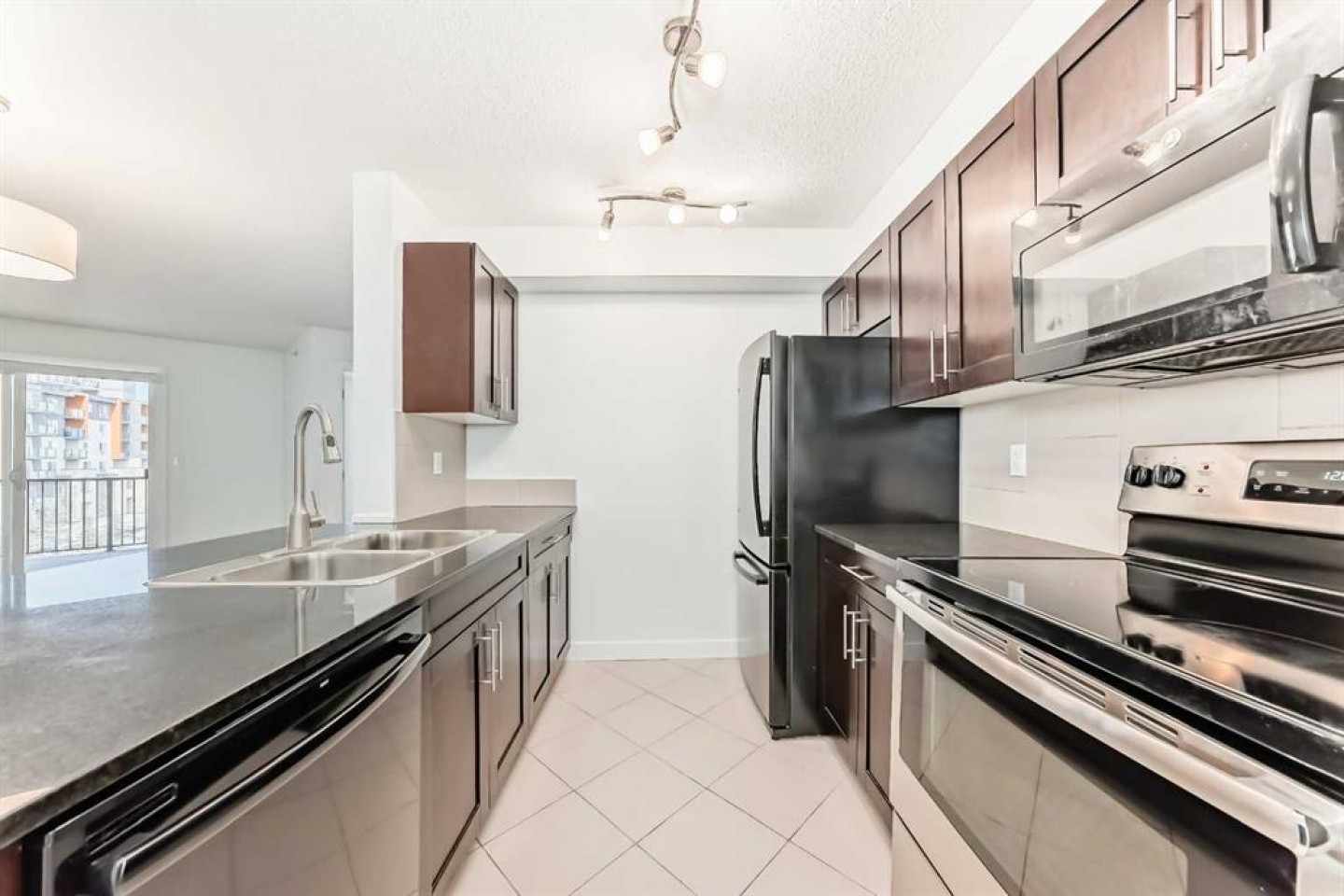 Dishwasher, Electric Range, Microwave Hood Fan, Refrigerator, Washer/Dryer Stacked, Window Coverings