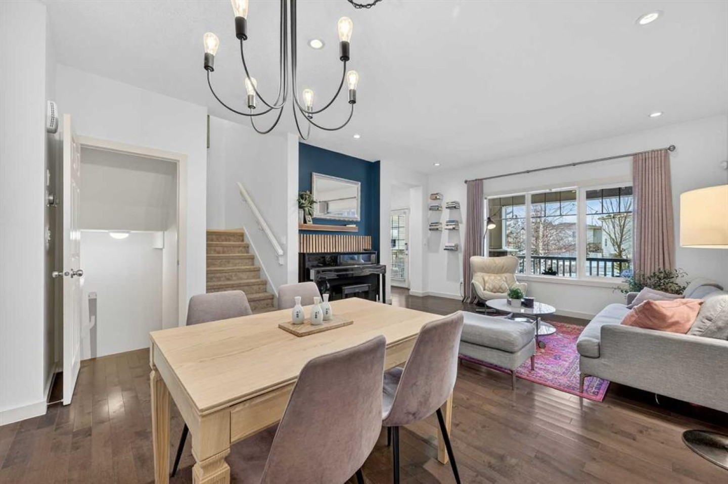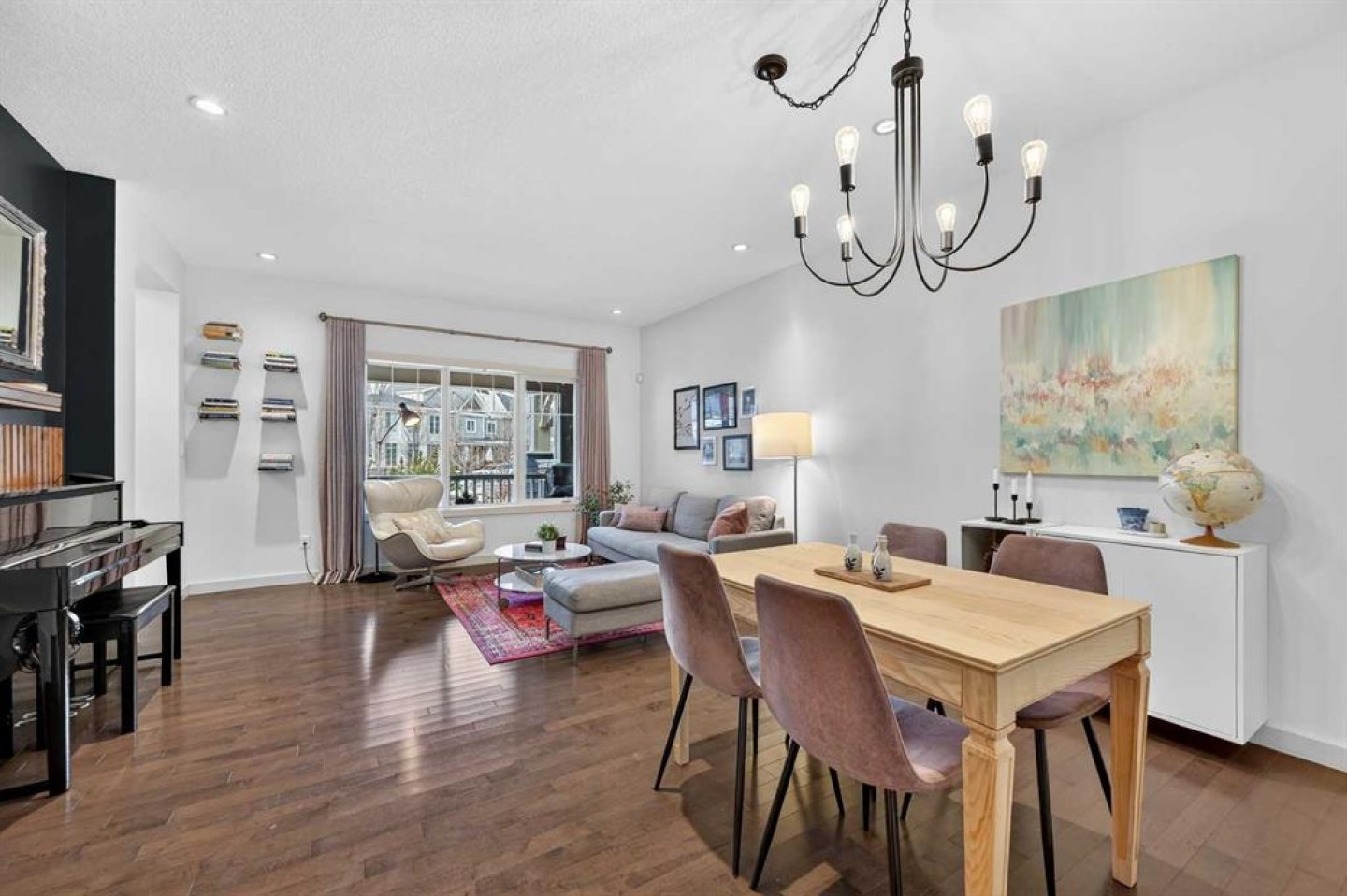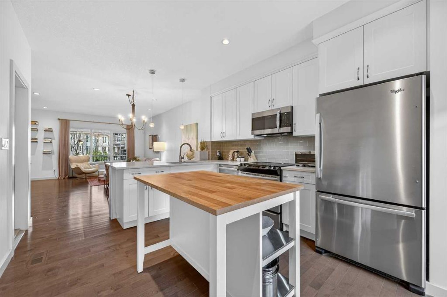 A rare opportunity to own a meticulously maintained and upgraded townhome in the award-winning Currie Barracks community, where quality and lifestyle come together in perfect harmony. This Homes by AVI “Mahoney” model delivers nearly 2,200 sq ft of developed living space over three well-planned levels, with 3 bedrooms up and 4 bathrooms. Natural light floods the open-concept main floor, highlighting hardwood floors, 9' ceilings, and a living area that flows into the kitchen and dining space. The sunny west-facing front porch invites you to unwind, and the kitchen’s quartz countertops, stainless steel appliances, abundant storage, and direct access to the private patio and fenced yard make everyday living and entertaining effortless. Imagine peaceful mornings in the primary suite, complete with a full walk-in closet and luxurious 5-piece ensuite, while two additional spacious bedrooms and a full bathroom complete the upper level. The fully developed basement (with permits) expands your lifestyle options with a family room, a home office or den, 2-piece bathroom, and extra storage. An insulated single attached garage and generous front entry add daily convenience, while a newly installed 4 kW solar system means meaningful energy savings and added long-term value. Situated steps from parks, playgrounds, and excellent schools including Montessori programs, and with quick access to Crowchild Trail, Sarcee Trail, Marda Loop, and Westhills Shopping Centre, this home delivers inner-city living with a true community feel. Currie Barracks is continuing to evolve with future shops, cafes, and amenities, making this an outstanding lifestyle choice and investment.