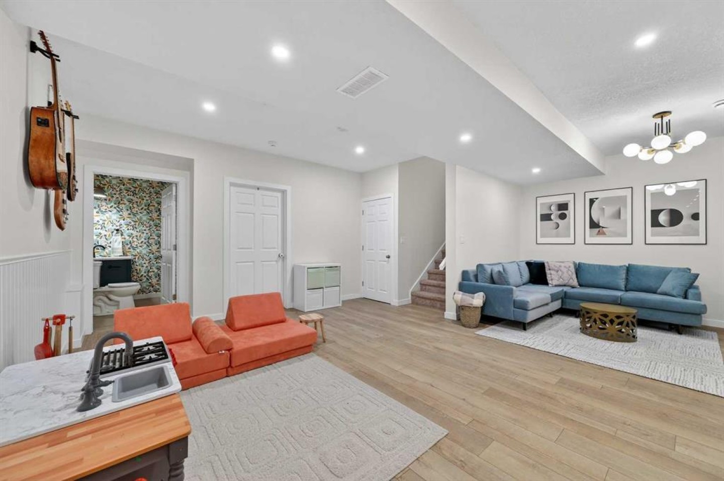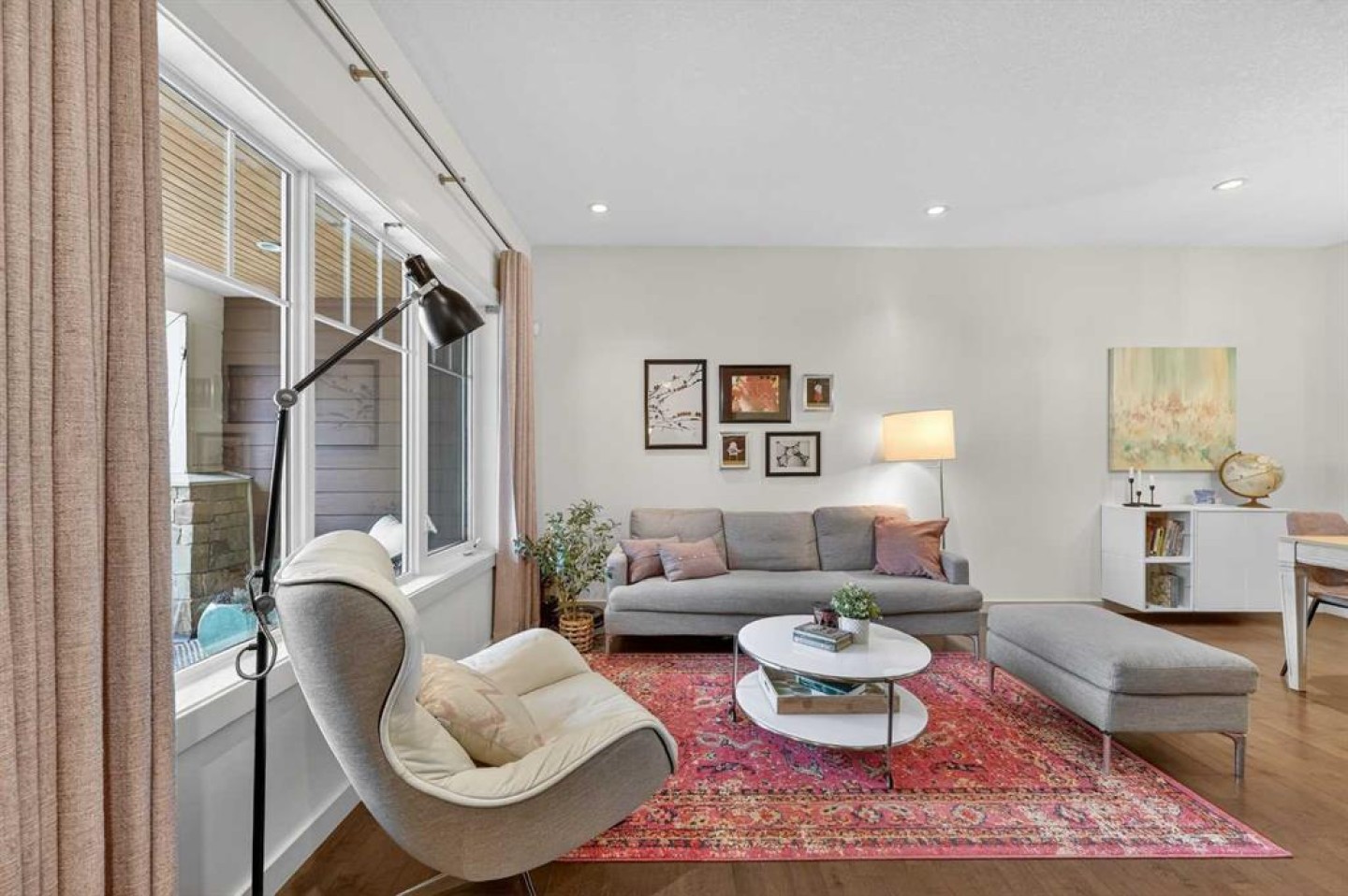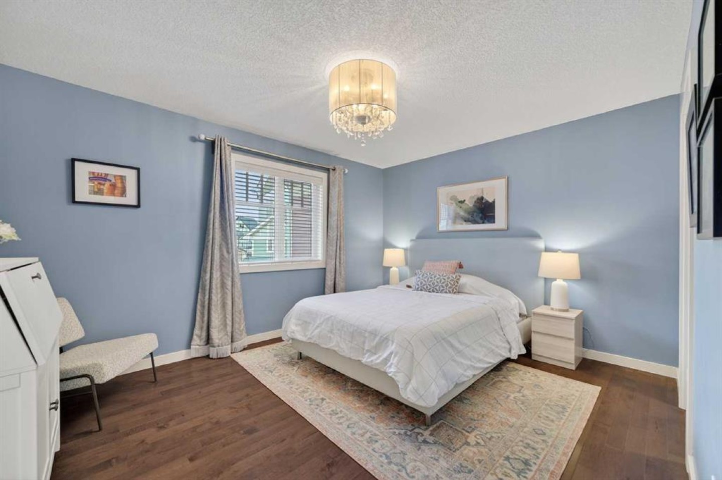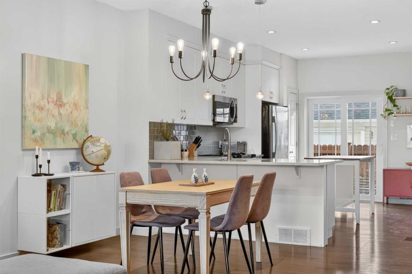 A rare opportunity to own a meticulously maintained and upgraded townhome in the award-winning Currie Barracks community, where quality and lifestyle come together in perfect harmony. This Homes by AVI “Mahoney” model delivers nearly 2,200 sq ft of developed living space over three well-planned levels, with 3 bedrooms up and 4 bathrooms. Natural light floods the open-concept main floor, highlighting hardwood floors, 9' ceilings, and a living area that flows into the kitchen and dining space. The sunny west-facing front porch invites you to unwind, and the kitchen’s quartz countertops, stainless steel appliances, abundant storage, and direct access to the private patio and fenced yard make everyday living and entertaining effortless. Imagine peaceful mornings in the primary suite, complete with a full walk-in closet and luxurious 5-piece ensuite, while two additional spacious bedrooms and a full bathroom complete the upper level. The fully developed basement (with permits) expands your lifestyle options with a family room, a home office or den, 2-piece bathroom, and extra storage. An insulated single attached garage and generous front entry add daily convenience, while a newly installed 4 kW solar system means meaningful energy savings and added long-term value. Situated steps from parks, playgrounds, and excellent schools including Montessori programs, and with quick access to Crowchild Trail, Sarcee Trail, Marda Loop, and Westhills Shopping Centre, this home delivers inner-city living with a true community feel. Currie Barracks is continuing to evolve with future shops, cafes, and amenities, making this an outstanding lifestyle choice and investment.