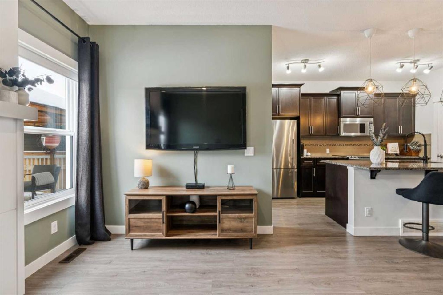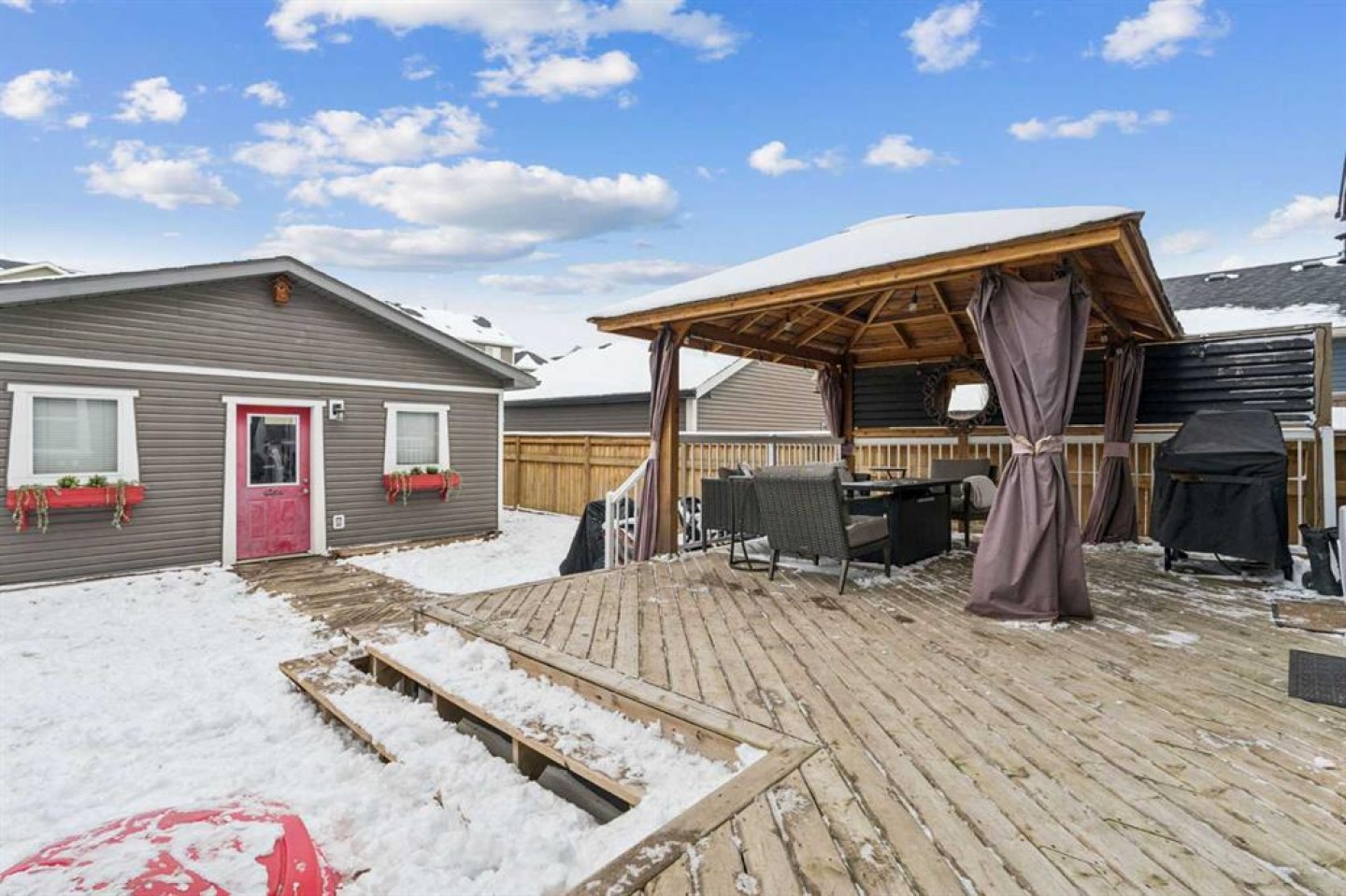Beautifully finished 2 storey home with 4 bedrooms and 3.5 bathrooms in the desirable community of Fireside. This well-maintained, MOVE-IN READY home features tasteful upgrades, a functional floor plan, laminate flooring, and large windows that fill the space with natural light. The main floor welcomes you with a SPACIOUS FOYER and a versatile OFFICE/FLEX ROOM, perfect for working from home. The OPEN-CONCEPT kitchen is ideal for everyday living and entertaining, featuring GRANITE COUNTERTOPS, designer lighting, a LARGE ISLAND, shaker-style cabinetry, and a generous pantry. The bright dining area flows seamlessly into the cozy living room with a GAS FIREPLACE, creating a warm and inviting atmosphere. Upstairs, you’ll find three spacious bedrooms, including the primary retreat with a WALK-IN-CLOSET and private 4-piece ensuite, along with a full main bathroom. The FULLY FINISHED BASEMENT adds valuable living space with a recreation room, fourth bedroom, and an additional 4-piece bathroom perfect for guests or a growing family. Enjoy outdoor living with a charming gazebo with lighting, ideal for relaxing or entertaining in the beautifully landscaped backyard. The property also offers RV PARKING with back lane access and a HEATED DOUBLE DETACHED GARAGE. Fantastic location just steps from parks and within walking distance to the K–8 school, sports fields, and nearby shopping. A wonderful family home in a vibrant community.