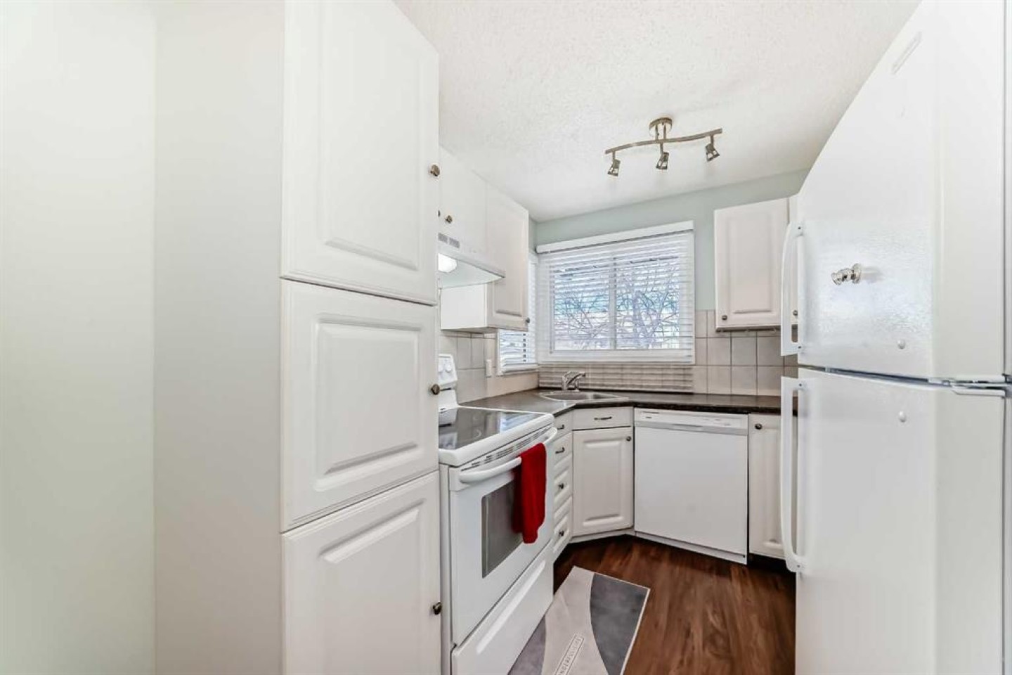 Dishwasher, Dryer, Electric Stove, Range Hood, Refrigerator, Window Coverings