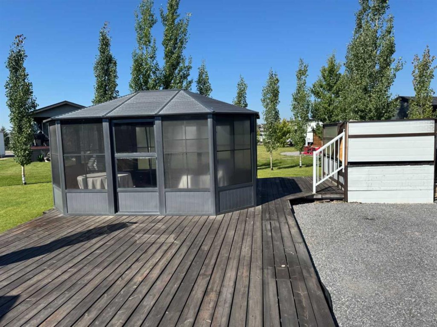 Summer is just around the corner! You will love lake living at the beautiful 4-Season Sandy Point Resort on the southwest shores of Gull Lake! This vibrant recreational community offers the perfect blend of relaxation, recreation, and resort-style amenities. This well-established, thoughtfully landscaped, and fully serviced lot is located within a secure gated community and is ready for you to start enjoying right away. The property features a spacious RV parking stall, a large wood patio ideal for outdoor entertaining, a charming gazebo for relaxing summer evenings, and a convenient storage shed. Sandy Point Resort offers an incredible lifestyle with access to a public beach, marina, playgrounds, camping areas, showers, bathrooms, a community gazebo, and an on-site store—everything you need for carefree lake days. Ideally situated close to the welcoming communities of Bentley, Lacombe, and Sylvan Lake, you’ll also enjoy nearby U-Pick farms, local greenhouses, and fresh country produce. Whether you're searching for the perfect summer escape or a year-round retreat, this exceptional lot at Sandy Point Resort is ready to make your lake life dreams a reality.