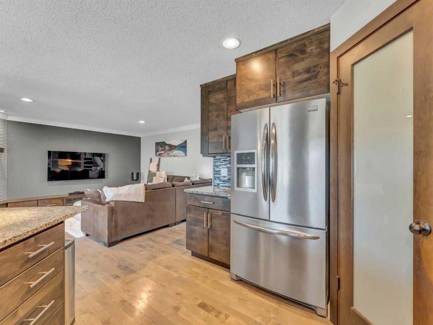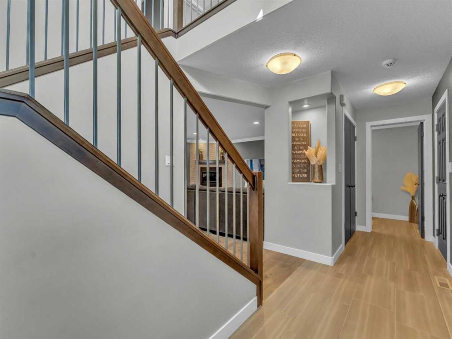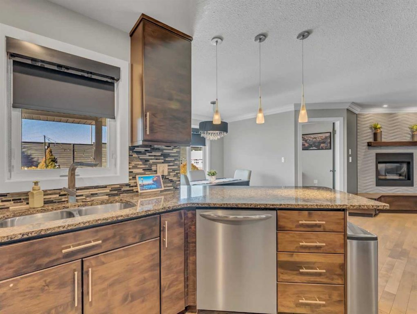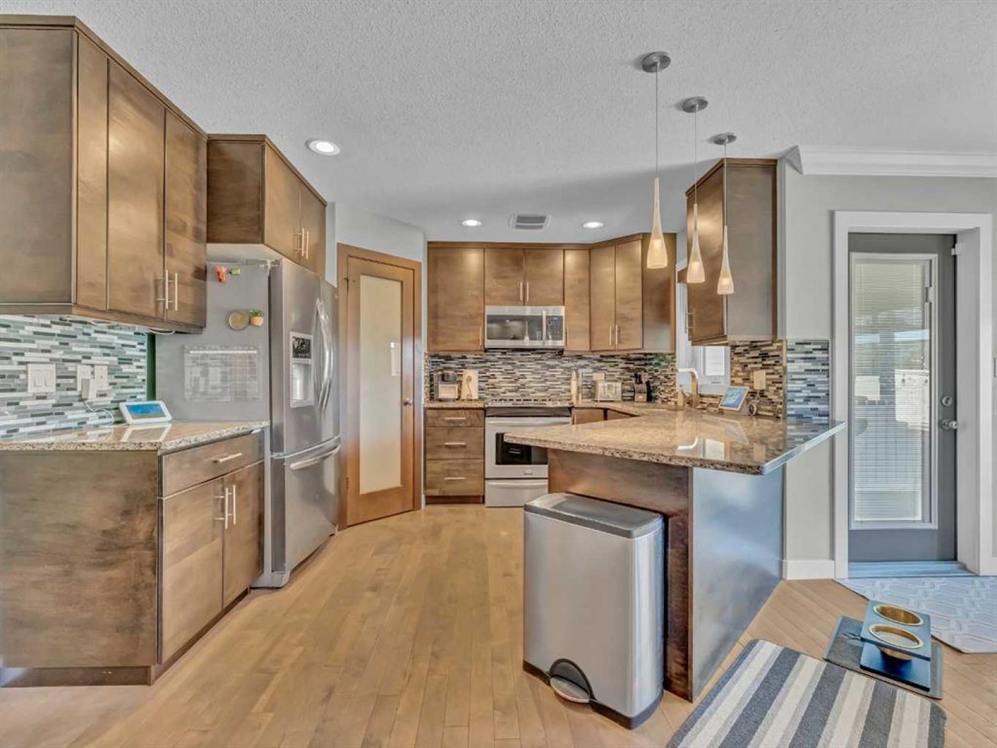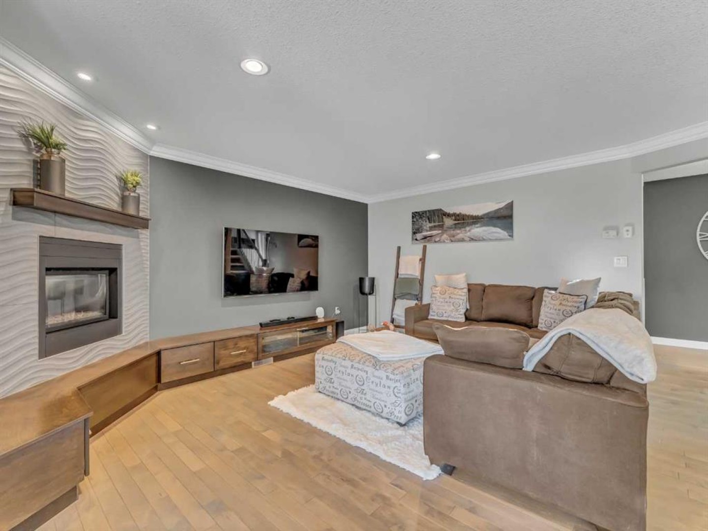 Thoughtful details throughout this home create a warm and inviting atmosphere, starting with the real hardwood flooring that flows seamlessly across the main floor. The entry way is the perfect welcome into the home, its bright and inviting. The open-concept living space is filled with natural light from large windows and includes a conveniently located main floor office—perfect for staying connected with family while working or enjoying views of the lovely backyard. The kitchen showcases custom details, modern yet warm finishes, a peninsula feature with eat up seating, a corner pantry, and stainless steel appliances, making it both stylish and functional . The living room is a cozy focal point with built-in cabinetry and stunning tile work surrounding the gas fireplace. Upstairs you’ll find three well-sized bedrooms and a conveniently located laundry room complete with sink and cabinetry—right where all the laundry happens! The primary bedroom features a walk-in closet with a window and built in features, and a private ensuite with a relaxing soaker tub, double sinks and a walk in shower. The bright and welcoming basement offers a spacious family room, a beautifully done bathroom, and a dedicated gym area. This space could easily be converted into a fourth bedroom if desired. Outside, enjoy the fantastic backyard featuring a good size concrete patio, and a hot tub - perfect for relaxing or entertaining. There is a small BBQ deck off the inside dining space with a gas hook up as well. The yard is fully fenced, there are underground sprinklers front and back with a shed for extra exterior storage. The double attached, heated garage is another great feature of this property, and the concrete front drive partners well to allow for ample parking. This home is centrally located with two great playgrounds within close walking distance, and large greenspaces and schools, and other desirable amenities just a stones throw away.