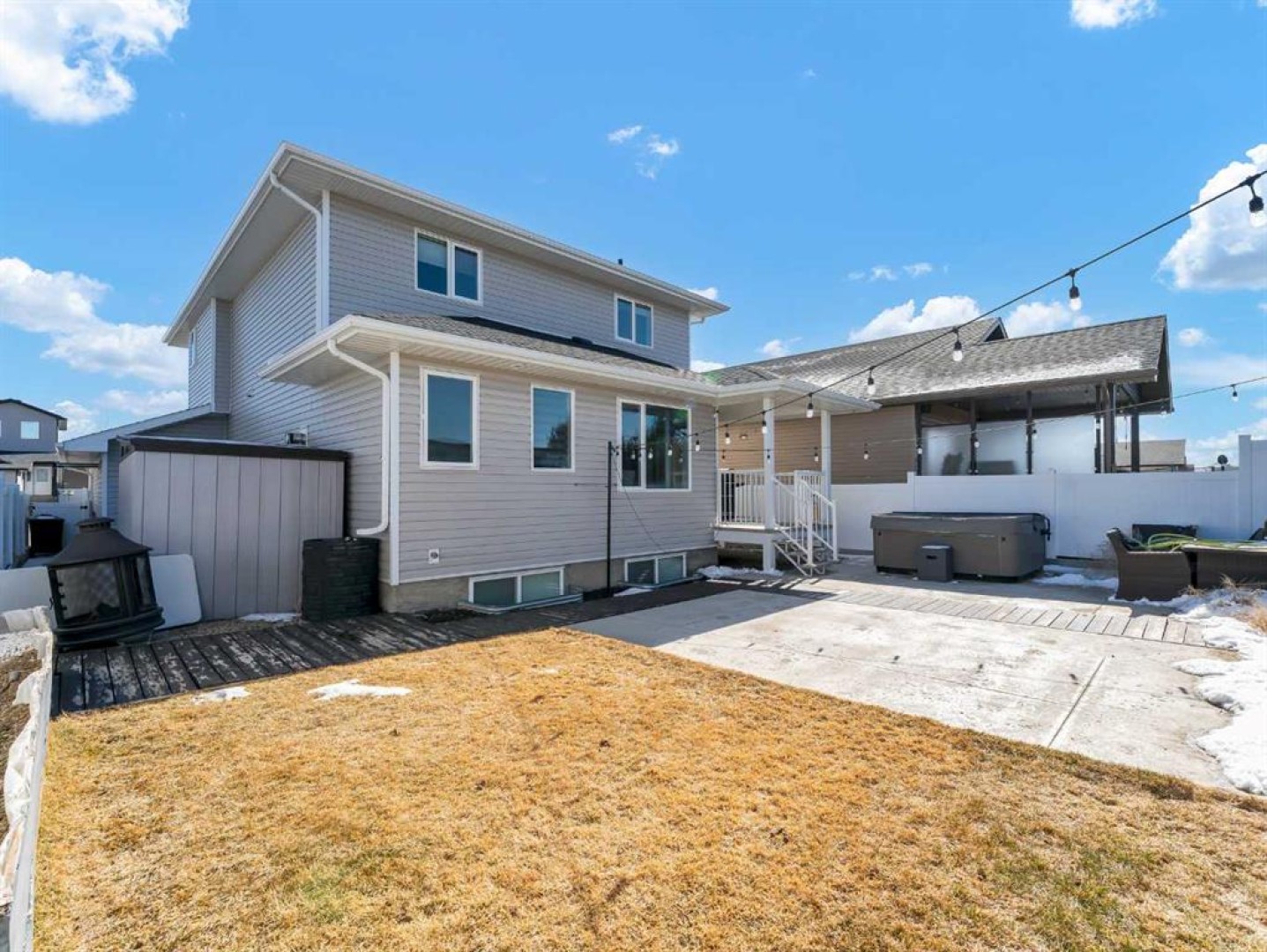 fridge, stove - gas, dishwasher, microwave - BI, garburator, washer, dryer, all window coverings, TV mounts (4), front entry shelf, garage door control -2, remote -2, garage heater, garage sink, UGS front and back, shed, hot tub and accessories, outdoor string lights, door bell cam, 2 exterior cameras
