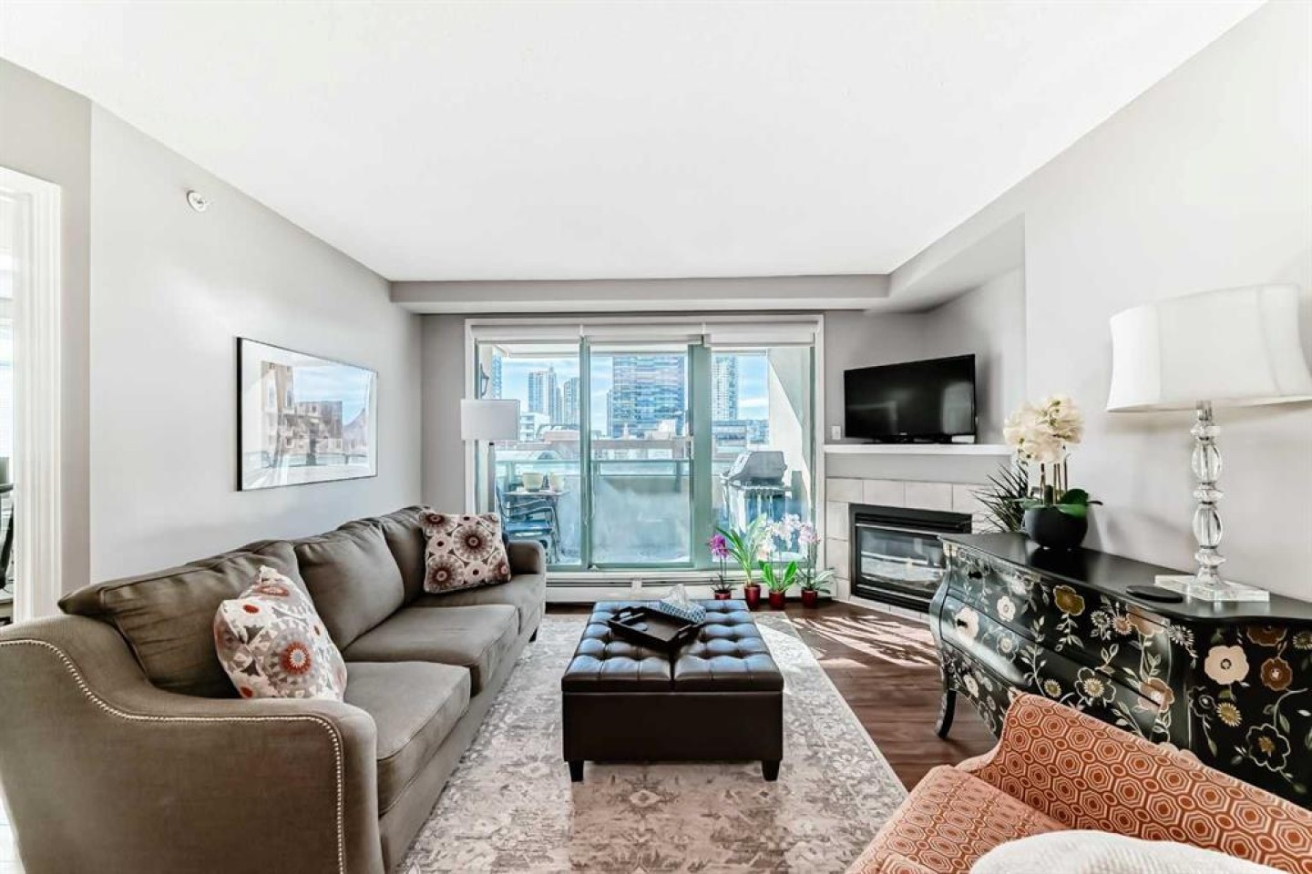 LOCATION, LIFESTYLE, and LUXURY — Welcome to Discovery Pointe!  Nestled in the heart of one of Downtown Calgary's most desirable and walkable inner-city neighborhoods, the West End! This stunning 2-bedroom, 2-bathroom home is your gateway to vibrant urban living! Located on the third floor, this unit boasts a bright, modern aesthetic with high-end finishes throughout. The gourmet kitchen features sleek countertops, premium stainless steel & black appliances, and plenty of cupboard and counter space — perfect for the passionate home chef. A large breakfast bar opens to the dedicated dining area and a cozy living room complete with a gas fireplace — the perfect space to cuddle up to your favourite book or unwind with the latest Netflix binge. Step outside onto your oversized covered balcony — perfect for BBQs, hosting friends and family alike, or simply enjoying a quiet morning coffee in the fresh air. The primary bedroom is filled with natural light and connects to a generous walk-through closet leading to your 3-piece bathroom, complete with a glass-enclosed standup shower — a cozy retreat at the end of your day! The spacious second bedroom could easily serve as a den or office for quiet work and includes a 4-piece ensuite bath as well. Additional conveniences include concierge services, in-suite laundry, a TITLED underground parking stall, underground visitor parking, a massive party room for hosting special events, a games room with ping-pong and billiards, and an extremely well equipped fitness centre on the 3rd floor steps from your new home. This prime location offers unbeatable access to all the trendy shops, cafes, and restaurants of Downtown Calgary to satisfy whatever you're craving. Live steps from the Bow River pathways, parks, and C-Train station - with free transportation within the downtown core - this location offers the best of urban convenience and natural beauty. Don’t miss your chance to own in one of Calgary’s most coveted neighborhoods — call today to book your private showing!