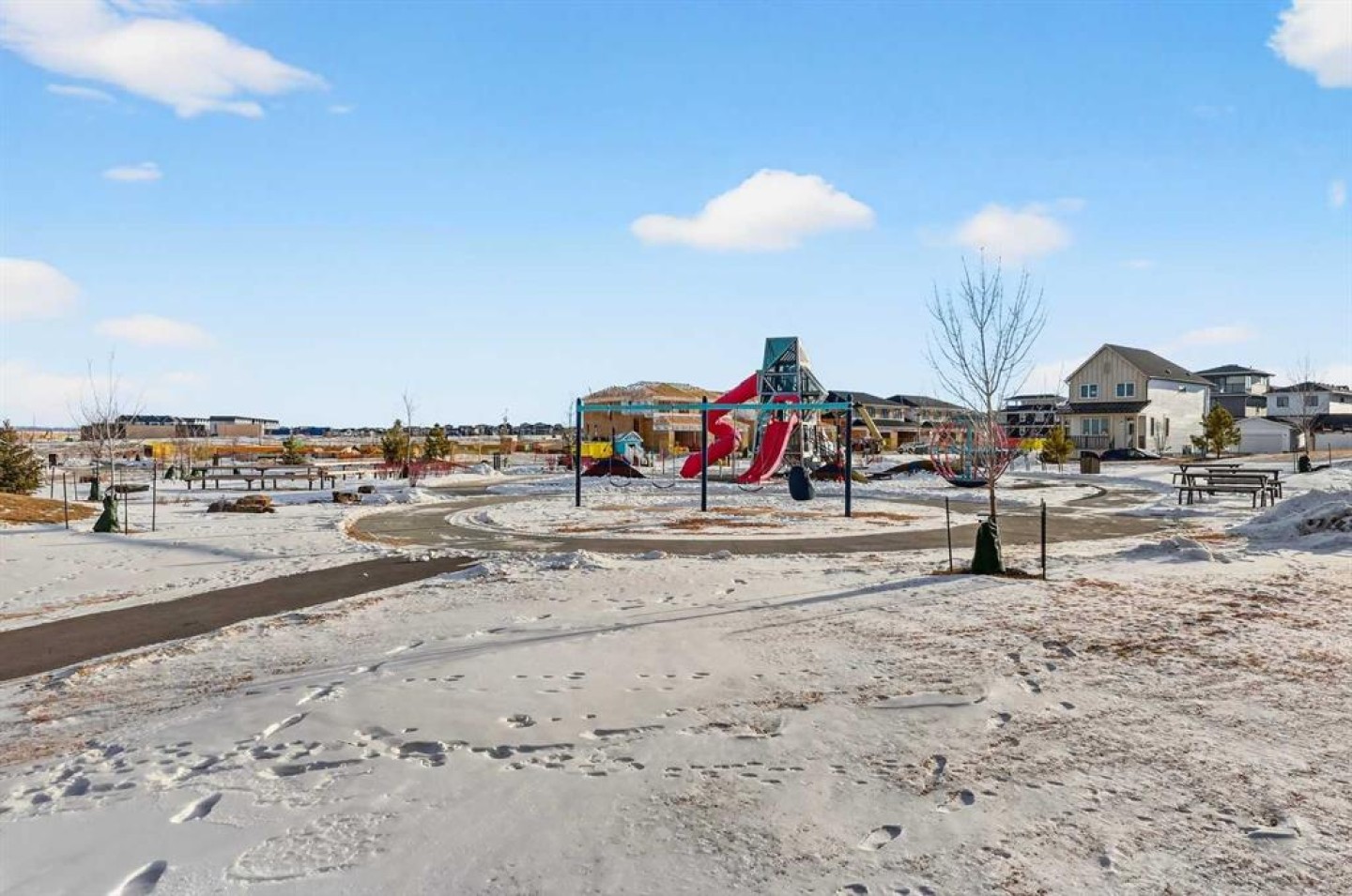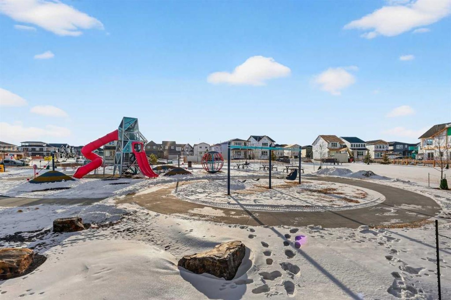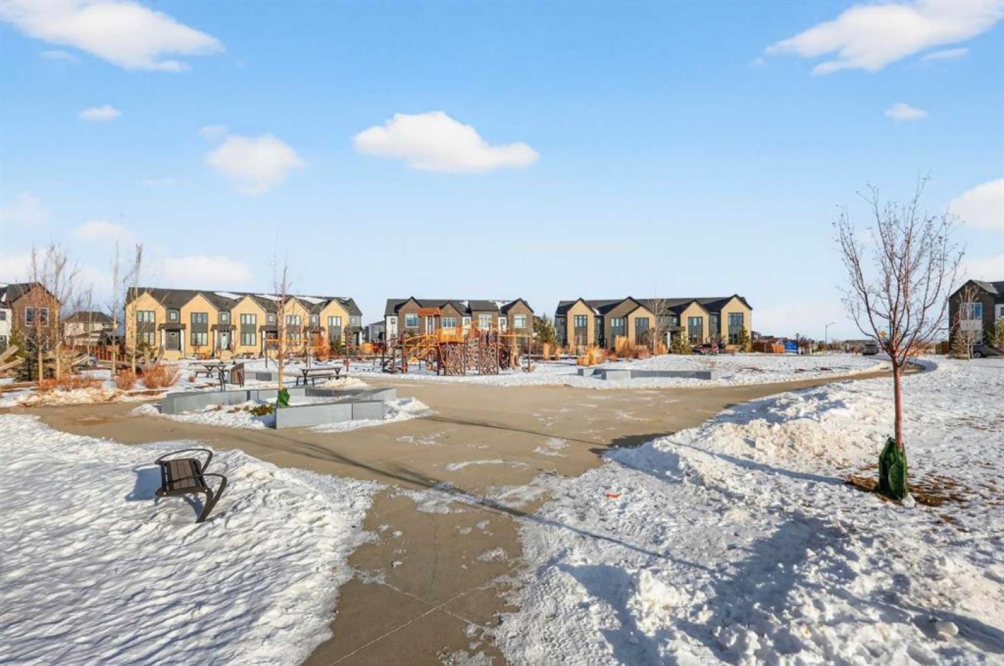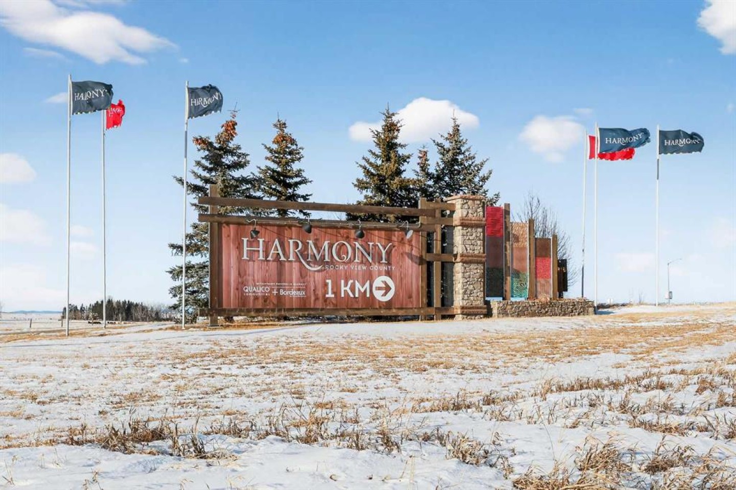 Experience the height of sophisticated living in this highly coveted luxury townhome, where a generous floor plan meets modern comfort and refined finishes. Proudly presented by StreetSide – this thoughtfully designed unit features 3 bedrooms, 2.5 bathrooms, and a front attached double car garage. The heart of the home is a spacious kitchen with a large central island, polished white quartz countertops, upgraded stainless steel appliances, and elegant sliding French patio doors that open to your covered deck area—ideal for both everyday living and entertaining. Light floods into the living room with ease through the large window, while luxury vinyl plank flooring flows throughout the main floor living areas, and carpeted stairs leading to the upper level and bedrooms provide extra warmth. The primary ensuite is a private sanctuary, complete with tile flooring, double sinks, a freestanding soaker tub, and an oversized tile-and-glass shower delivering spa-inspired comfort at home. The unfinished basement with roughed-in plumbing provides future potential for additional living space tailored to your needs. Professional landscaping and fencing complete your new home. Ideally located in the award-winning community of Harmony, residents enjoy Mickelson National Golf Course, private lake amenities, scenic walking and biking trails, and a wellness-focused lifestyle—just a shorty drive from Calgary city minutes and 45 minutes from the Rocky Mountains, where nature and convenience come together effortlessly