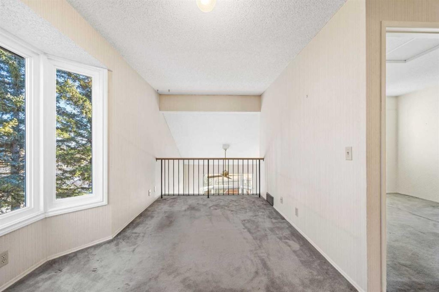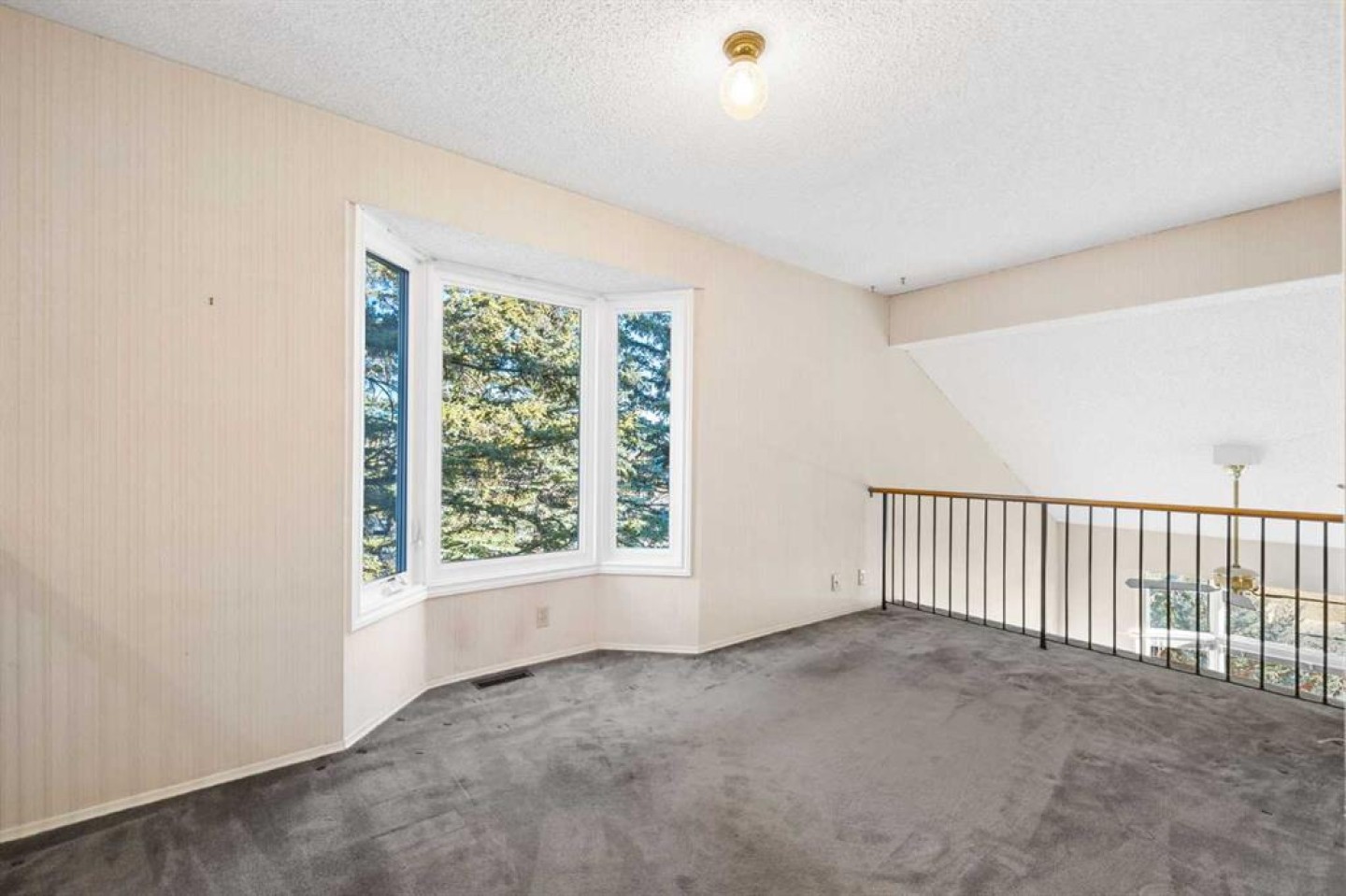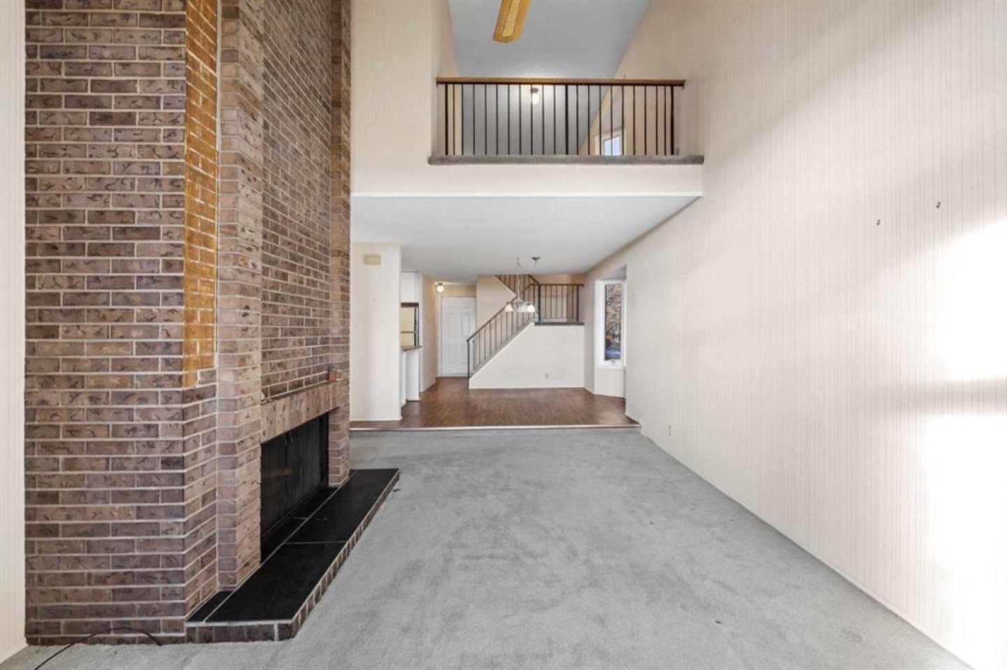 ***OFFERS MUST BE SUBMITTED BY 8am on Weds March 11*** DESIRABLE TIFFANY LANE! Steps to Fish Creek, Shopping, transit, and so much more! Welcome to one of the best locations in the complex. This immaculate end-unit home offers added privacy and beautiful park views from the living room. Step inside to a spacious main living area highlighted by soaring ceilings, a dramatic full-height brick fireplace (wood-burning), and a large bay window that fills the room with natural light while framing the green space beyond. The unique split-level layout creates an open, airy feel while still providing comfortable spaces for everyday living. Just a few steps up, the dining area connects seamlessly to the bright kitchen, featuring crisp white cabinetry, generous counter space, and a functional layout that makes cooking and entertaining easy. A sunshine ceiling adds additional natural light to the space. Upstairs, the home offers a generous primary bedroom with its own 3-piece ensuite, along with a second bedroom and full bathroom. Overlooking the living room below is a versatile upper family room that works perfectly as a home office, reading space, or TV area. The fully finished lower level adds valuable additional living space with a large recreation room, an extra bedroom, laundry area, and storage, offering flexibility for guests, teenagers, or extended family. The complex is well located with ample visitor parking, close to Bus Rapid Transit to downtown, Costco at Buffalo Run, schools, parks, playgrounds, and the pathways of Fish Creek Park. Commuting is easy with quick access to Anderson Road, the Ring Road and other major routes.