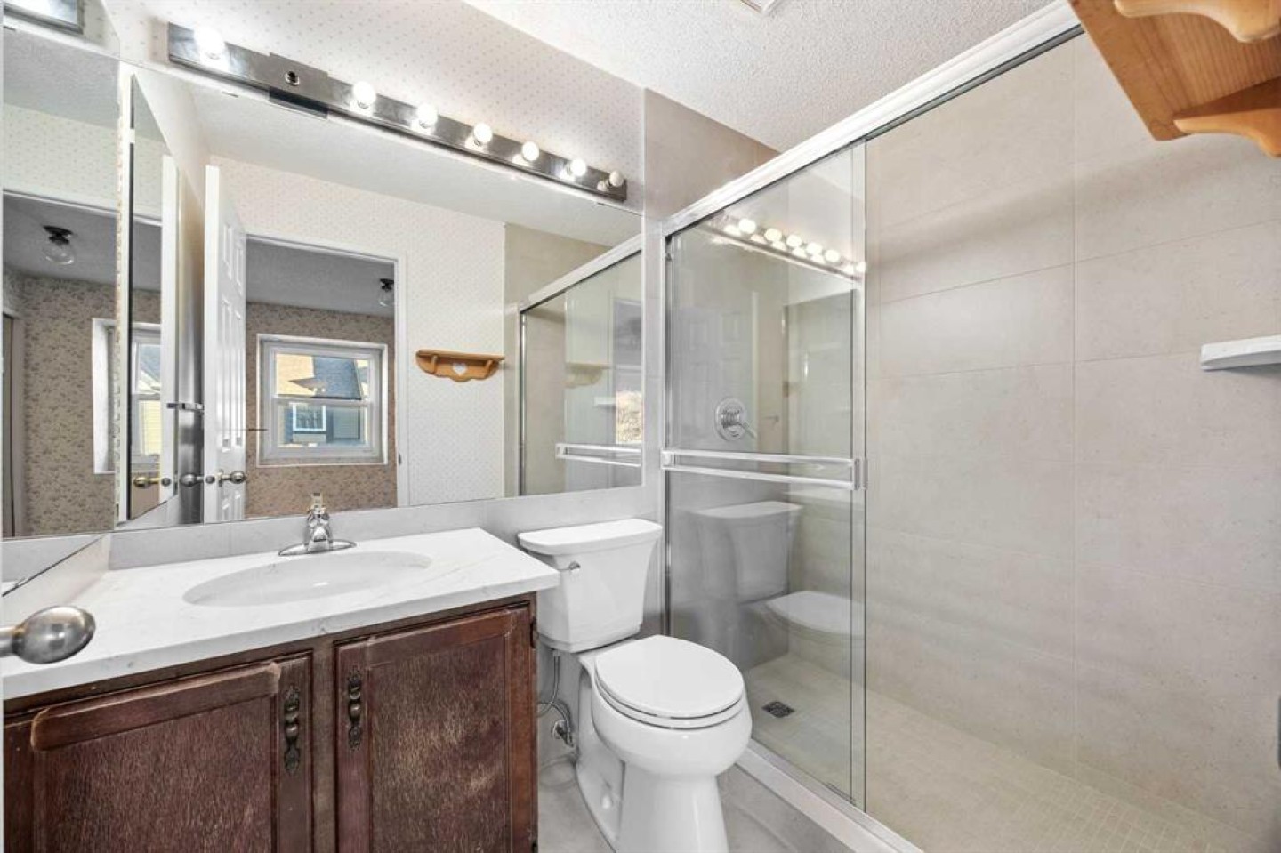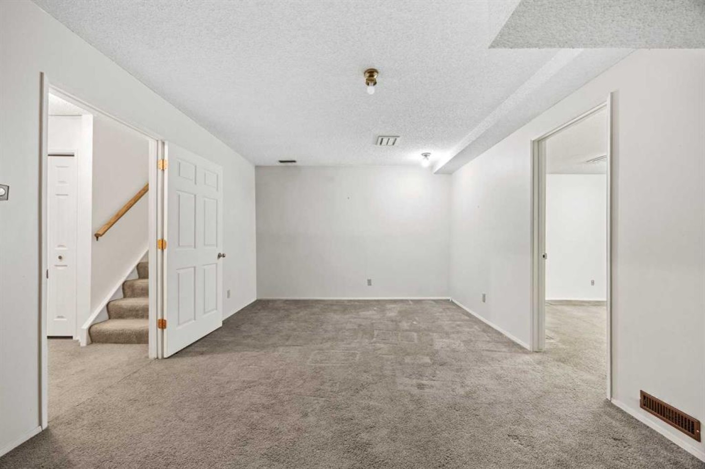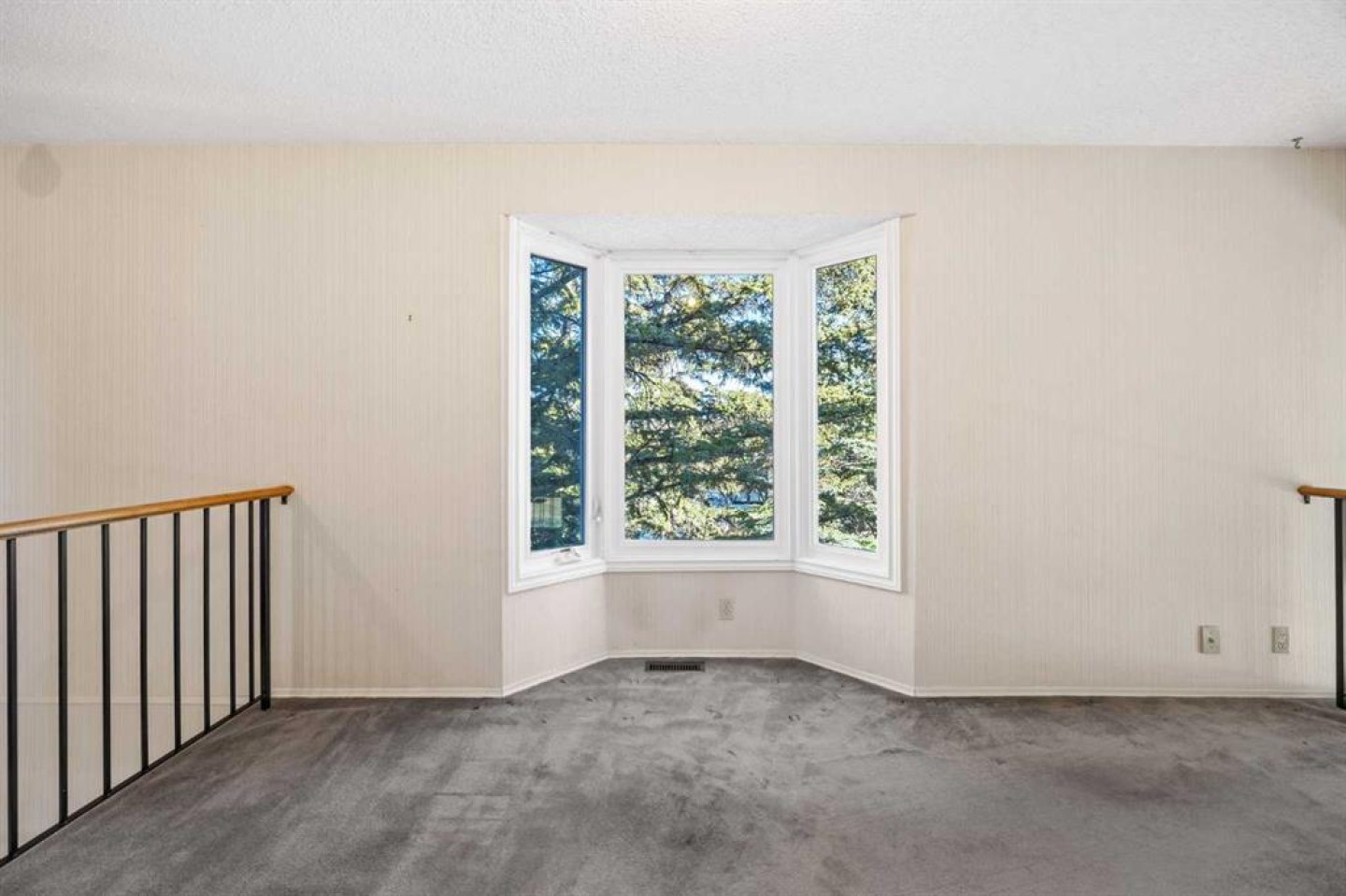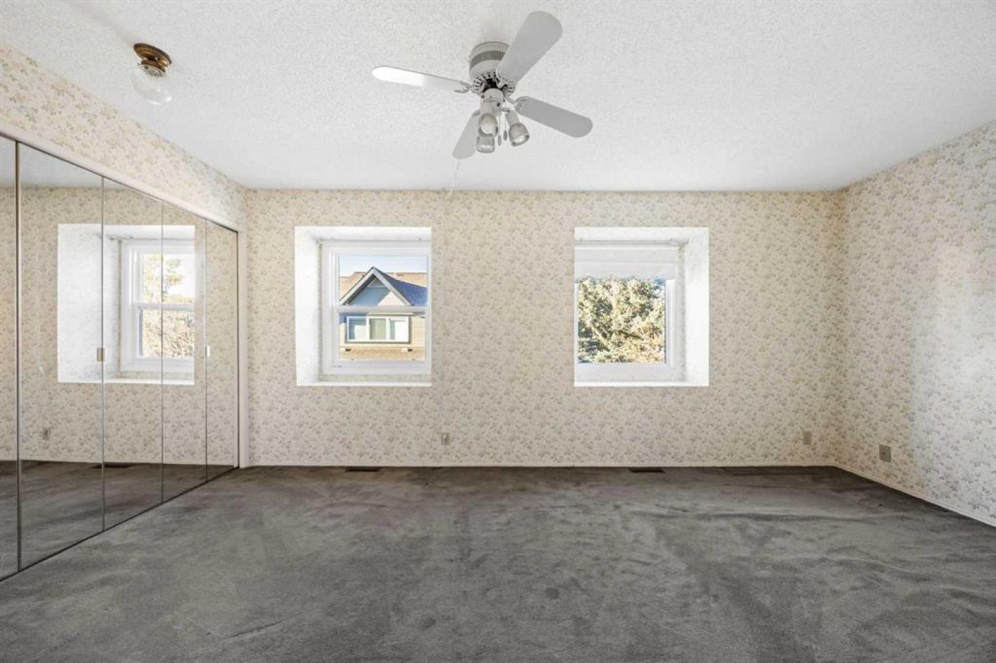 ***OFFERS MUST BE SUBMITTED BY 8am on Weds March 11*** DESIRABLE TIFFANY LANE! Steps to Fish Creek, Shopping, transit, and so much more! Welcome to one of the best locations in the complex. This immaculate end-unit home offers added privacy and beautiful park views from the living room. Step inside to a spacious main living area highlighted by soaring ceilings, a dramatic full-height brick fireplace (wood-burning), and a large bay window that fills the room with natural light while framing the green space beyond. The unique split-level layout creates an open, airy feel while still providing comfortable spaces for everyday living. Just a few steps up, the dining area connects seamlessly to the bright kitchen, featuring crisp white cabinetry, generous counter space, and a functional layout that makes cooking and entertaining easy. A sunshine ceiling adds additional natural light to the space. Upstairs, the home offers a generous primary bedroom with its own 3-piece ensuite, along with a second bedroom and full bathroom. Overlooking the living room below is a versatile upper family room that works perfectly as a home office, reading space, or TV area. The fully finished lower level adds valuable additional living space with a large recreation room, an extra bedroom, laundry area, and storage, offering flexibility for guests, teenagers, or extended family. The complex is well located with ample visitor parking, close to Bus Rapid Transit to downtown, Costco at Buffalo Run, schools, parks, playgrounds, and the pathways of Fish Creek Park. Commuting is easy with quick access to Anderson Road, the Ring Road and other major routes.