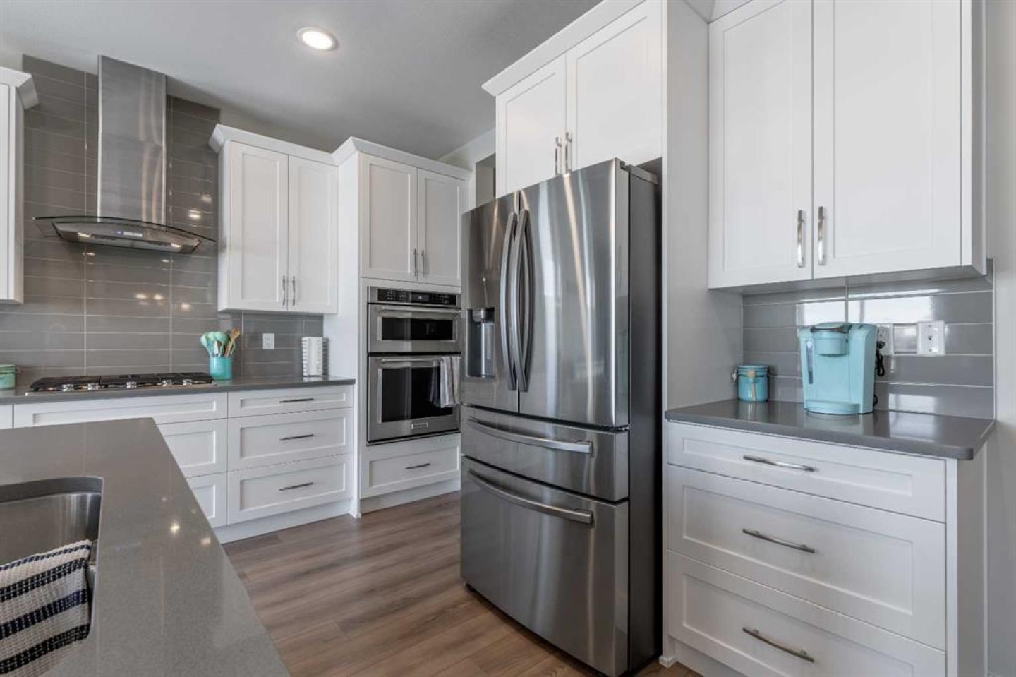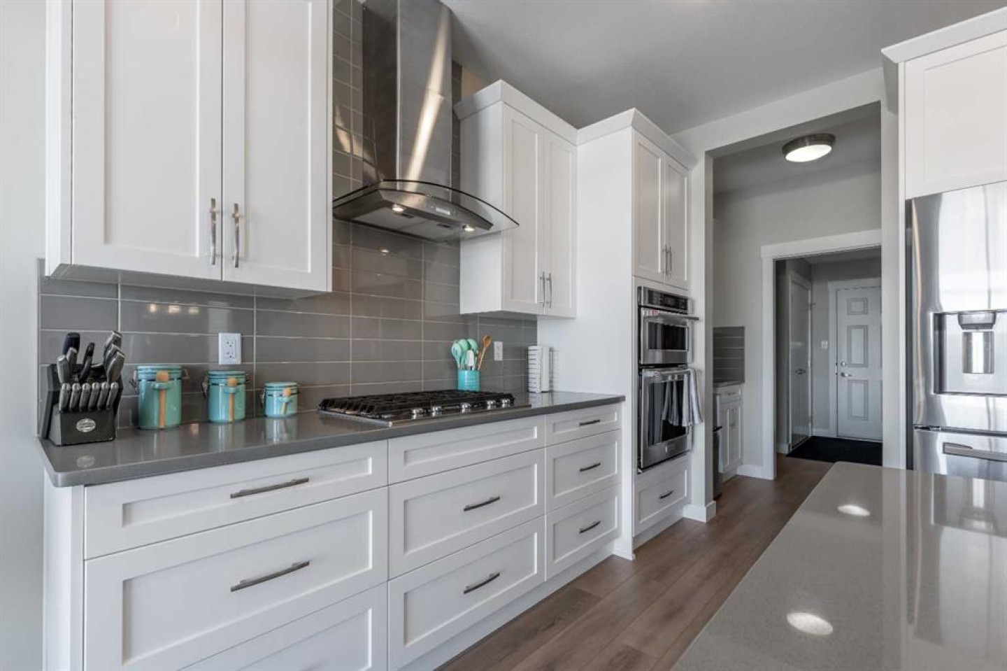 Fridge, gas cooktop, oven, hood fan, microwave, window coverings, garage heater, garage door opener +remote, washer, dryer, hot tub, central air conditioner, humidifier, bar fridge, H2O on demand,