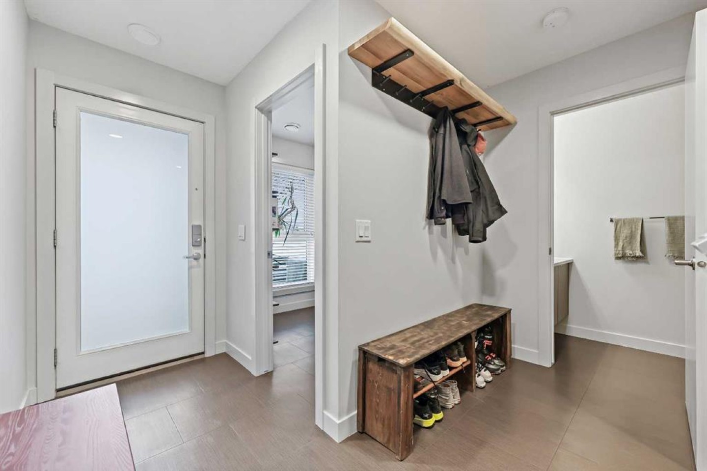 Thoughtfully designed and beautifully finished, this stylish Bowness townhome offers modern living with a functional layout and two spacious upper level primary suites. Enter through the attached garage to a welcoming main level that features a spacious foyer with ample closet space, a convenient powder room, and a versatile flex area—ideal for a home office, workout space or optional third bedroom. The main living area is on the second floor and highlights wide-plank flooring, oversized windows, and an open-concept design. A sleek and practical kitchen features quartz countertops, stainless steel appliances, and an oversized island with seating. Just off the kitchen, a west-facing covered balcony with a gas line offers the perfect spot to barbecue and unwind at the end of the day. The dining and living areas connect seamlessly creating a comfortable space for both everyday living and entertaining. Continue up to the third level and discover two large primary bedrooms, each with ample closet space and ensuites. A conveniently located laundry area and additional storage complete this level. There is central A/C for year-round comfort. Located in the heart of Bowness, you’re just minutes from the Bow River pathways, local cafés, and everyday community amenities. The Calgary Farmers’ Market West and Trinity Hills shopping area are a short drive away, and quick access to Stoney Trail, Sarcee Trail, and 16th Avenue makes getting downtown or across the city easy. A fantastic opportunity to enjoy modern living in the heart of Bowness!