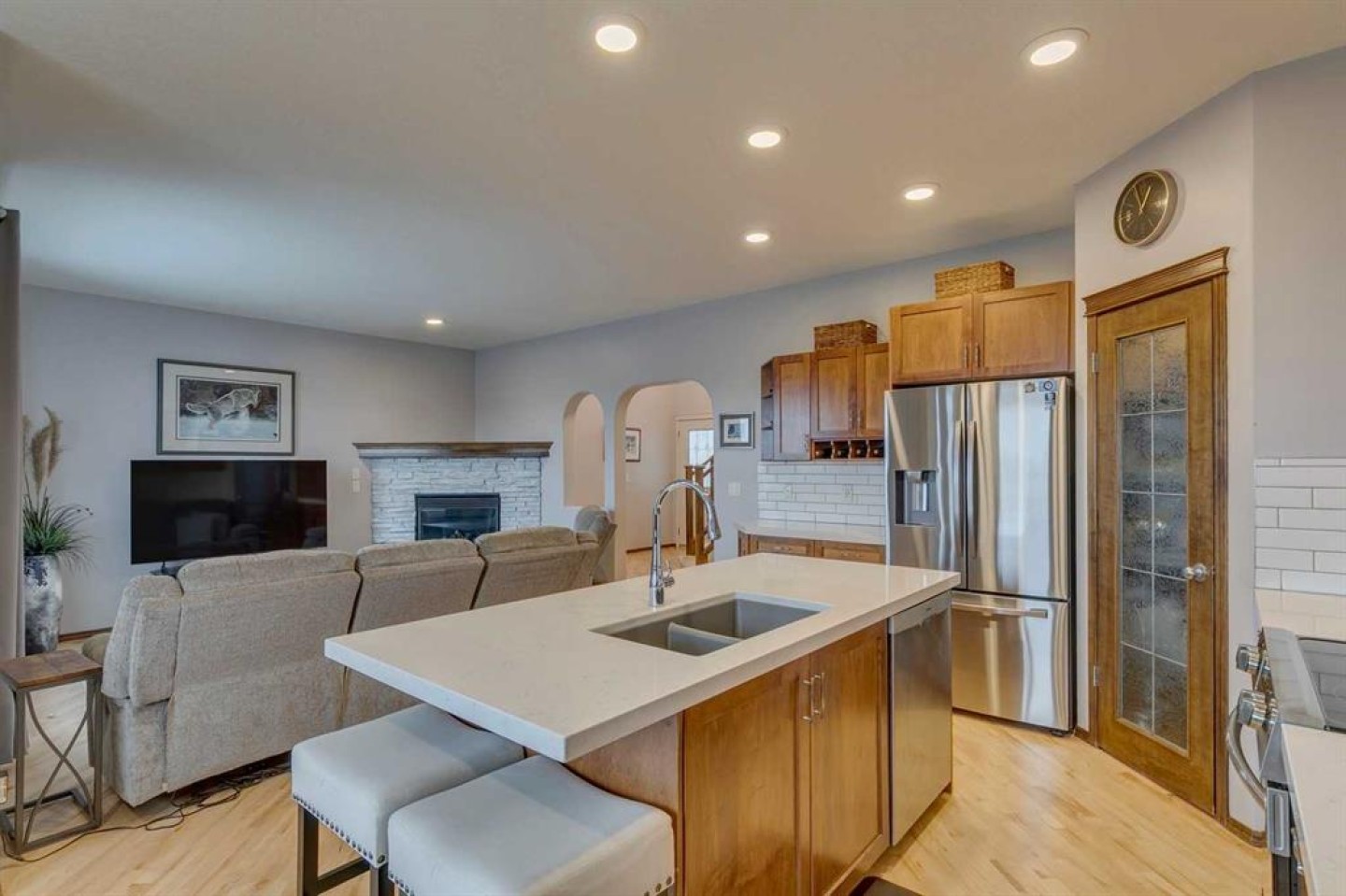 Welcome to this beautifully maintained two-storey home in the Cascades of Royal Oak, offering the perfect blend of comfort, convenience, and natural surroundings. Fully finished from top to bottom, this spacious residence features a walkout basement and enjoys the rare advantage of backing directly onto an environmental reserve, providing serene views and outstanding privacy. Inside, you’ll find a warm and inviting living space highlighted by refinished hardwood floors, 9' ceilings, and an updated kitchen complete with quartz countertops, a center island with breakfast bar, and a corner pantry—ideal for everyday living and entertaining. With 4 bedrooms, 3 full bathrooms, and approximately 2,428 sq ft of total living space, this home offers excellent flexibility for families, guests, or home office needs. The bright walkout basement features large windows, a comfortable recreation area, an additional bedroom, and plenty of natural light, making it a fantastic extension of your living space. Perfectly situated close to schools, shopping, restaurants, and the NW YMCA, this home provides exceptional walkability and day-to-day convenience. Outdoor enthusiasts will appreciate the easy access to Stoney Trail and the Rocky Mountains—ideal for weekend adventures. A rare opportunity to own a move-in ready home in a sought-after Royal Oak location with nature at your doorstep.