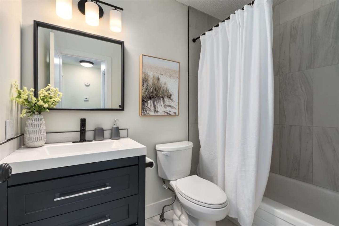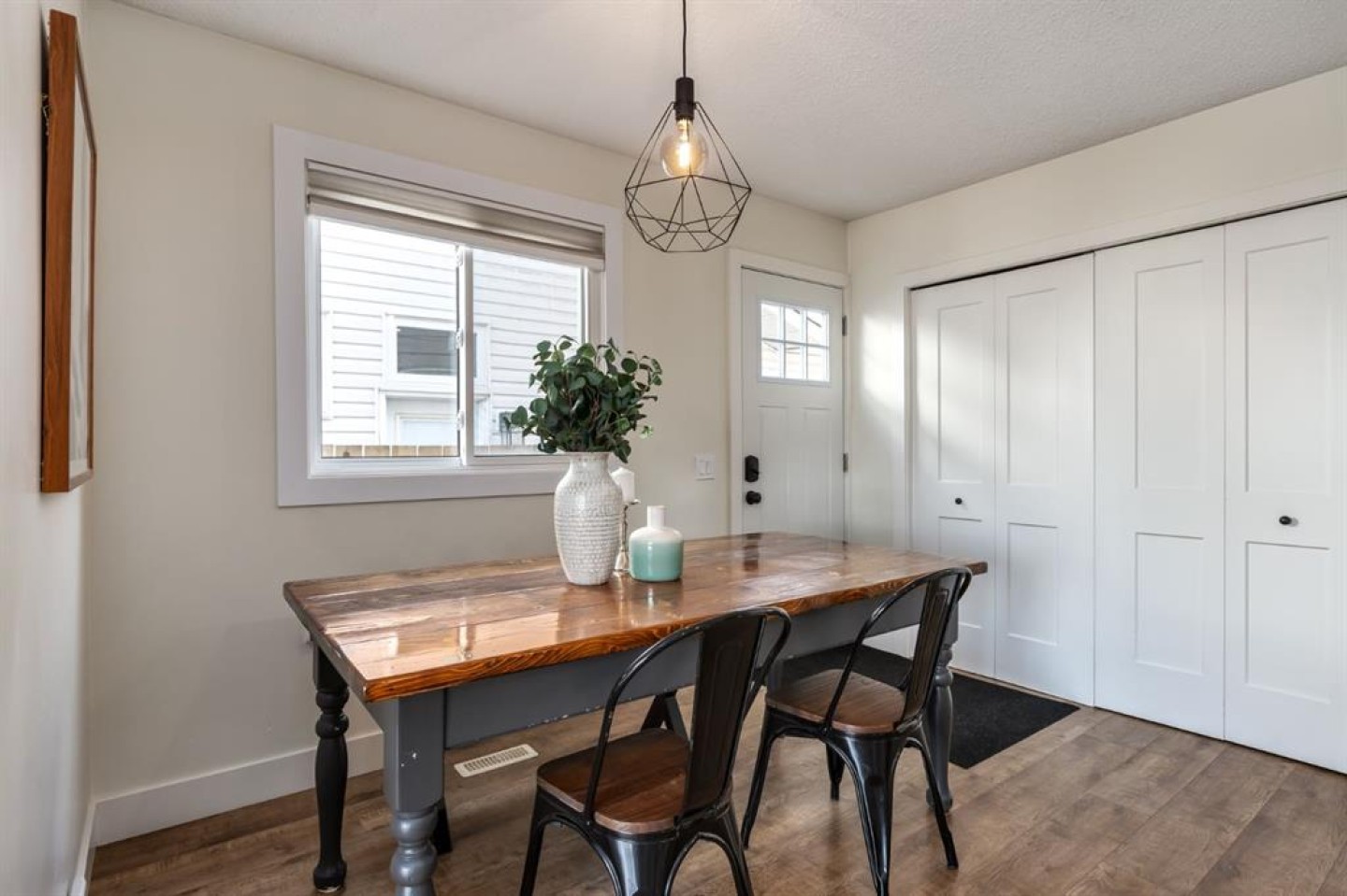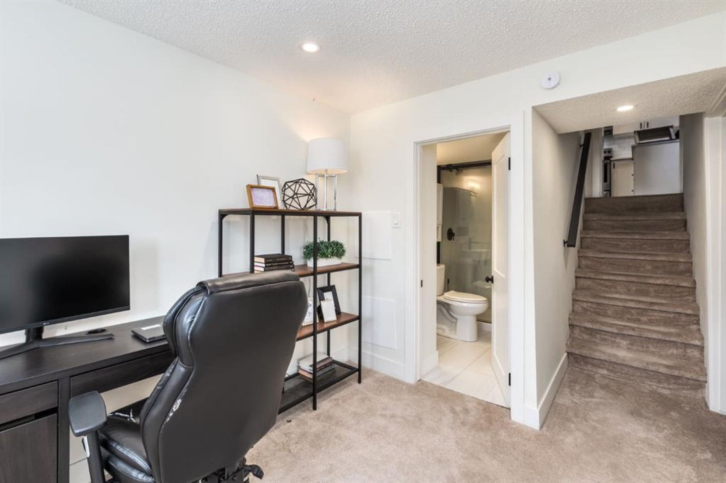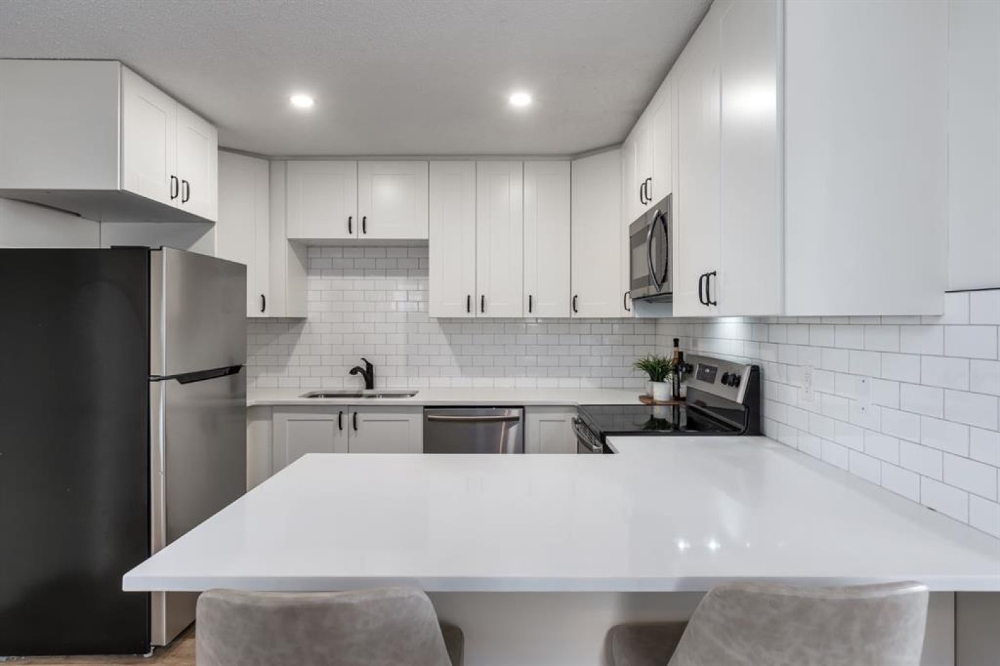 Welcome to this beautifully reimagined 3-bedroom + den, 2-bathroom home, perfectly positioned on one of the most sought-after streets in the community. Ideally located within walking distance to Almadina language Charter School and surrounded by parks and green space, this home offers an exceptional lifestyle for families. Enjoy the convenience of being just a short walk to grocery stores, everyday amenities, and easy access to the future LRT, making commuting effortless. Step inside to a spacious front entry that opens into a warm and inviting main living area, where a charming bay window floods the space with natural light throughout the day. The fully renovated kitchen is both timeless and functional, featuring crisp white cabinetry, quartz countertops with an eating bar, a classic subway tile backsplash, and stainless steel appliances. Durable laminate flooring runs throughout the main level, offering both style and practicality for busy households. Upstairs, the expansive primary retreat comfortably accommodates a king-sized bed and is complemented by an oversized walk-in closet with custom built-ins. A generous second bedroom provides the perfect setup for children or guests. The lower level adds incredible versatility, with a spacious rec room ideal for a media space, home office, or playroom, along with a third bedroom and additional den to suit your evolving needs. Both bathrooms have been beautifully finished with full tile surrounds and striking black fixtures, creating a modern, cohesive design throughout. With thoughtful updates from top to bottom, including a new washer and hot water tank (2024), this home is truly turnkey and ready for its next chapter. Welcome home!