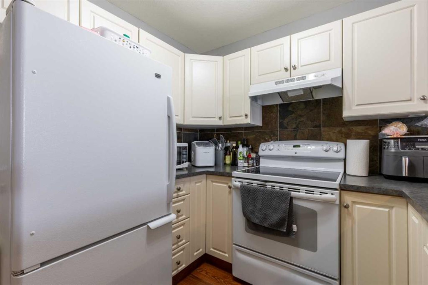 Fridge, stove, dishwasher, microwave, hood fan, washer, dryer, blinds, garage door opener + remote