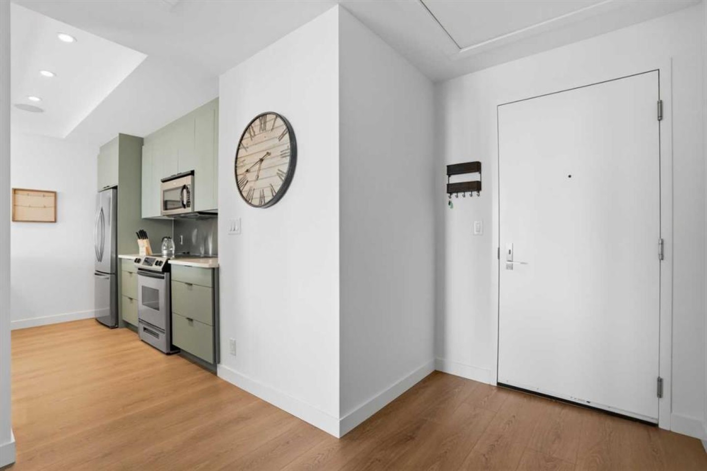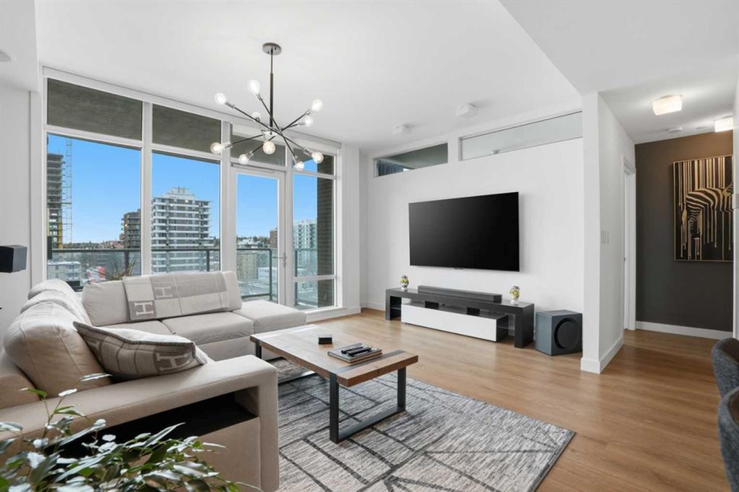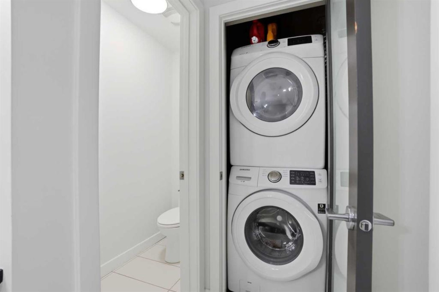 Experience elevated inner city living in The Castello, one of Calgary’s most sought after luxury buildings in the Beltline. This 918 sq ft one bedroom residence has been fully and extensively renovated, creating a truly one of a kind unit that cannot be duplicated anywhere else in the building. Unlike other units in Castello, this home has been completely updated with brand new luxury vinyl plank flooring, entirely new custom kitchen cabinetry, fresh designer paint throughout, and brand new modern contemporary fixtures that transform the space into a sleek and sophisticated urban retreat. The thoughtful renovation elevates both the style and functionality of the home, making it feel brand new and entirely unique compared to other units in the building. The bright open concept layout features 9 foot ceilings and dramatic floor to ceiling windows, allowing natural light to pour into the living space while showcasing unobstructed south facing views. The beautifully updated kitchen is designed for both everyday living and entertaining, offering quartz countertops, stainless steel appliances, full height cabinetry, a wine cooler, garburator, and generous preparation space. The spacious primary bedroom easily accommodates a king sized bed with nightstands and a large television, while the walk through closet leads to an impressive 5 piece spa inspired ensuite. The ensuite is one of the largest in the building and features dual sinks, a deep soaker tub, and a luxurious steam shower, creating a true at home retreat. For added convenience, the front loading washer and dryer are discreetly located within the ensuite. A separate guest bathroom provides additional comfort and privacy for visitors. Additional features include central air conditioning, a built in humidifier, in suite speakers with individual room controls, and a gas BBQ line on the balcony. The unit also includes titled underground secure parking and a titled storage locker. Residents of The Castello enjoy premium amenities including a fully equipped fitness centre, guest suite, car wash, and a social lounge. Perfectly located in the heart of the Beltline, you are steps from Calgary’s best restaurants, cafes, shopping, and downtown amenities. This is a rare opportunity to own a fully renovated, truly one of a kind residence in one of Calgary’s premier condo buildings.