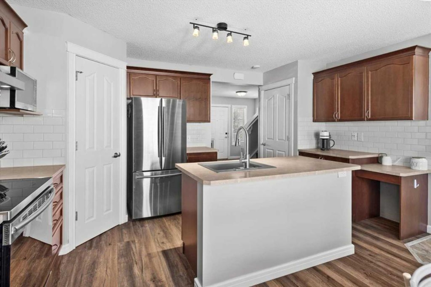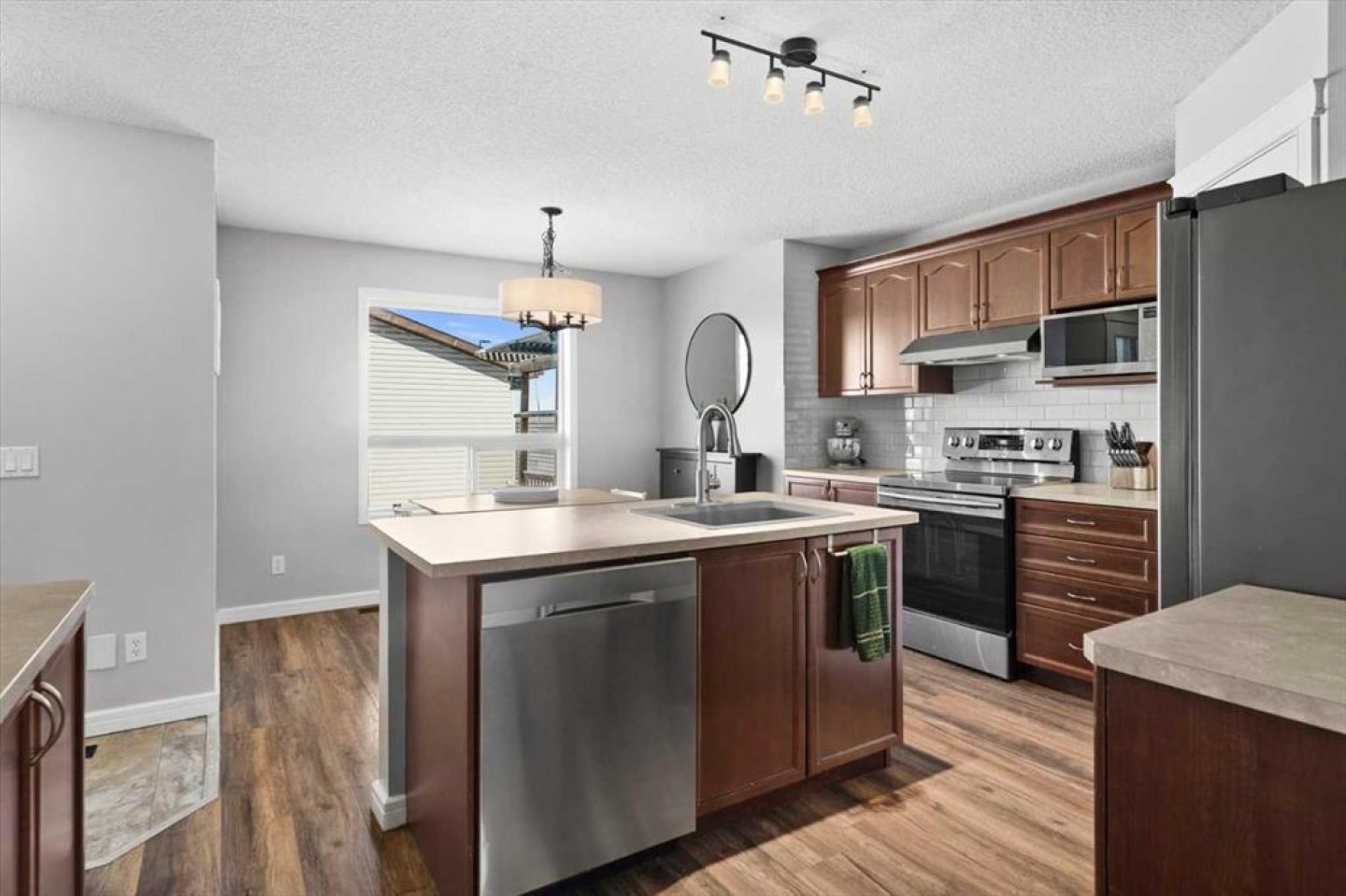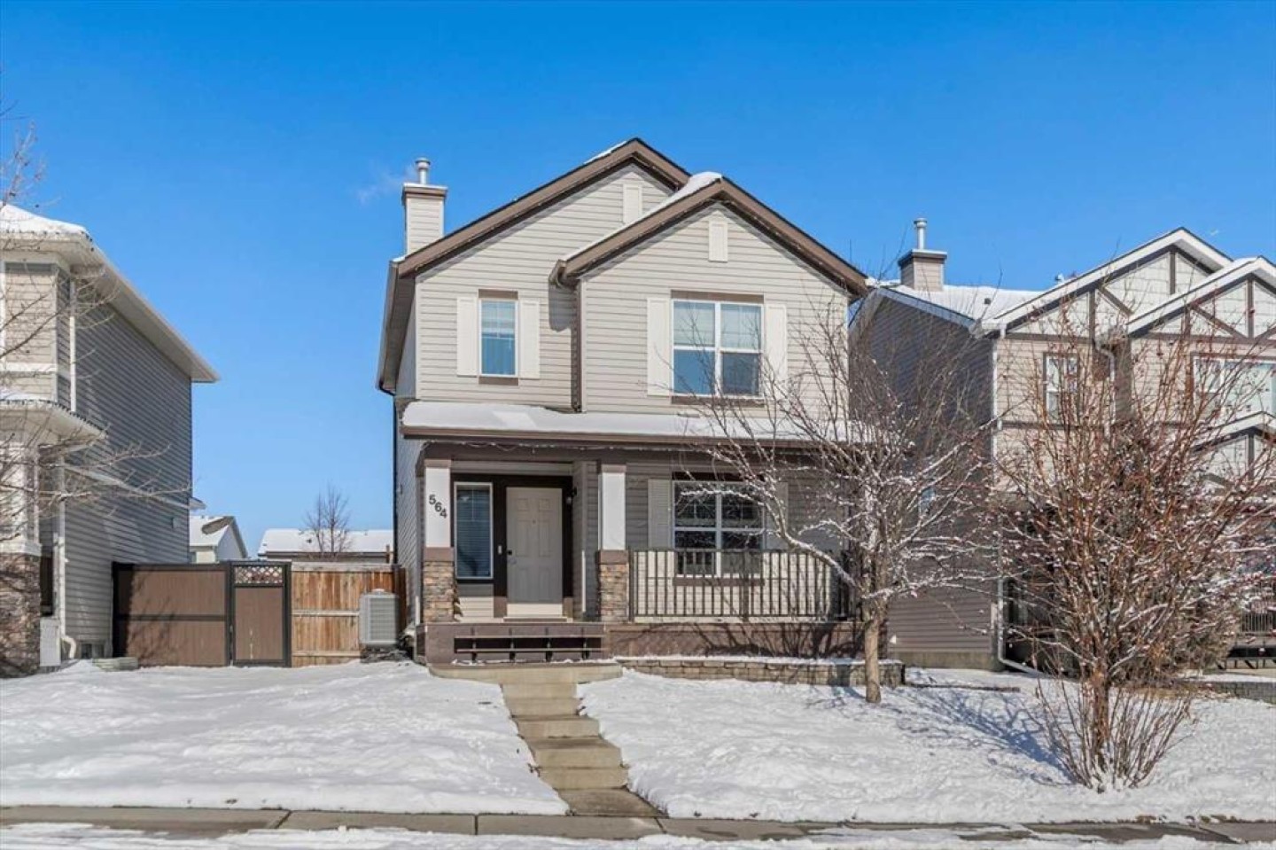 Welcome to this immaculate Shane Homes built three-bedroom two storey, nestled on a quiet, tree-lined street in the heart of Morningside, one of Airdrie's most beloved and well-established communities. From the very moment you pull up, the pride of ownership is unmistakable, and the lifestyle this home offers is one that growing families and first-time buyers dream about finding. A generously sized foyer sets a warm and inviting tone as you step inside, flowing into a bright and sun-filled living room anchored by a stunning corner gas fireplace with an elegant tile surround. Whether you are curling up on a cold winter evening or hosting friends for a relaxed weekend gathering, this is a space that wraps around you and instantly feels like home. The kitchen is truly where this home comes alive. Thoughtfully designed for everyday family living and effortless entertaining, it showcases a central island, a charming built-in recipe and coffee station, a generous corner pantry, and an impressive abundance of cupboard and counter space that will delight any home cook. The spacious dining area flows seamlessly from the kitchen, creating the open and connected feel that families love. Step through to your private backyard and onto the large deck, complete with a built-in bench, perfect for summer barbecues, morning coffees, and long warm evenings with the people who matter most. Upstairs, the primary retreat is a true sanctuary, featuring a walk-in closet with custom built-in shelving, a TV hookup for relaxing evenings in, and a full ensuite. The second bedroom also benefits from its own built-in closet shelving, offering smart and well-organised storage from day one. A third bedroom, a full bathroom, and a generous linen closet round out the upper level with thoughtful practicality that families truly appreciate. The lower level is partially developed with a bedroom used as a home office, a private laundry area, and framing and electrical already underway, giving you a solid head start to finish it your way. The home is hardwired throughout for internet, a feature remote workers, students, and connected families will love, ensuring fast and reliable connectivity in every room without relying on WiFi alone. Stay comfortable year-round with central air conditioning, making those warm Airdrie summers a genuine pleasure. For anyone who loves their vehicles or craves serious workshop space, the heated double car garage is a true showstopper, boasting soaring 12-foot ceilings, impressive 8-foot garage doors, and 220V wiring, a mechanics dream and perfect setup for any car enthusiast or hobbyist. Morningside delivers scenic pathways, parks, excellent schools, and everyday shopping within easy reach, with quick access to Highway 2 making commutes to Calgary effortless. Whether you are a young family planting roots, a first-time buyer stepping into ownership, or a car enthusiast in search of the perfect garage, this is the home you have been waiting for. Welcome home.
