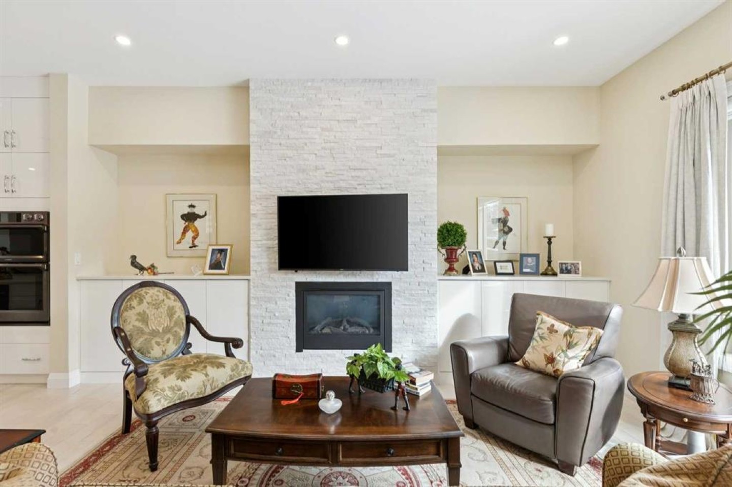 Built-In Gas Range, Built-In Oven, Dishwasher, Dryer, Garage Control(s), Microwave, Range Hood, Refrigerator, Washer, Window Coverings, Wine Refrigerator