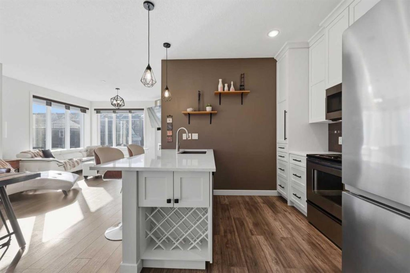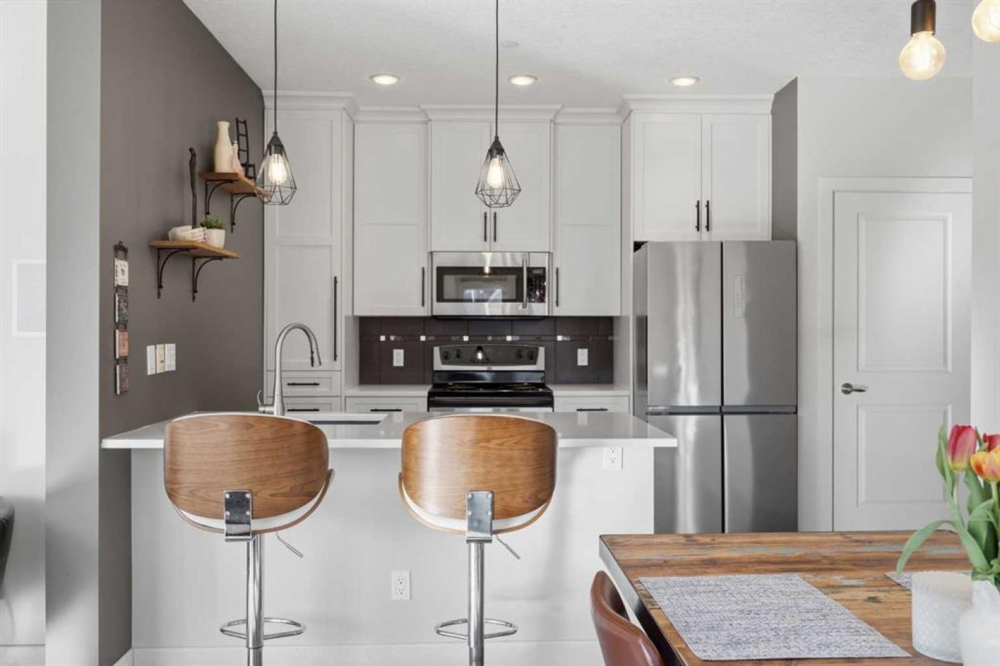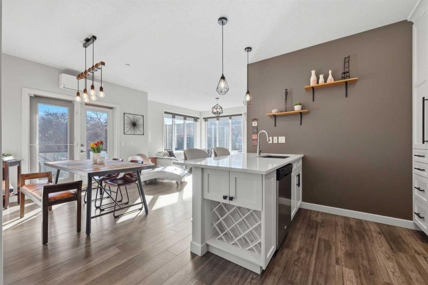 Welcome to #206, 910 18 Avenue SW. This stunning 2-bedroom, 2-bathroom corner unit is perfectly located just steps from the vibrant energy of 17th Avenue. With south-facing picture windows, this beautifully renovated condo is flooded with natural light, creating a warm and inviting atmosphere. Thoughtfully renovated just a few years ago, the home showcases modern, high-quality finishes throughout. The kitchen is a true highlight, featuring sleek quartz countertops, stainless steel appliances, and barstool seating, which creates the perfect space for casual dining, morning coffee, or entertaining guests. The open-concept design flows seamlessly into the dining and living areas, allowing the natural light from the large south-facing windows to fill the entire space. The dining area provides access to your private balcony, ideal for enjoying sunny afternoons or unwinding in the evening. Cozy up next to the fire in your spacious family room that features built-in speakers. Both bathrooms were refreshed during the renovation, offering a clean, contemporary feel that complements the home’s updated aesthetic. The primary bedroom provides a comfortable retreat, complete with a well-appointed ensuite, while the second bedroom and full bath offer flexibility for guests, a home office, or additional living space. Comfort is a priority with air conditioning throughout, ensuring the space remains cool and comfortable during Calgary’s warmer months. Perfect for professionals, downsizers, or investors, this property offers the ultimate lock-and-go lifestyle. Located just a few steps from some of Calgary’s best restaurants, cafés, boutiques, and downtown amenities along 17th Avenue, you’ll enjoy the ideal balance of urban vibrancy and stylish inner-city living. This is a rare opportunity to own a bright, renovated corner unit with titled underground parking in one of Calgary’s most desirable locations.