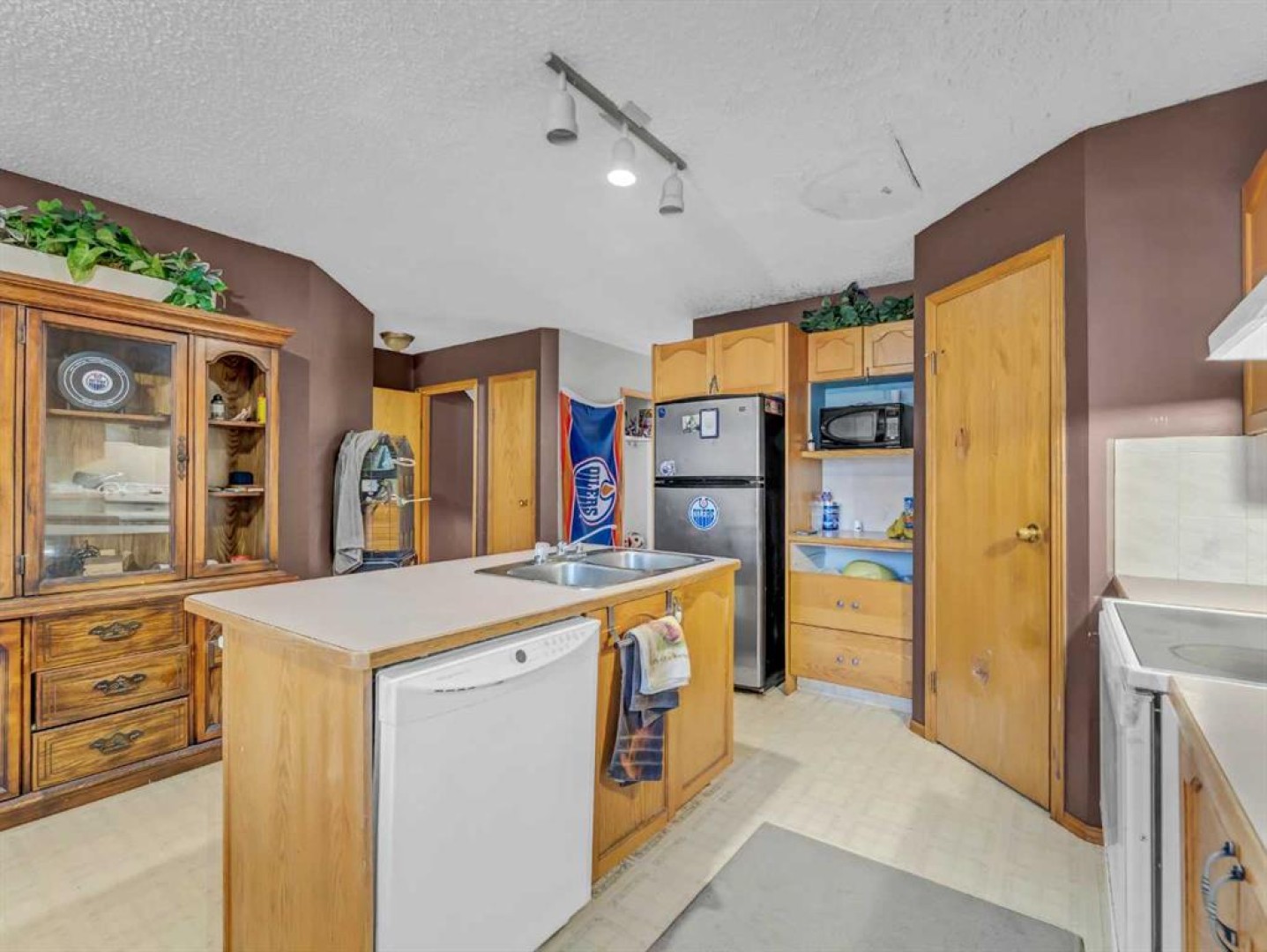 Welcome to this fully developed townhouse condo offering space, functionality, and excellent potential. With 4 bedrooms and 3 bathrooms, this home provides plenty of room for a growing family, first-time buyers, or anyone looking for the convenience of condo living with low exterior maintenance. The main floor is open and spacious, featuring a kitchen complete with a walk-in pantry, kitchen island, and generous dining area—perfect for everyday living or entertaining. This level also includes a 2-piece bathroom, convenient main floor laundry, and a large living room highlighted by vaulted ceilings and a cozy gas fireplace. Upstairs you’ll find three bedrooms, including the primary suite which features a walk-in closet, a skylight, and a 4-piece bath. The fully developed basement adds even more living space with a large fourth bedroom with walk-in closet, a family room, 3-piece bathroom, den, and utility room—offering flexibility for guests, hobbies, or a home office. Parking is easy with an attached single garage plus an additional parking stall, providing room for two vehicles. This property does require some updates and is priced accordingly, making it a fantastic opportunity for buyers willing to add a little TLC and unlock the full potential of this spacious home. Pets allowed with restrictions, take a 24 hour virtual tour and explore this property immediately.
