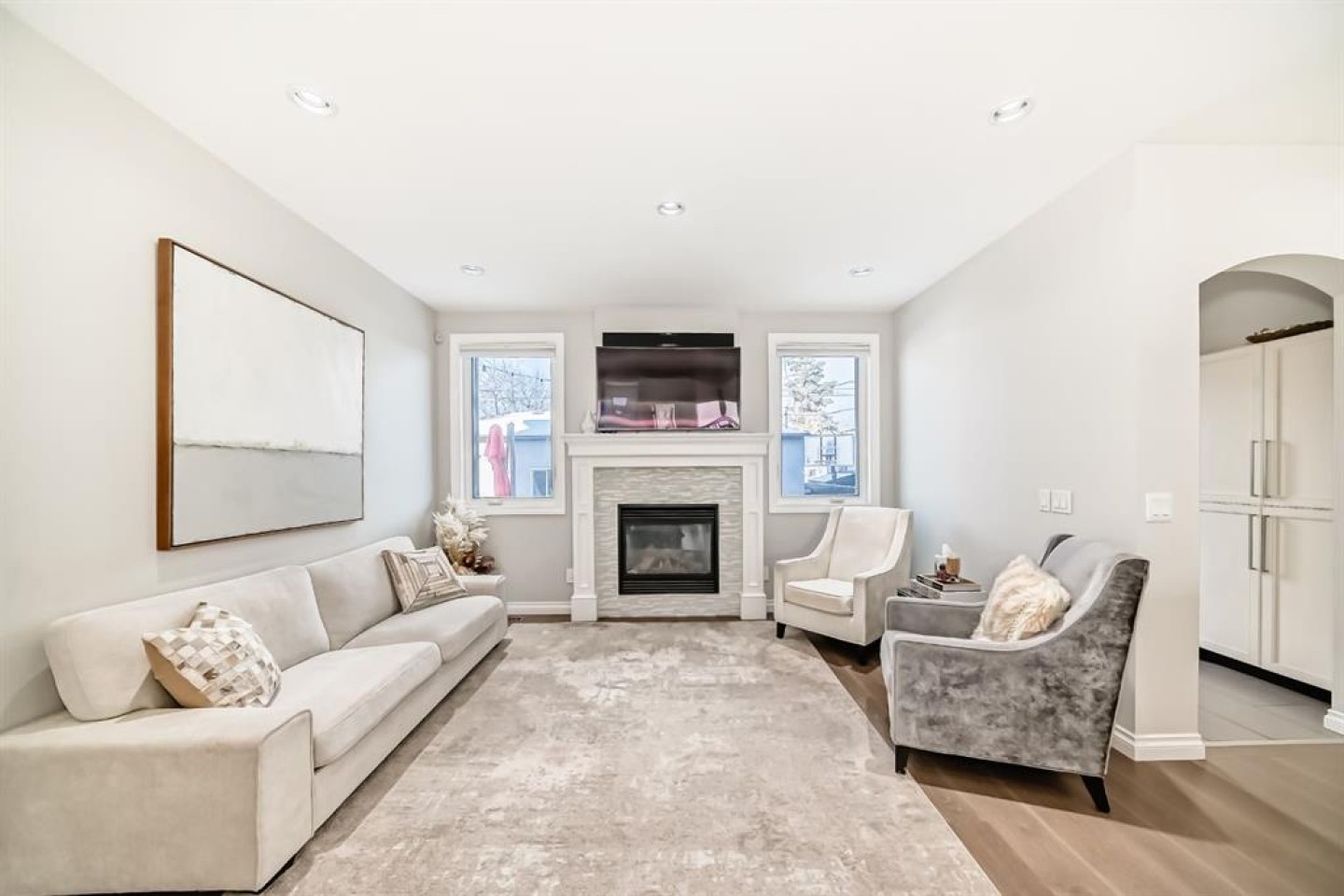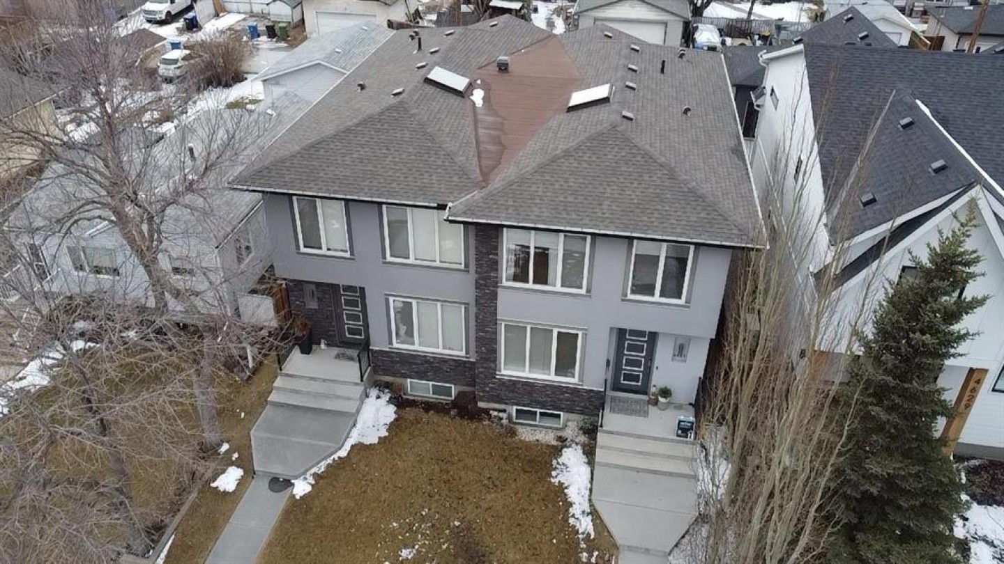 Stunning 2014 custom-built semi-detached home in the heart of trendy Bowness. A short stroll to Bowness Park, Bow River pathways, shops, restaurants, and cafés, with quick access to COP, downtown and the mountains, this home combines modern luxury with a vibrant community lifestyle. This home has a bright open floor plan with 4 bedrooms, 3.5 baths, office, fully developed basement and double garage. Boasting 2,828.9 sq ft of total developed living space, including 1,999.6 sq ft above grade, the main floor features 9’ ceilings, engineered hardwood, a chef’s kitchen with granite counters, large island with breakfast bar, pantry, and premium stainless steel appliances including a Café 5-burner gas cooktop and ThinQ refrigerator with glass beverage door, plus a spacious dining area and large living room with gas fireplace. A mudroom with built-in bench and cabinets opens to the fenced backyard with lawn area and a concrete patio with pergola, this home is enhanced by oversized custom front and back doors with windows for additional sunlight. Upstairs, the primary suite includes a walk-in closet and a luxurious, spa-inspired 5-piece ensuite with jet soak tub, toilet room, double vanity, and separate shower, upper level also has two additional bedrooms, a computer nook, a 4-piece bathroom, and upper-floor laundry room. The basement offers 9’ ceilings, a large bedroom with walk-in closet, full bathroom, huge family room with gas fireplace and a wet bar for entertaining as well as plenty of storage. Additional features include: Central A/C, vacuum system and attachments, custom blinds, enlarged laundry room with sink, upgraded lighting fixtures throughout, Hue smart lighting in kitchen, bedrooms, and hallways, along with a double detached garage with shelving. A rare opportunity in a vibrant, walkable community.