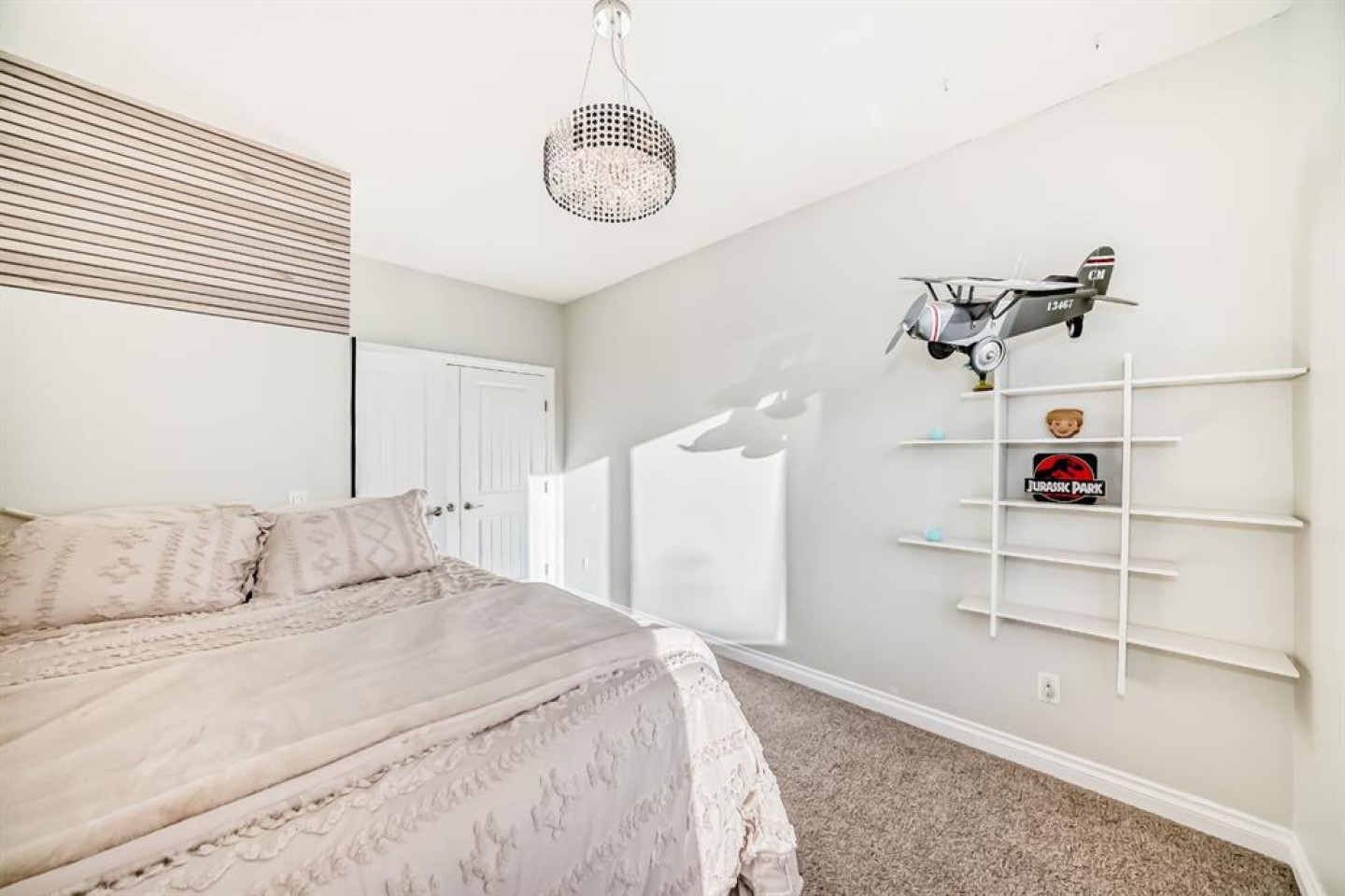 TV and mount in basement bedroom, built in cabinets in basement bedroom