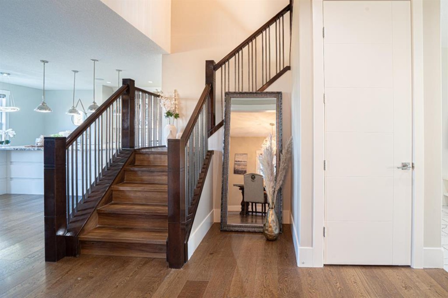 OVER 8000 SQFT LOT SIZE 2-BEDROOM WALKOUT LEGAL BASEMENT SUITE + ADDITIONAL ROOM & FULL BATH | 7 BEDROOMS + DEN | 6.5 BATHS | TRIPLE CAR GARAGE | Welcome to this beautifully crafted 2017 executive home in the sought-after community of Kinniburgh, backing onto open green space. With over 3000 sq ft above grade and a fully finished walkout basement, this property offers exceptional space, flexibility, and quality throughout. The main floor showcases a bright, open layout with a spacious living room, breakfast nook, and a chef-inspired kitchen featuring a large island, quartz counters, and high-end finishes. A formal dining area, main-floor den/office, mudroom, and a convenient 2-piece bath complete this level. Upstairs you’ll find four generous bedrooms, including a primary suite with tray ceilings, a walk-in closet, and a luxurious 7-piece ensuite. The upper level also offers two additional full bathrooms, a vaulted-ceiling bonus room, and a separate laundry room for everyday convenience. The walkout basement features a fully developed 2-bedroom legal suite with its own kitchen, living area, full bath, and laundry—perfect for extended family or additional rental income. A second basement area adds an extra room and full bathroom, providing even more living options. Enjoy a massive pie-shaped lot with a fenced yard, rear deck, and beautiful open-field views. The oversized triple-car garage provides ample parking and storage. Located steps from the K–9 school, Chestermere Health Centre, and local shopping and dining, this home combines luxury, functionality, and income potential in one of Chestermere’s premier cul-de-sac locations.