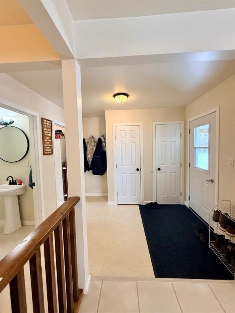 Escape to the peace and privacy of country living with this beautiful 22.41 acre property in Blumenort, surrounded by mature natural bush for excellent seclusion. The property features a comfortable home with a detached heated garage, welcoming you through a spacious main entrance into a warm and inviting interior. The main floor offers an open kitchen and dining area with a corner pantry and plenty of natural light streaming in from the patio door, which leads out to the covered front deck, while the a back deck is off the rear —perfect for enjoying the quiet surroundings. A cozy living room sits off the front corner, while the main floor also includes a large primary bedroom next to a spacious full bathroom, an additional bedroom, plus a separate half bath and convenient laundry room. Downstairs, the basement provides three more bedrooms, a full bathroom, and a cozy wood stove, along with a dedicated wood room and cold storage area. Outside, the yard is well set up with several storage sheds and shelters, a 24' x 32' heated garage, plenty of parking space, a dugout, garden plot, fenced pasture, and endless room to enjoy country life. With excellent privacy and the possibility of subdividing another acreage in the future, this property offers both lifestyle and investment potential. Properties like this don’t come along often—come take a look!