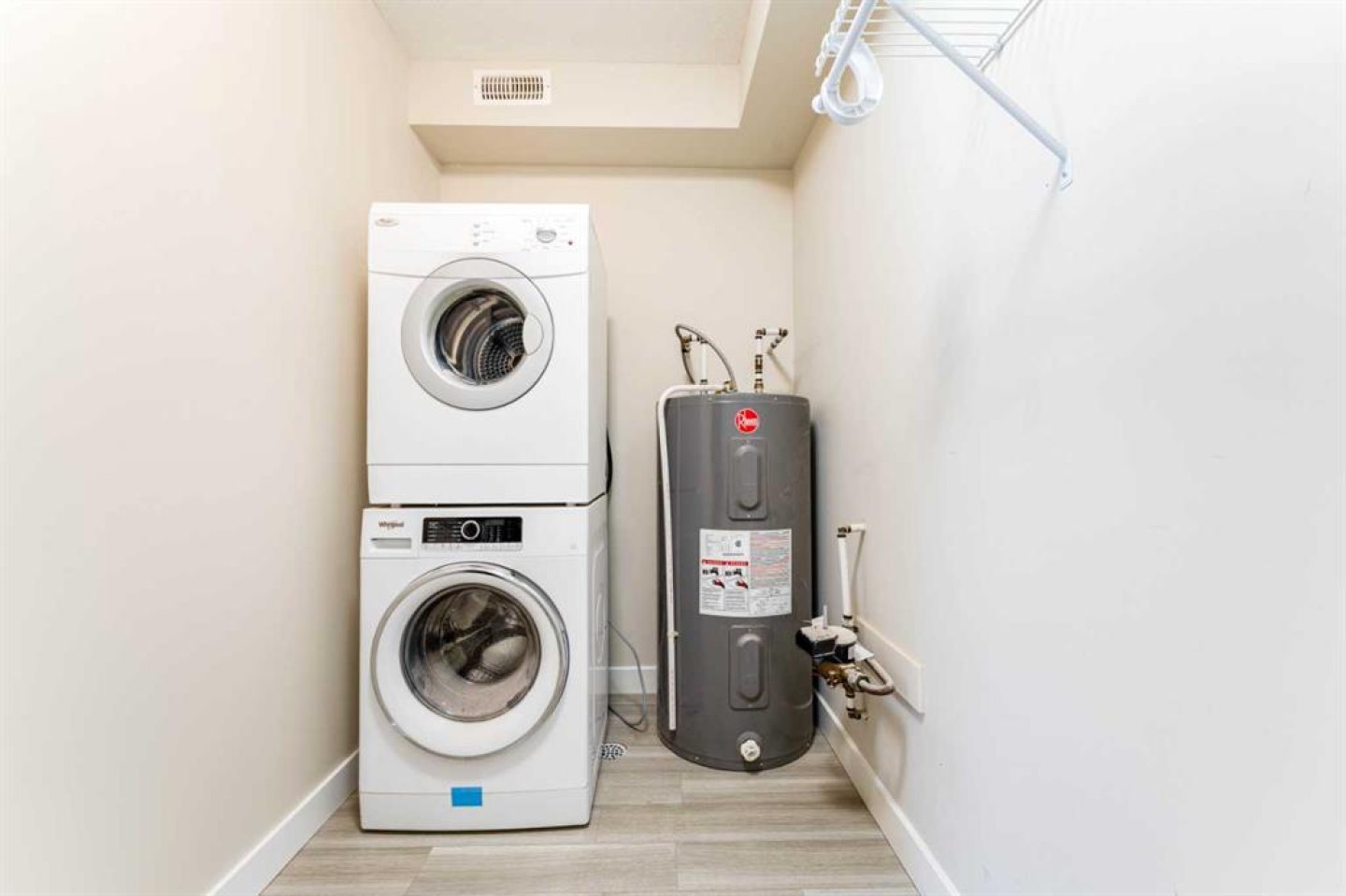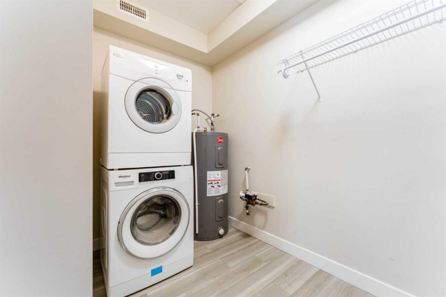 Dishwasher, Electric Stove, Microwave, Refrigerator, Washer/Dryer Stacked, Window Coverings