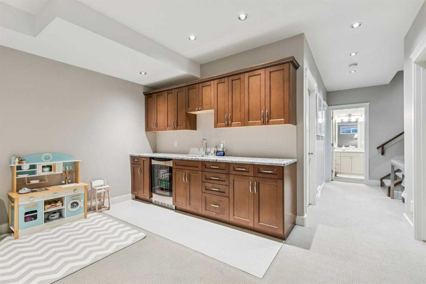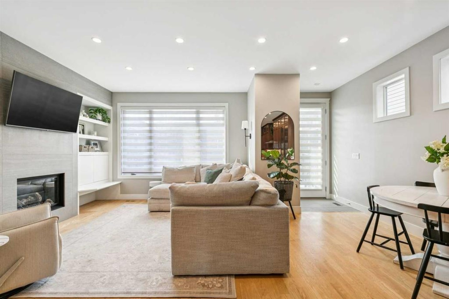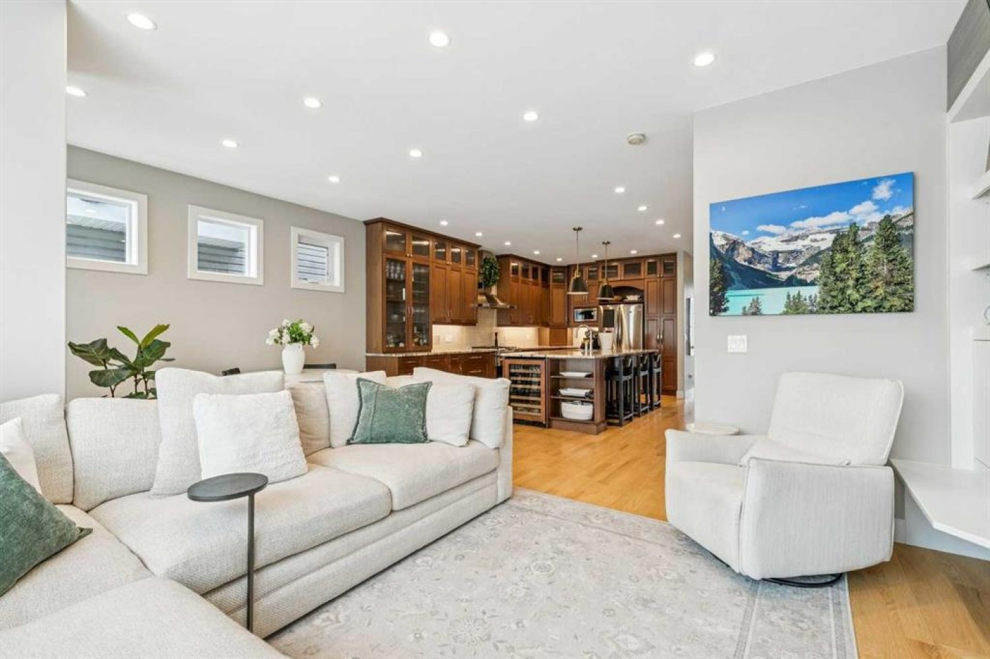 Welcome to this beautifully finished and fully developed two storey home offering a bright open layout, quality finishes, and comfortable living spaces designed for both everyday living and entertaining. 9-foot ceilings and gorgeous site finished oak hardwood floors carry you through the bright open plan main level, anchored by an expansive chef inspired kitchen with ample granite counter space including a breakfast counter for casual dining, along with stainless steel appliances that include a beverage fridge and gas range. The adjoining dining space keeps you connected to the main living area, while the living room features built ins, a cozy gas fireplace, and large windows overlooking the backyard. At the front of the home is a versatile flex room that works perfectly as a home office, playroom, or formal dining space. A convenient two-piece bathroom completes the main level. Upstairs you will find three spacious bedrooms including a large vaulted primary retreat with a walk-in closet and spa like five-piece ensuite featuring dual sinks with marble counters, a deep soaker tub, and a large custom tiled steam shower. The two additional bedrooms are both generously sized and there is also a convenient upper-level laundry room. The fully finished lower level offers a fourth bedroom, full bathroom, and a large family room with a wet bar and plenty of space for a home theatre, workout equipment, play area, and more. You will love the sunny west facing backyard with a patio that is perfect for relaxing or entertaining. Additional features include central air conditioning, recent upgrades such as new roof shingles and eavestroughs in 2025 and a new furnace and hot water tank in 2023, along with a drywalled double garage to complete the package. Conveniently located close to schools, parks, transit, and shopping. Call your favorite Realtor to arrange your private viewing!