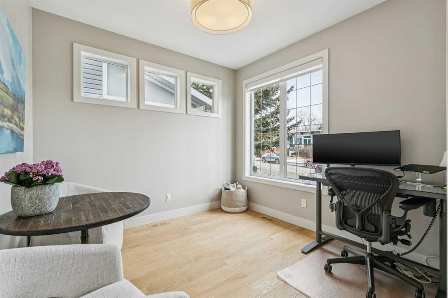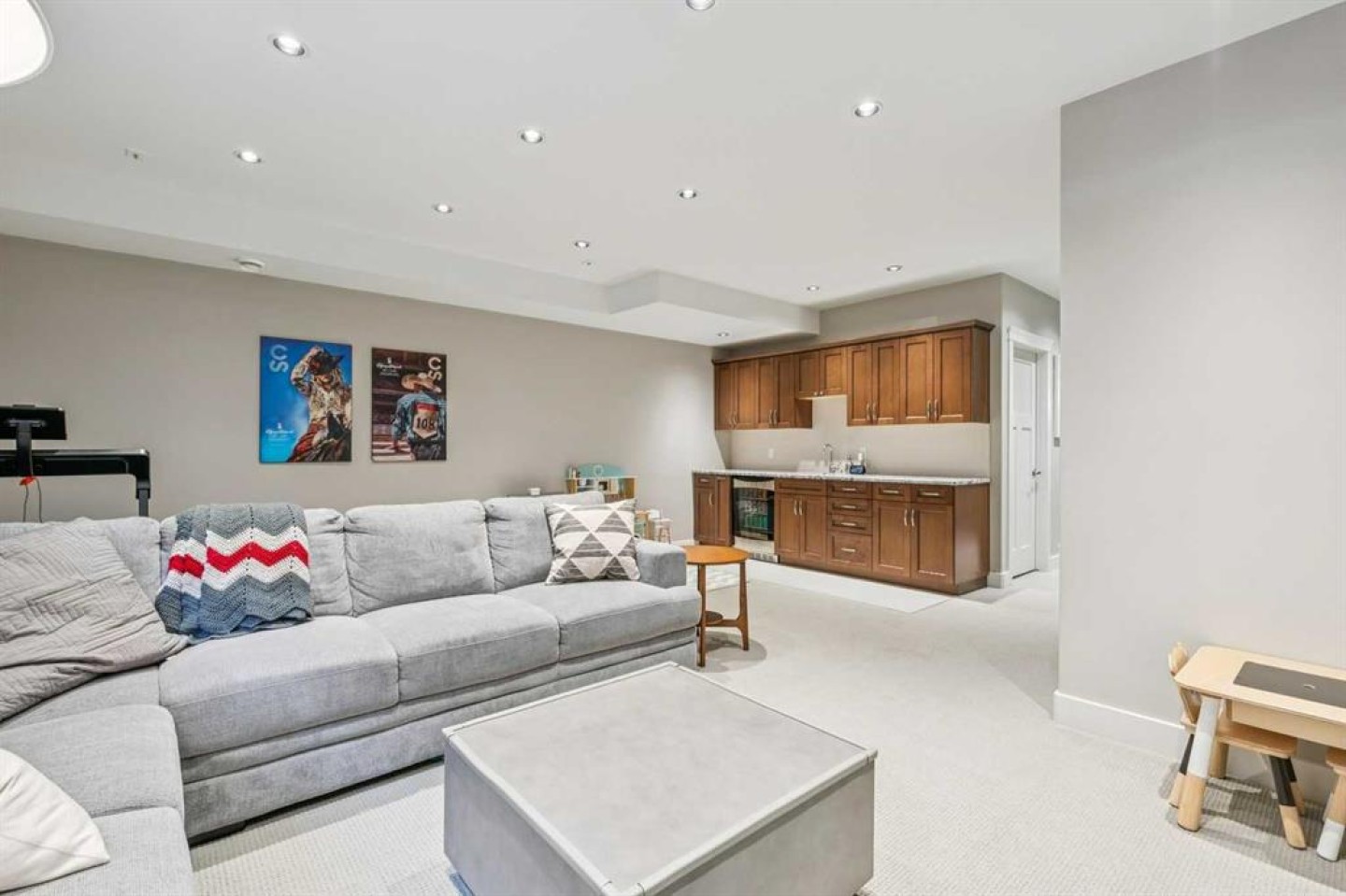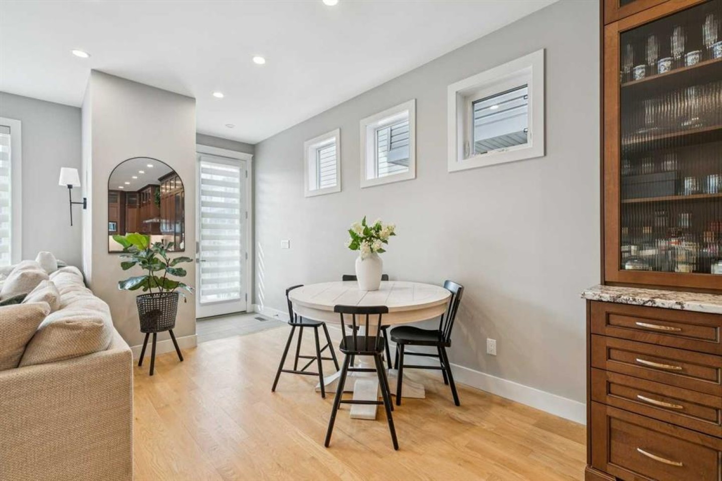 Welcome to this beautifully finished and fully developed two storey home offering a bright open layout, quality finishes, and comfortable living spaces designed for both everyday living and entertaining. 9-foot ceilings and gorgeous site finished oak hardwood floors carry you through the bright open plan main level, anchored by an expansive chef inspired kitchen with ample granite counter space including a breakfast counter for casual dining, along with stainless steel appliances that include a beverage fridge and gas range. The adjoining dining space keeps you connected to the main living area, while the living room features built ins, a cozy gas fireplace, and large windows overlooking the backyard. At the front of the home is a versatile flex room that works perfectly as a home office, playroom, or formal dining space. A convenient two-piece bathroom completes the main level. Upstairs you will find three spacious bedrooms including a large vaulted primary retreat with a walk-in closet and spa like five-piece ensuite featuring dual sinks with marble counters, a deep soaker tub, and a large custom tiled steam shower. The two additional bedrooms are both generously sized and there is also a convenient upper-level laundry room. The fully finished lower level offers a fourth bedroom, full bathroom, and a large family room with a wet bar and plenty of space for a home theatre, workout equipment, play area, and more. You will love the sunny west facing backyard with a patio that is perfect for relaxing or entertaining. Additional features include central air conditioning, recent upgrades such as new roof shingles and eavestroughs in 2025 and a new furnace and hot water tank in 2023, along with a drywalled double garage to complete the package. Conveniently located close to schools, parks, transit, and shopping. Call your favorite Realtor to arrange your private viewing!