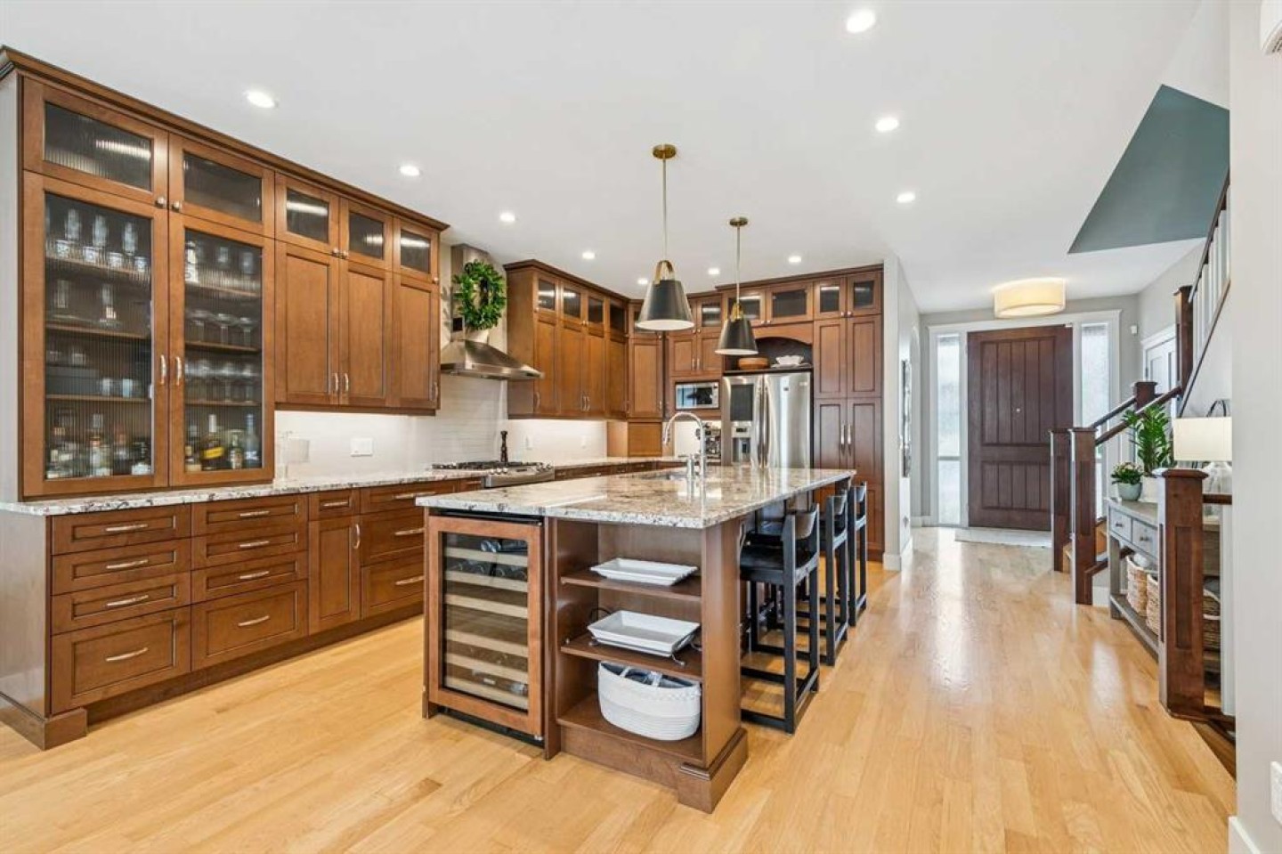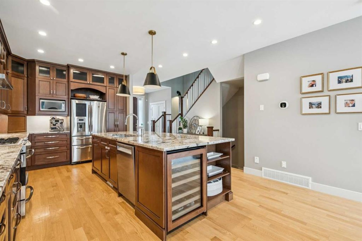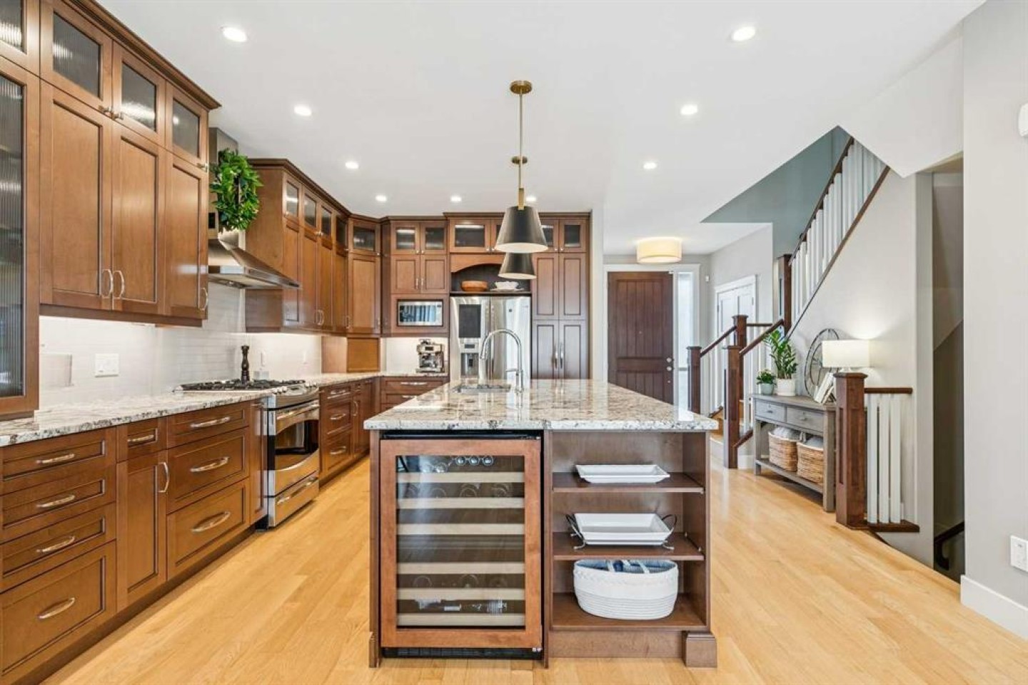 Bar Fridge, Central Air Conditioner, Dishwasher, Garage Control(s), Garburator, Gas Stove, Microwave, Range Hood, Refrigerator, Washer/Dryer, Window Coverings, Wine Refrigerator