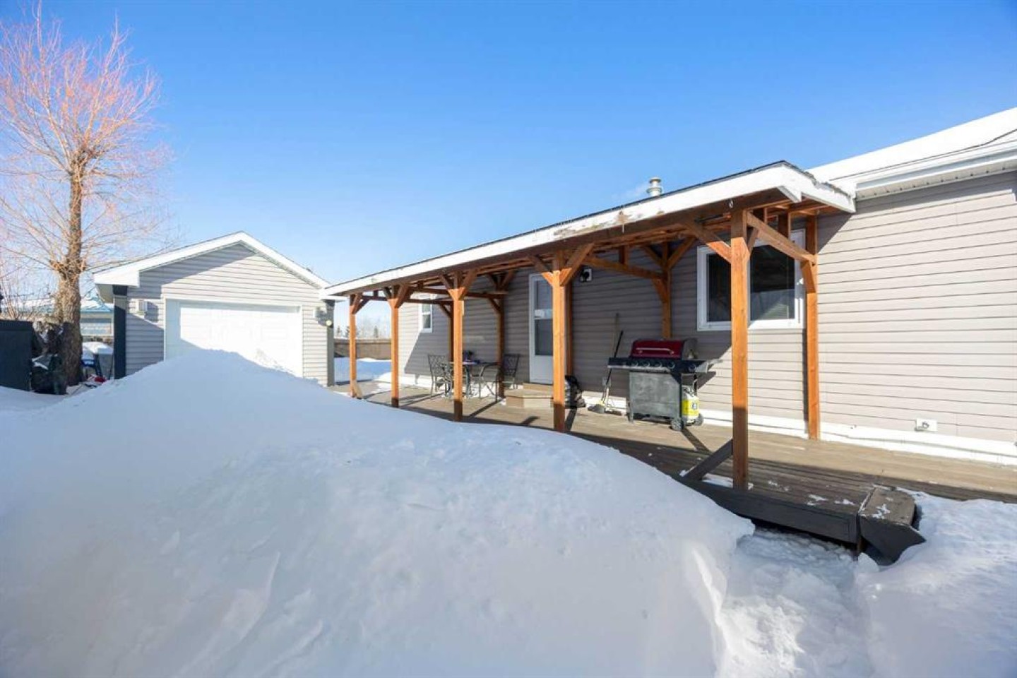 Welcome to 172 Gregoire Crescent — a spacious 3-bedroom, 2-bath home offering over 1,500 sq ft of comfortable living space. Situated on a 4,700+ sq ft lot backing onto green space with NO NEIGHBOURS BEHIND, back-alley access and additional space for parking or unloading off-road vehicles. Inside, the home features a bright and functional layout with a large living room with electric fireplace, a dedicated dining area, and a spacious kitchen complete with ample cabinetry, pantry, and generous counter space. The primary bedroom provides plenty of room to relax and includes a walk-in closet and a large 5-piece ensuite. Two additional bedrooms, a full 4-piece bathroom, and a separate laundry room complete the interior. Flooring throughout the home includes carpet and linoleum for easy maintenance. Step outside to enjoy your morning coffee on the large deck. The wide-opening fence allows convenient access to the fully fenced yard, making it ideal for those with recreational vehicles. The insulated shed is electrically heated and features a loft, providing excellent storage or workshop space. Paved driveway for 3 vehicles. Convenient access to nearby parks, playgrounds and shopping. Book your private showing today!