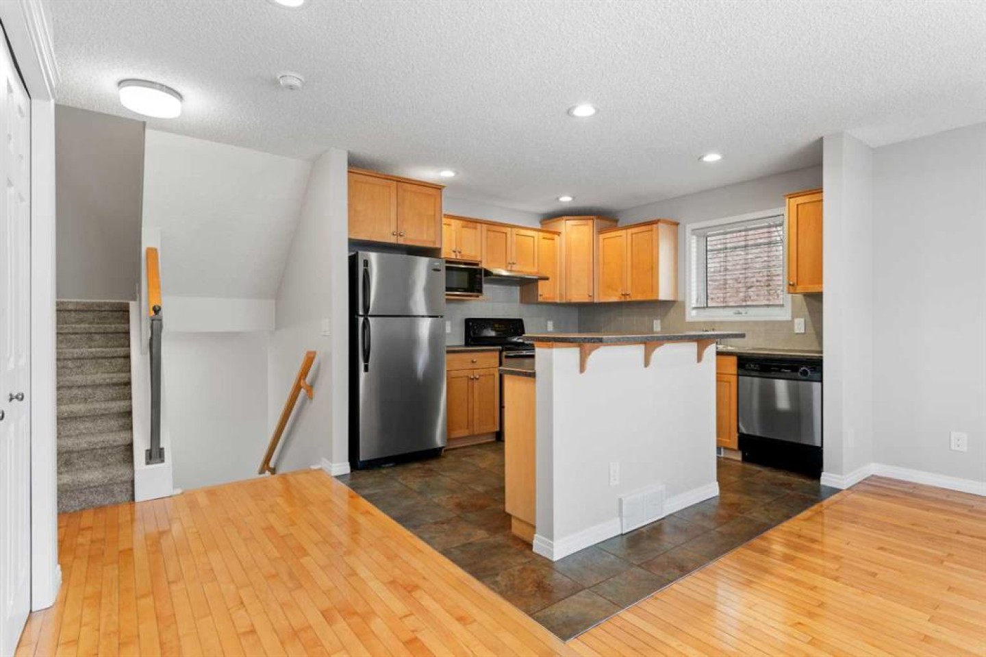 Welcome to this beautifully maintained townhouse offering over 1,700 sq ft of comfortable living space in a fantastic central location. Thoughtfully refreshed with new carpet, modern paint throughout, updated lighting, and new electrical switches and outlets, the home blends tasteful updates with pride of ownership in its well-kept original features. Perfectly positioned for convenience, you’re just 5 minutes to Mount Royal University, 10 minutes to downtown and the University of Calgary, and minutes from multiple bus and C-Train routes—making this an ideal home for downtown commuters, work-from-home professionals, or a young family. Step inside to a spacious tiled entryway with a conveniently located powder room. From here, stairs lead up to the main living area or down to the fully developed lower level. The sun-filled main floor is designed for both everyday living and entertaining, featuring an open-concept kitchen and living room anchored by a cozy corner gas fireplace. A charming breakfast nook leads to a second entrance providing easy access to the west-facing patio and BBQ area, as well as the detached single garage. Upstairs, you'll find three well-sized bedrooms and two full bathrooms, including a generous primary suite with ensuite, plus the convenience of upper-level laundry. The fully developed basement family room offers flexible space for movie nights, games, entertaining, or easily accommodating guests with the addition of a Murphy bed. A separate lower level provides ample room for utilities and additional storage. Outside, enjoy a private west-facing patio perfect for evening BBQs, along with the convenience of a detached single garage.