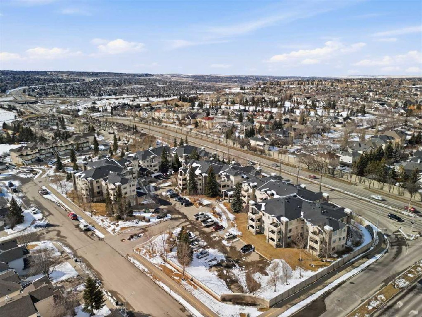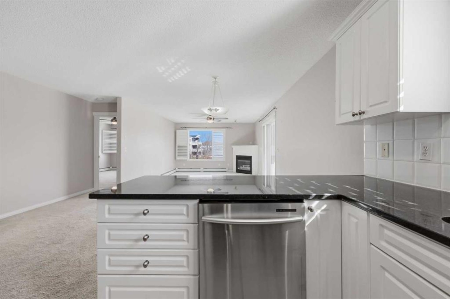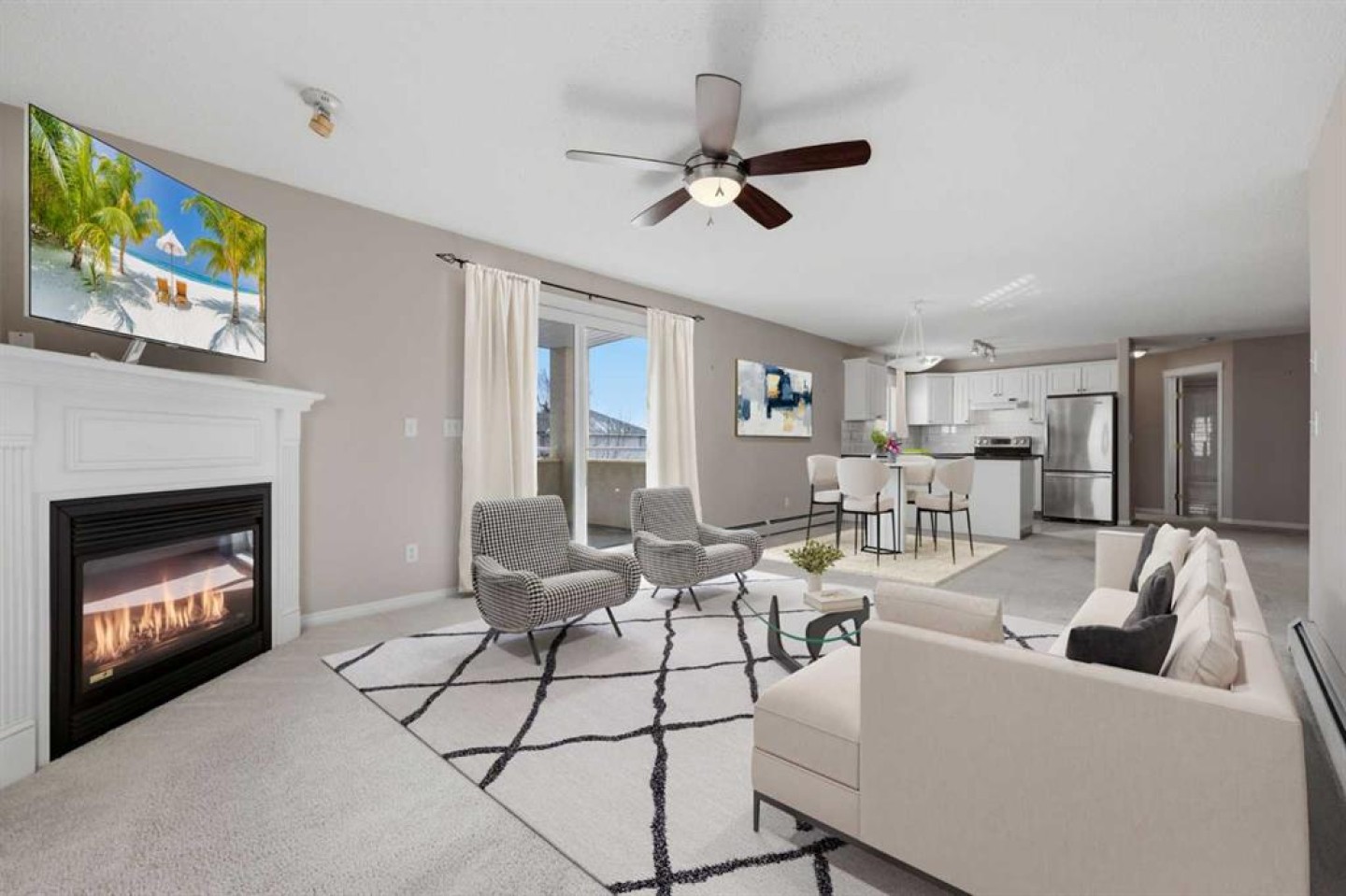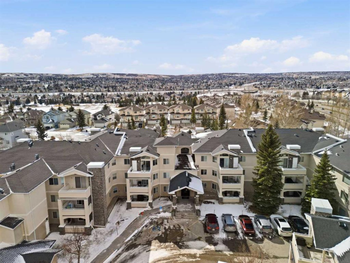 Welcome to one of the premier locations in the Fairways Pavilions of Country Hills, it is a south facing very sunny 2nd floor corner unit. Also one of the largest units in the complex at almost 1200 sq ft. with some recent upgrades: countertops, California shutters, upgraded ceiling fans and Toto toilets in both bathrooms. From the spacious front entry to the contemporary wide open floor plan, the bright white kitchen has plenty of prep space, window over the sink and stainless steel appliances. The kitchen opens to a large dining room, living room has a corner gas fireplace for those chilly evenings. Patio doors lead out to a sunny south facing balcony with tons of room to entertain, with a gas bar-b-que connection and storage room. The primary bedroom is large enough to accommodate a king size bed, walk in closet and a spacious 5 pc ensuite with a stand alone shower and soaker tub. The secondary bedroom easily fits a queen sized bed, there is a 4 pc bathroom and in-suite laundry room. Titled underground heated parking rounds out this amazing unit. Close to tons of shopping, restaurants, golf course nearby, parks and playgrounds in the neighborhood. A terrific property ready for immediate possession.