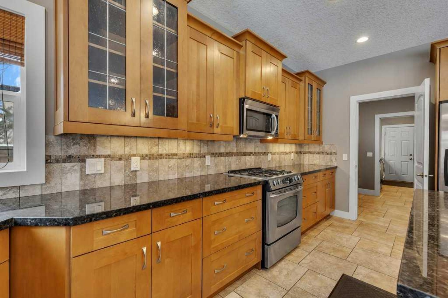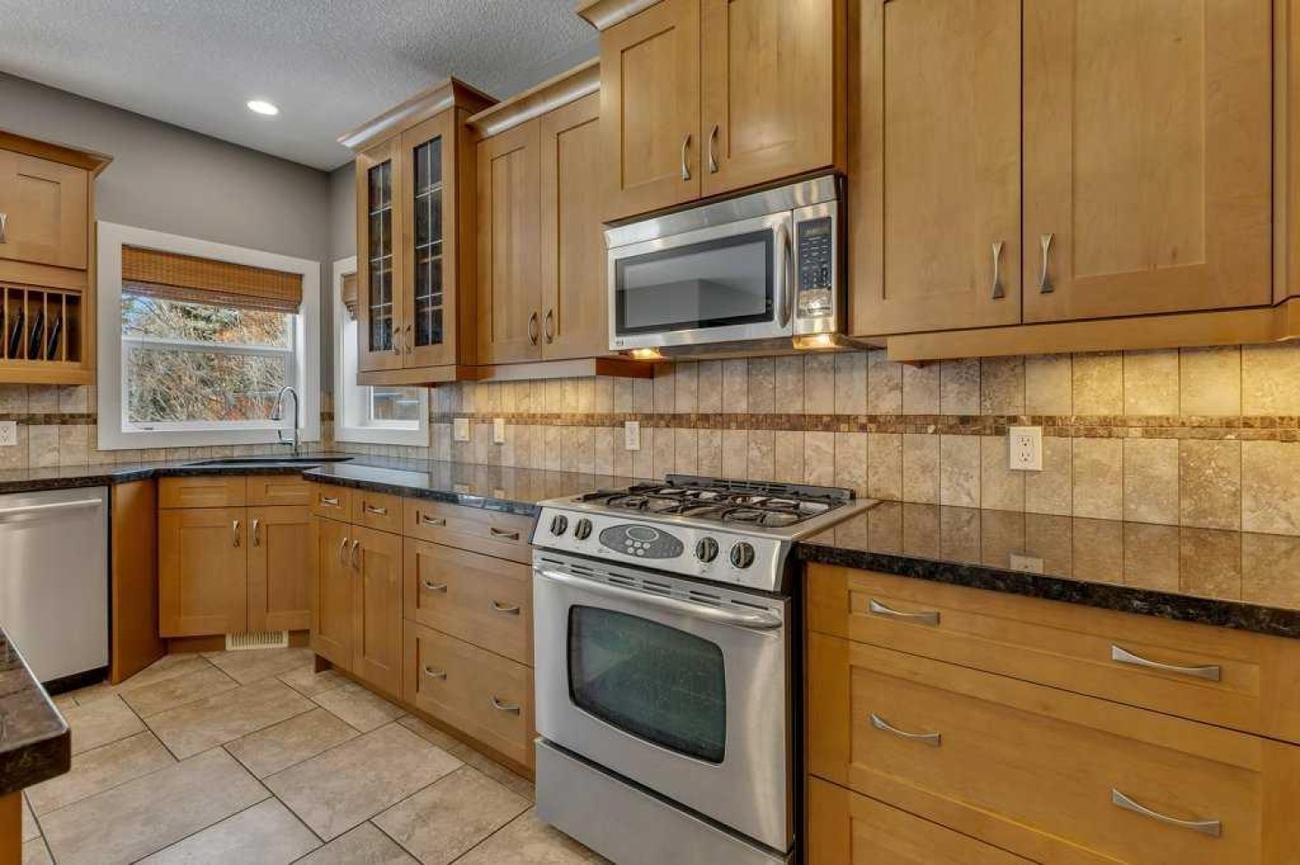 Dishwasher, Garage Control(s), Garburator, Gas Stove, Microwave, Microwave Hood Fan, Refrigerator, Washer/Dryer, Window Coverings