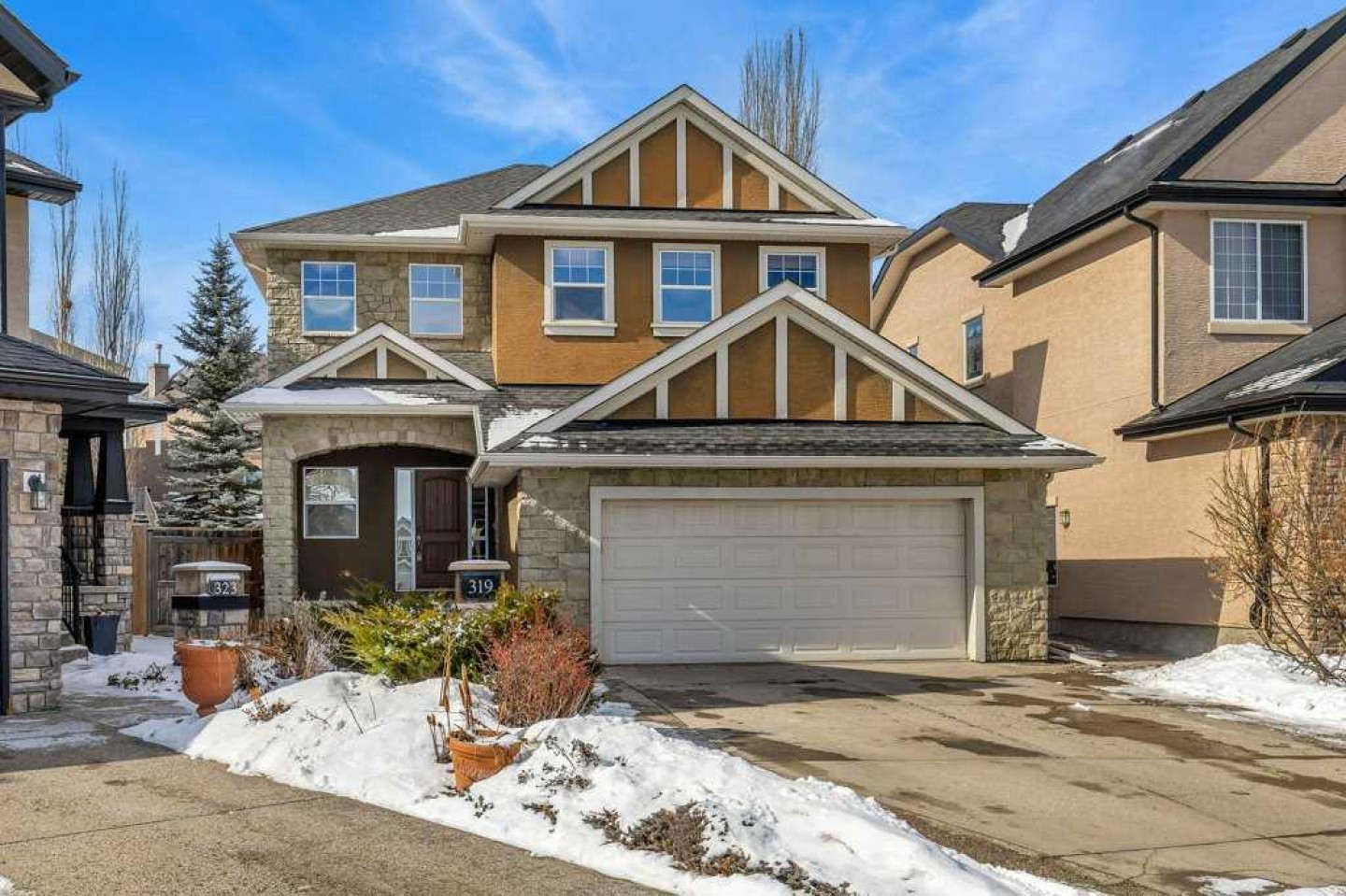 Located in a quiet cul-de-sac with beautiful curb appeal, welcome to 319 Valley Crest Court NW—a 2,490 sq ft two-storey home offering 3 bedrooms, a spacious bonus room, main-floor office/flex room, and a highly functional mudroom with walk-through pantry access. A large foyer open to the second-floor gives the entry a bright and airy feeling. You will notice a calm, cohesive color palette that carries throughout the home. Porcelain tile flooring, generous windows, and rich wood cabinetry create a warm, inviting atmosphere. The main living area features an open-concept design that seamlessly connects the kitchen, breakfast nook, and family room. This space is bright and airy thanks to high ceilings, abundant natural light, and a west-facing backyard. The kitchen feels both classic and comfortable, with natural-finish cabinetry, under cabinet lighting, granite countertops, recessed lighting, and a stylish pendant fixture over the island. A built-in desk area adds versatility for quick meals or a convenient workspace. Neutral tile flooring and porcelain backsplash tie the space together, while a window above the sink brings in soft daylight. The breakfast nook is surrounded by windows on three sides, offering lovely views of the landscaped backyard. A three-sided gas fireplace provides a cozy division between the nook and the living room. The walk-through pantry connects directly to the mudroom and garage, offering abundant shelving and storage. The mudroom/laundry room includes cabinetry and a deeper than normal sink for added convenience. The generously sized main floor office could also be used as a dining room depending on your needs and lifestyle. The 2-piece bath with marble counter-tops complete this level. Upstairs, the primary suite is accompanied by two additional generous bedrooms and a 5-piece main bath. The primary bedroom features a 5-piece ensuite with dual sinks, marble counter tops & a large walk-in closet with built-in shelving & drawers. A bright, comfortable bonus room provides the perfect spot for family time. The lower level is unfinished and ready for your personal vision. In floor heating and a bathroom are both roughed-in. Outside, the pie-shaped west-facing backyard is fully landscaped with a paving stone patio offers plenty of room to enjoy the outdoors. This home includes 2 furnaces with separate controls. Both the stove & washer are equipped to operate either as gas or electric, giving you the flexibility to use it in whichever mode you prefer The oversized double-attached garage provides generous space, easily accommodating a full-sized truck, & includes a built-in vacuum system outlet with attachments to help keep your vehicles spotless. Valley Ridge is a sought-after community surrounded by parks, pathways, & a semi-private golf course. The location offers the ideal blend of nature and convenience: 20 min to downtown Calgary, minutes from WinSport, Calgary Farmers’ Market, & quick routes to downtown, Canmore, & the Rockies.